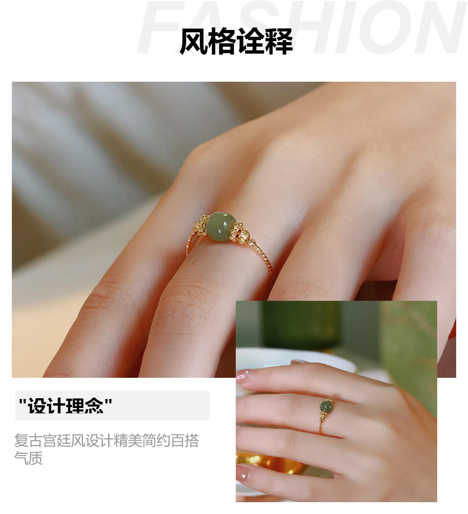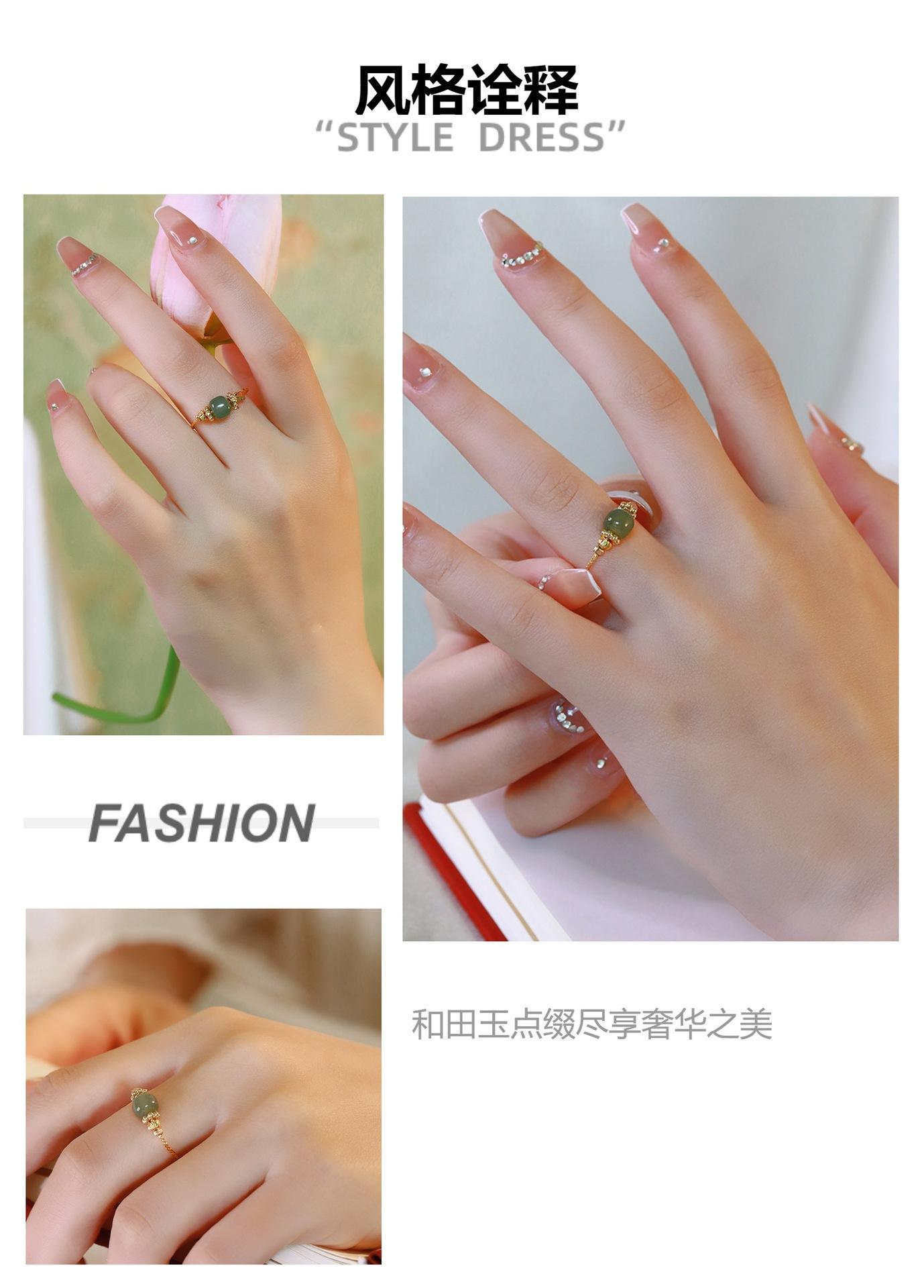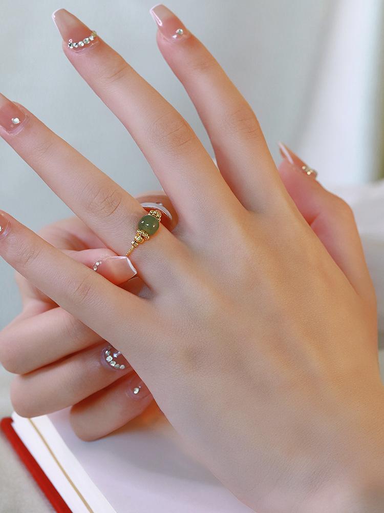 Anillo de Jade Hetian para Mujer Boca Viva Ajustable Anillo de Dedo Línea de Flor de Coche Antiguo Dulce Moda Femenina Pulsera Combinable