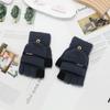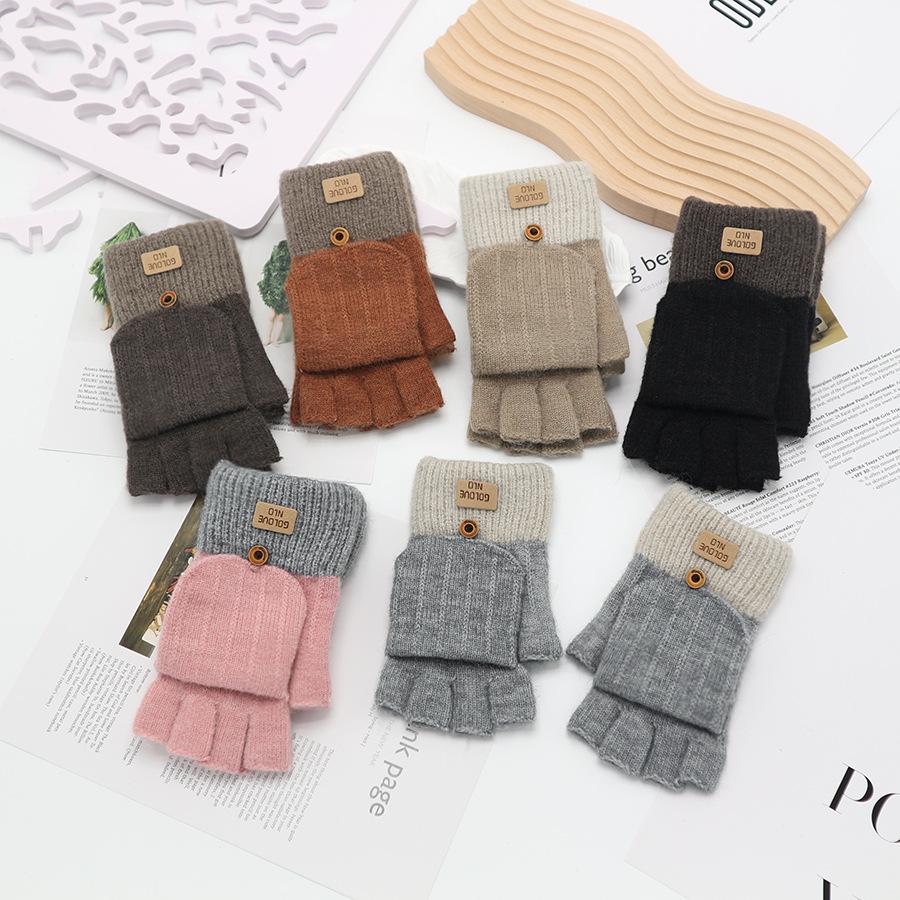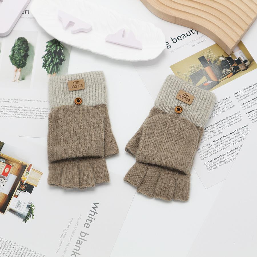 Guantes de invierno para mujer, estilo coreano, tejidos, cálidos, resistentes al frío, de lana, de medio dedo, para montar a caballo, para estudiantes.
