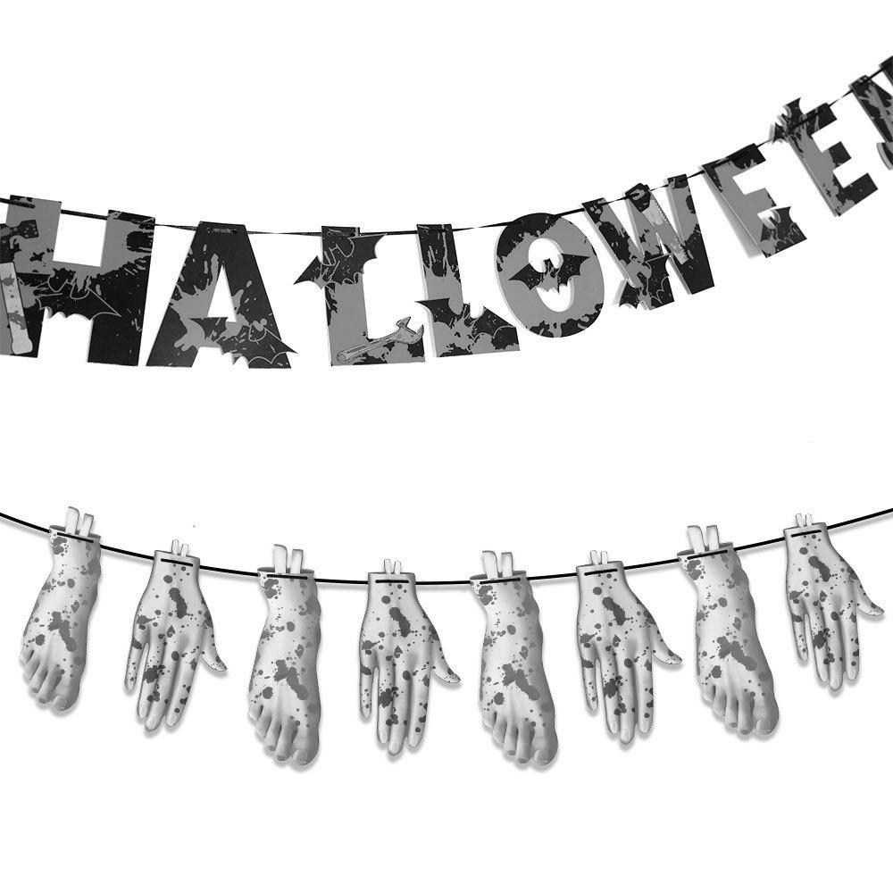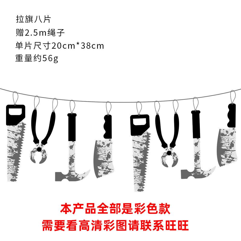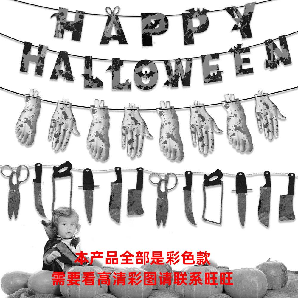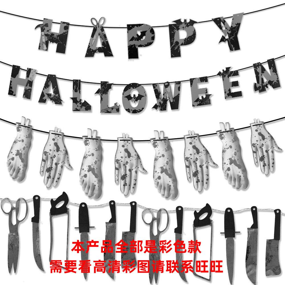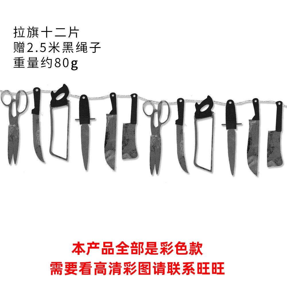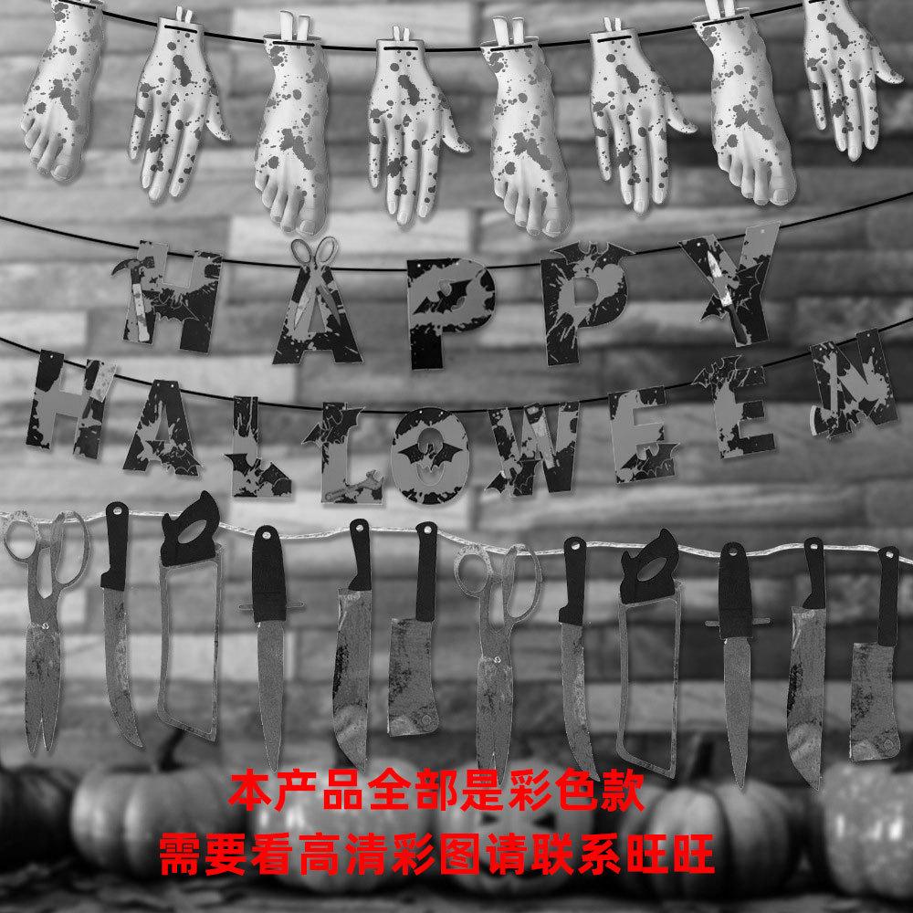Bandera decorativa de Halloween con forma de cuchillo de sangre, letras de papel, flores, fiesta de terror, pancarta, decoraciones de Halloween, adornos colgantes