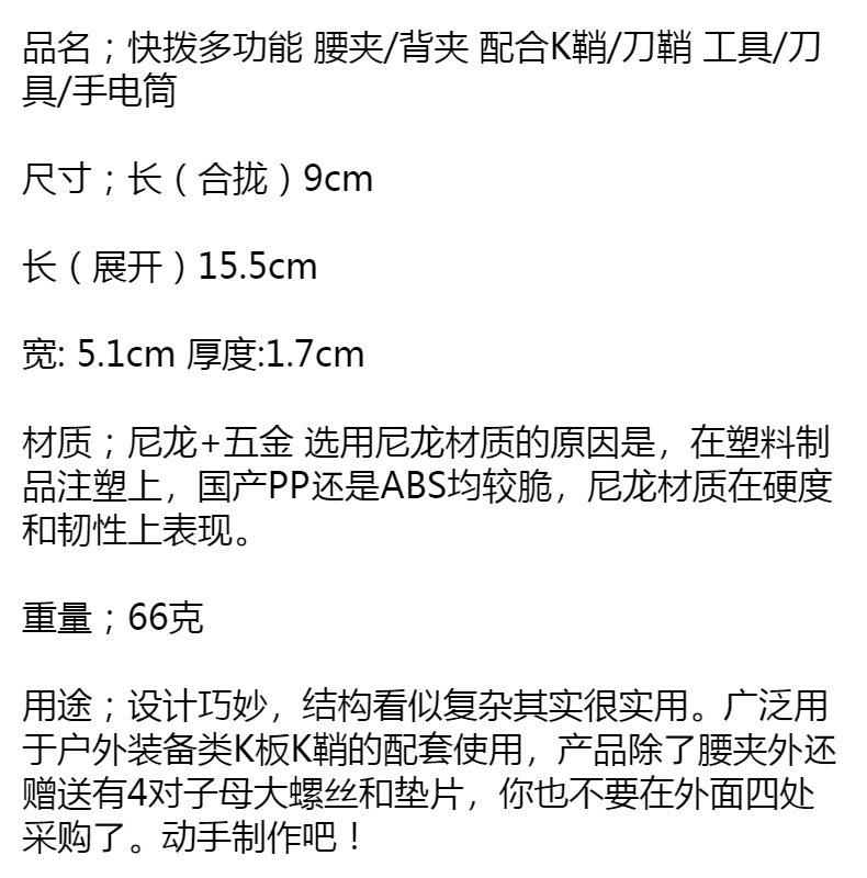 Nuevo dial rápido multifunción de marcación rápida funda con clip para cinturón, clip trasero con funda K, vaina, cortador, clip para funda de linterna, accesorios