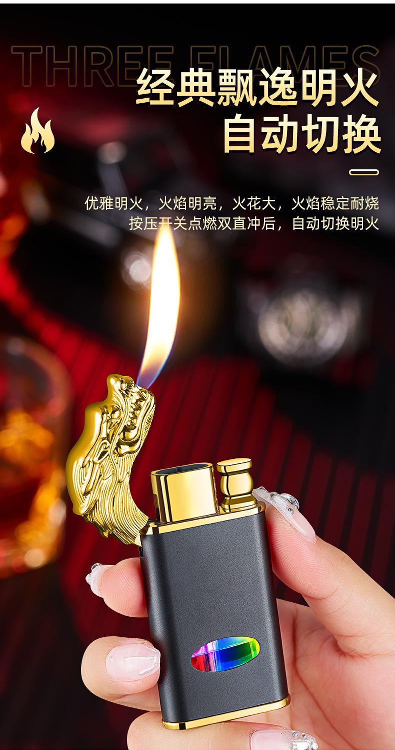 Grifo de alivio creativo, encendedor con doble interruptor de fuego, espejo de popa visual, encendedor inflable de conversión de fuego abierto recto doble