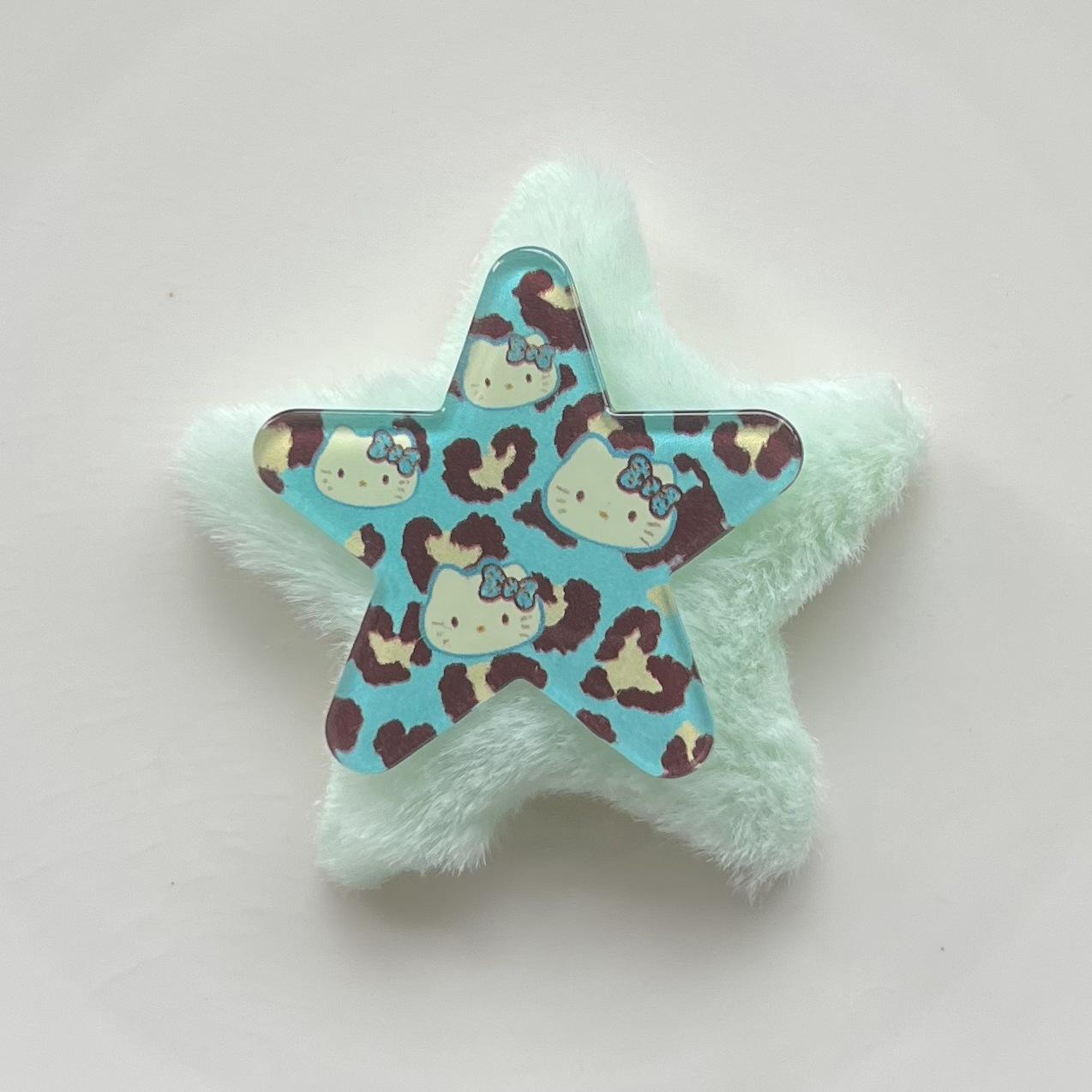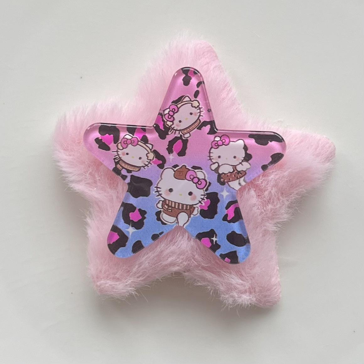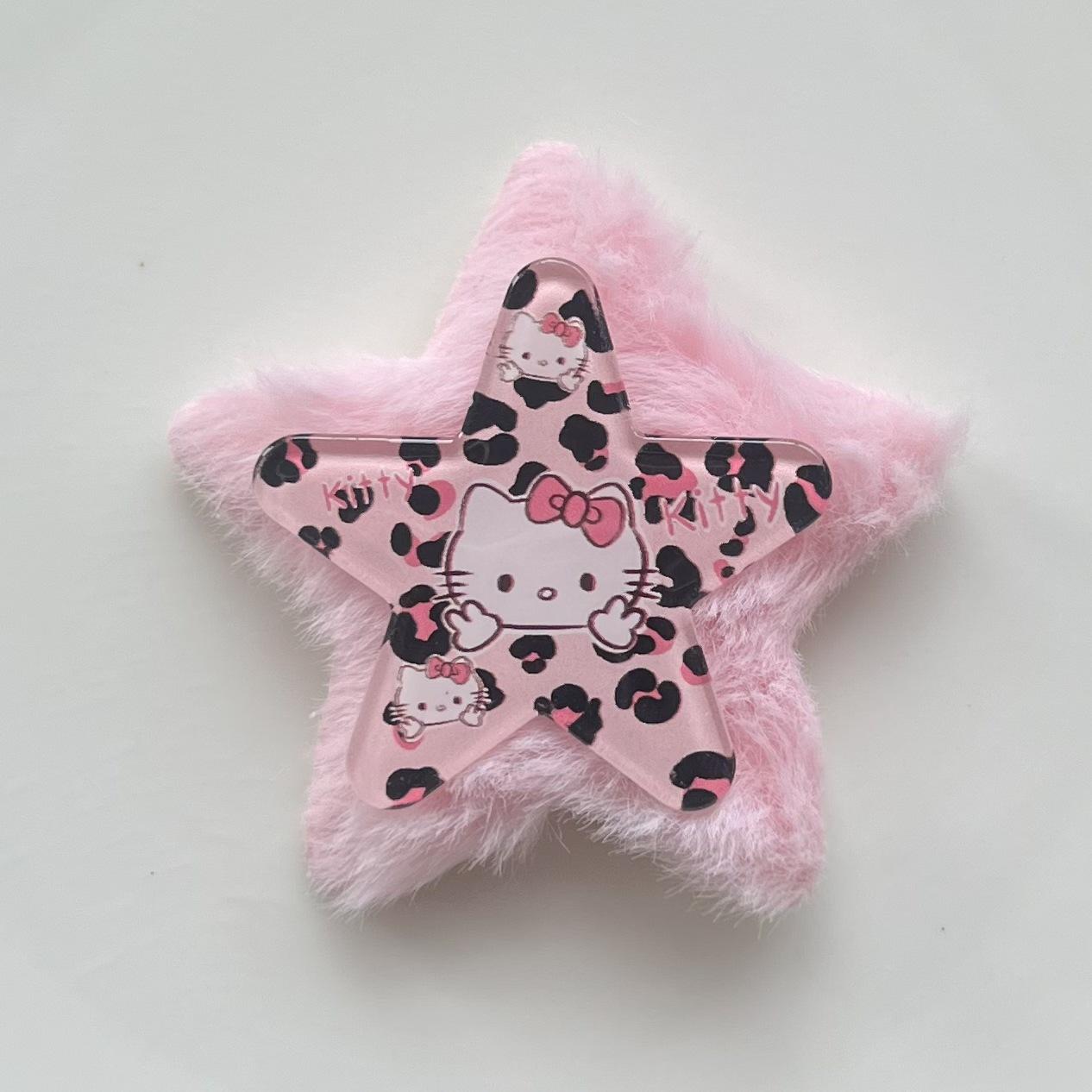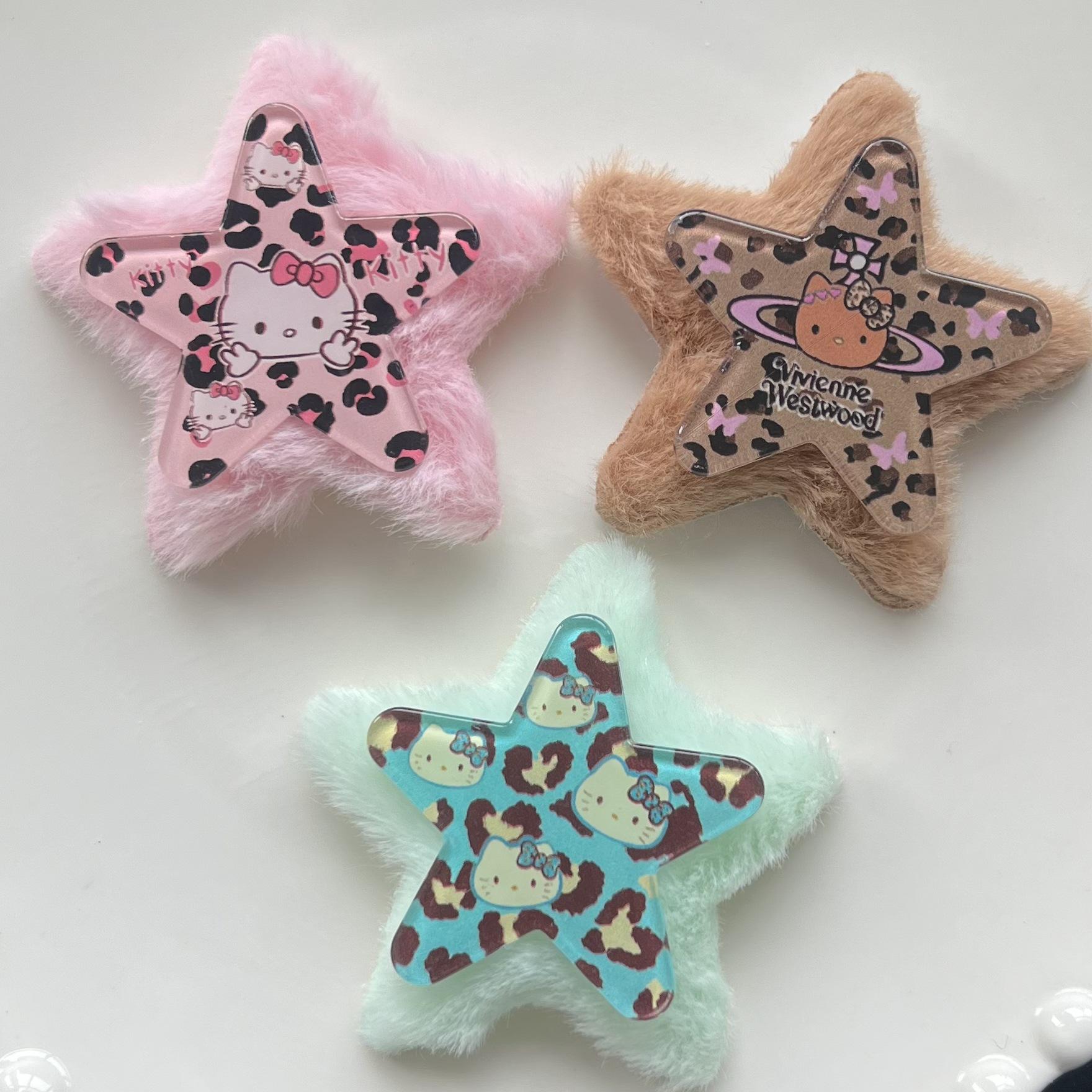 Nueva estrella de cinco puntas con estampado de leopardo, gato KT de peluche, estrella de doble capa, accesorios para el pelo, horquilla para el pelo, decoración de carcasa de teléfono móvil hecha a mano