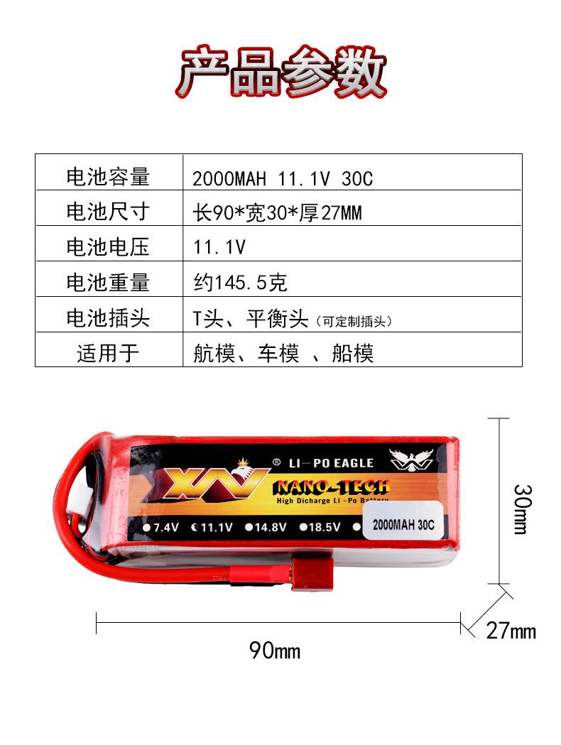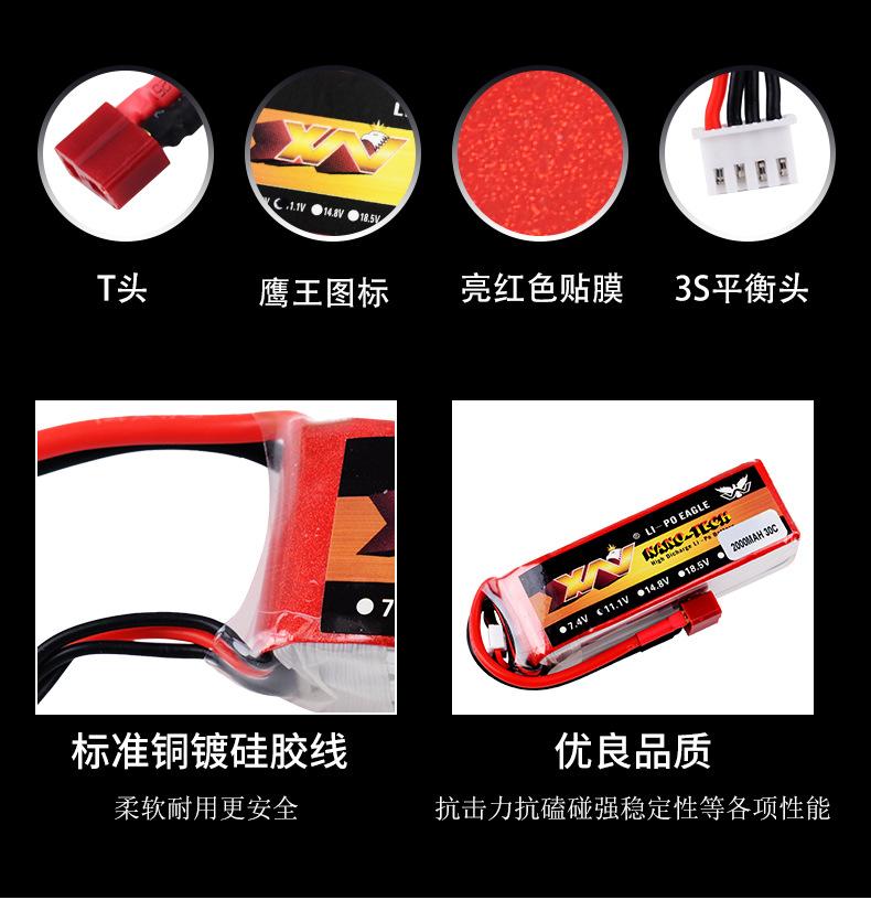 Eagle King 2000mAh 30C 3S 11.1V batería de litio de alta tasa para modelo de avión, dron, coche de control remoto y barco