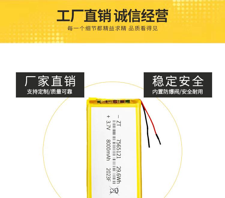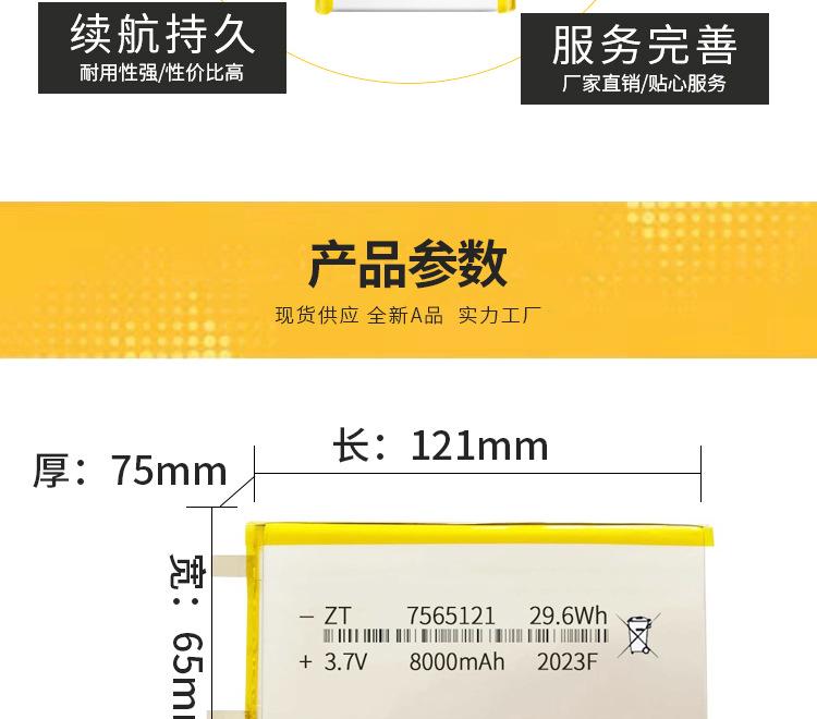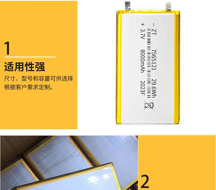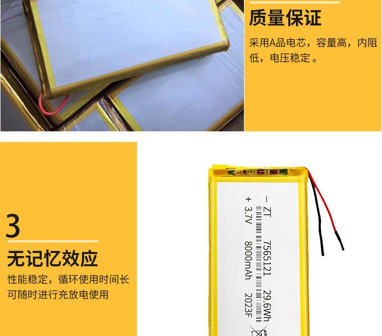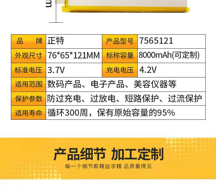 7565121-8000mah battery cell, 7565121-8000mah plus plate plus line