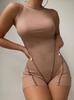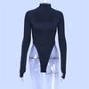Mono Sexy de Punto Primavera Corte Europeo y Americano Diseño Cut Out Tirantes Cruzados Manga Larga Nicho Fondo Color Puro Ajustado