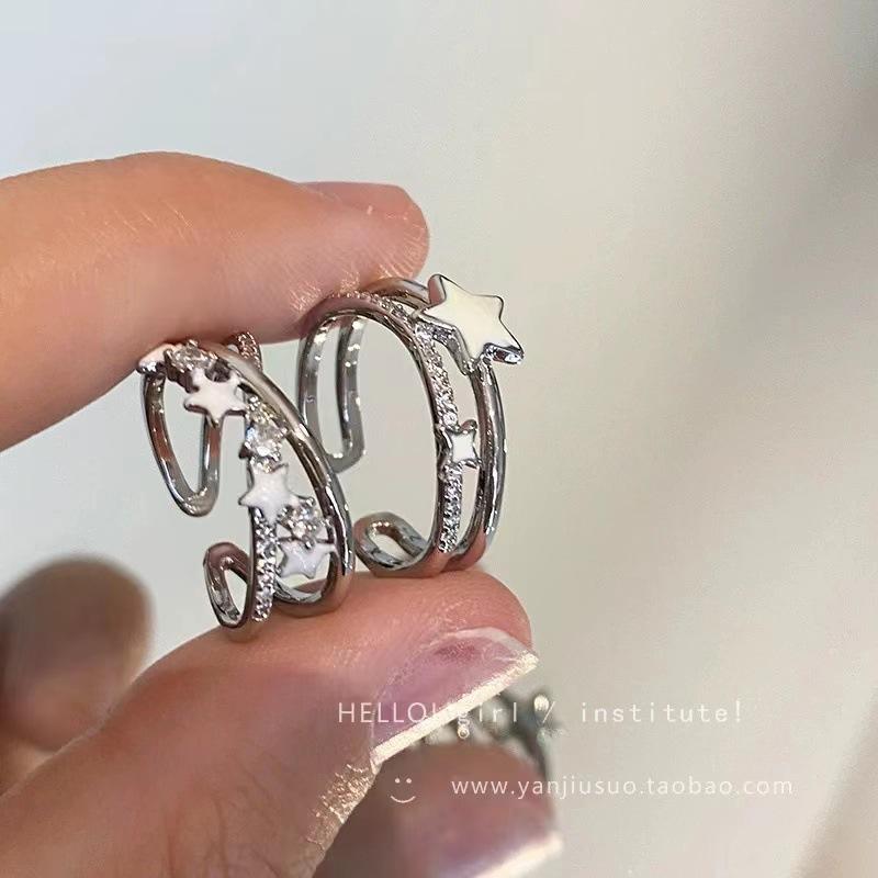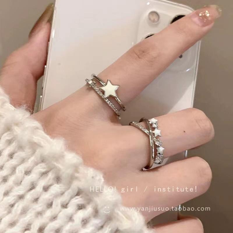 Anillo de Estrella de Doble Capa de Circonita de Lujo Ligero para Mujer Diseño Nicho Anillo de Esmalte Goteado Sentido de Alta Gama Moda Anillo de Pareja Personalizado