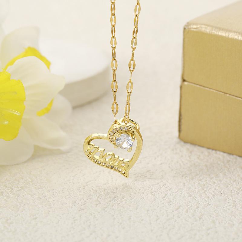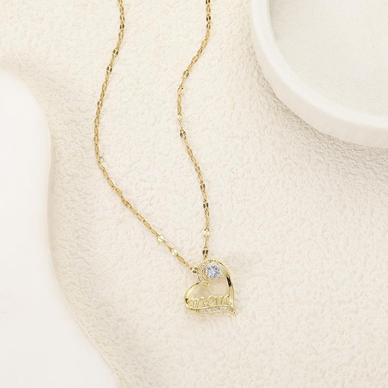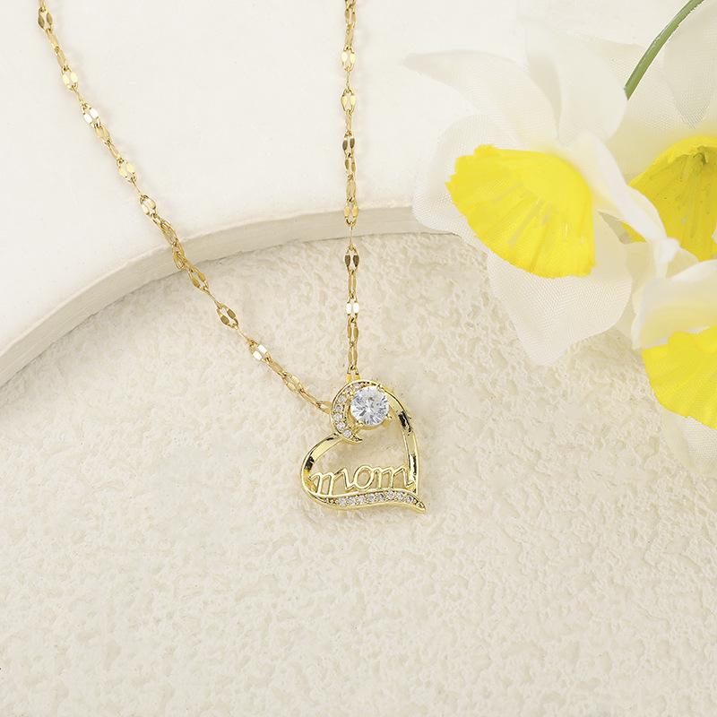 Collar de acero de titanio con temperamento simple transfronterizo europeo y americano, cadena de clavícula de diamantes de moda para mujer, collar para el Día de la Madre, colgante de circón