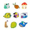 Duck, Cat, Fox, Bird, Little dinosaur, Tropical fish, Whale