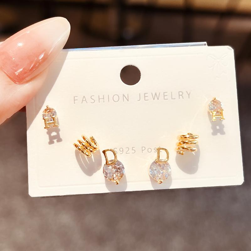 Compra Exquisitos Aretes de Letra D de Zirconia, Combinación Simple y Elegante, Diseño Nicho para Mujeres, Aretes de Alta Gama, Cristal de Verano para Mujeres al por mayor en Joom.pro