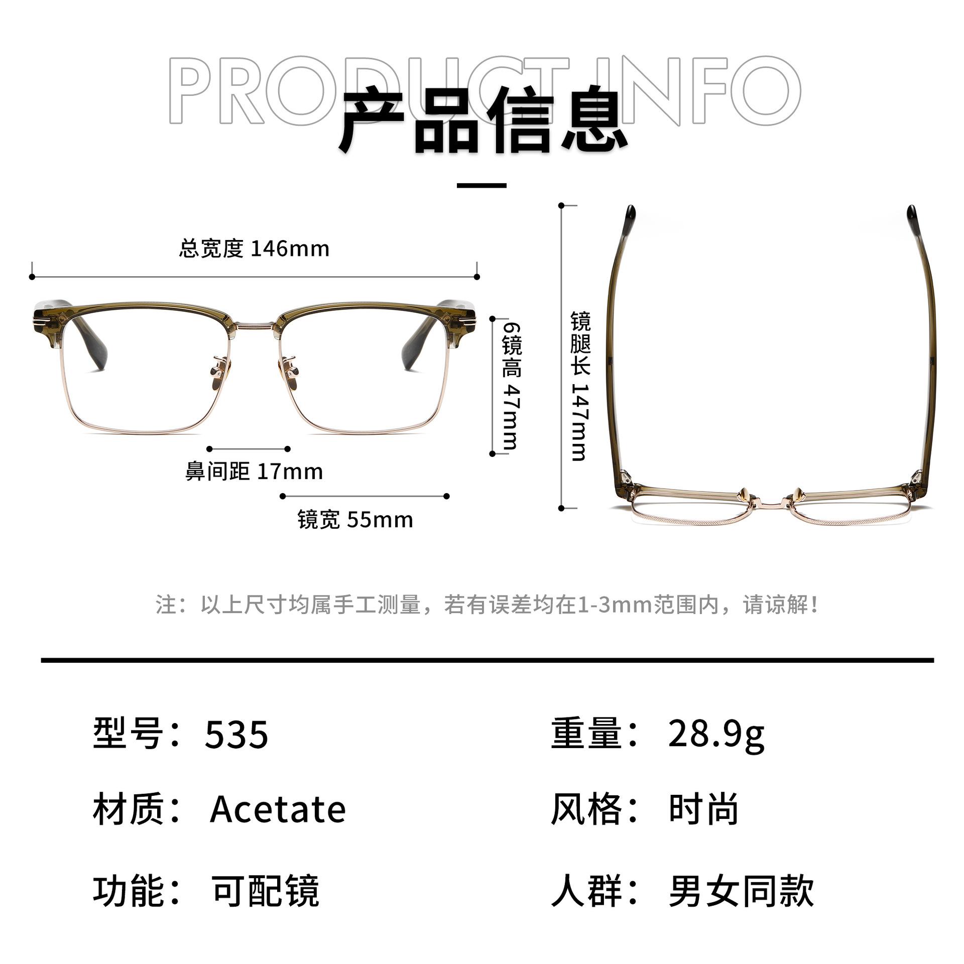 Tortoiseshell frame, Black, Olive green, Blue gray frame, Transparent gray frame
