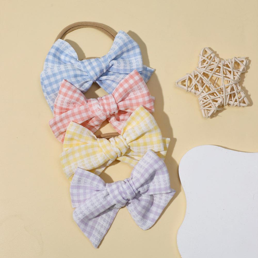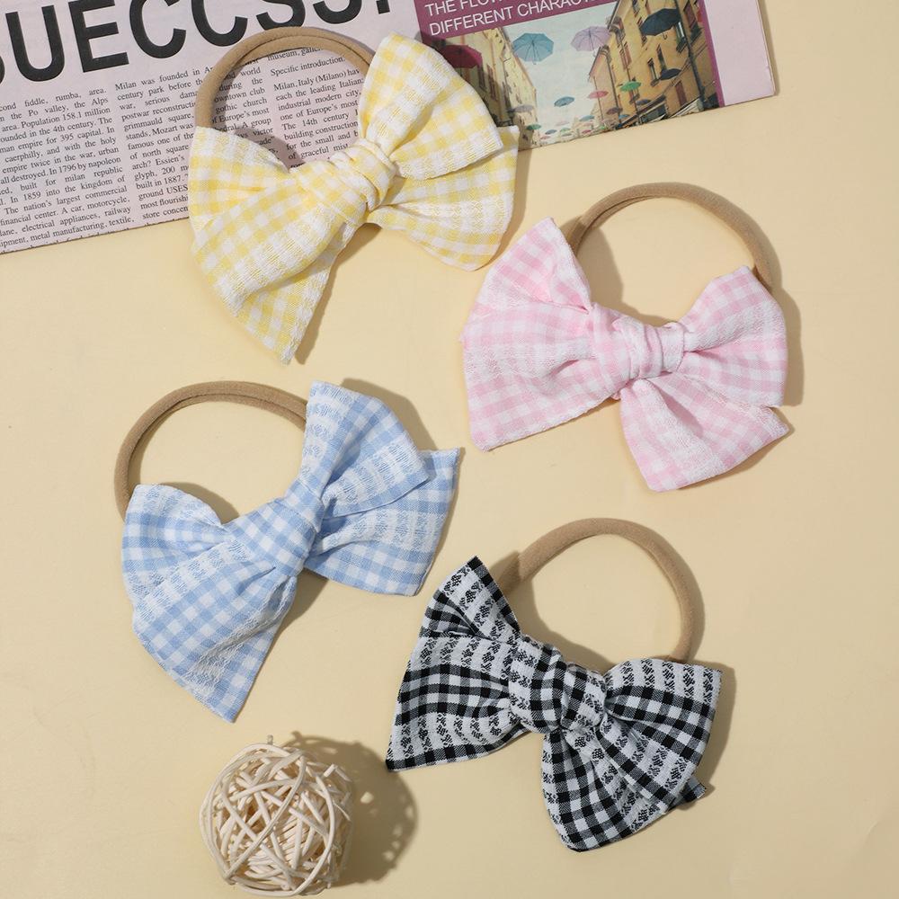 Comercio exterior transfronterizo nuevos accesorios para el cabello para niños lazo de cuadros banda para el cabello fino de bebé elástico de nailon diadema para bebé al por mayor