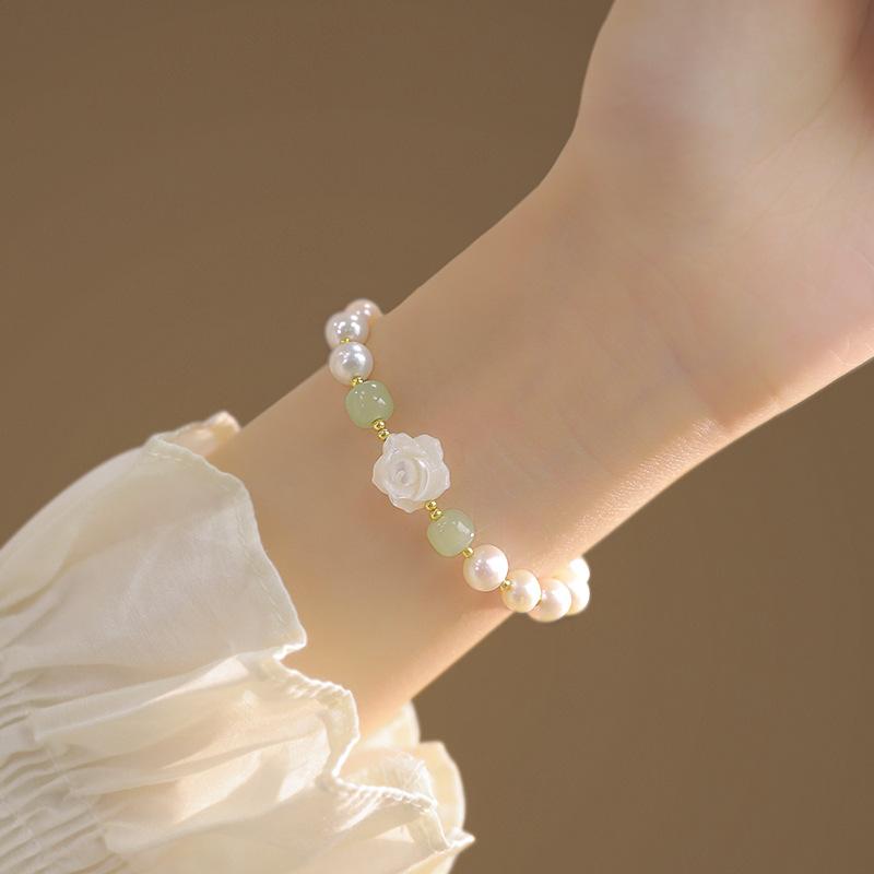 Pulsera de rosa femenina diseño nicho ins nueva verano versátil pulsera de perlas de imitación de flores femenina entrega en vivo