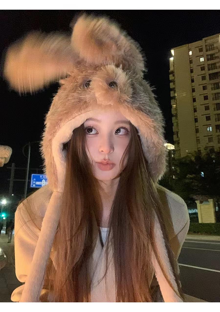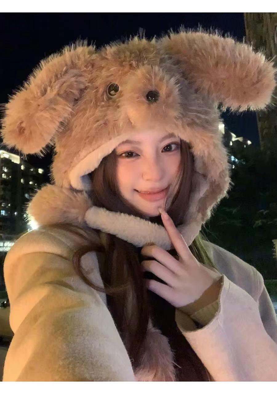 Otoño e Invierno 2024 Orejas Se Mueven Cachorro de Peluche Lindo Sombrero Invierno para Mujer Grueso Cálido Protección para las Orejas Sombrero Lei Feng Sombrero de Pescador
