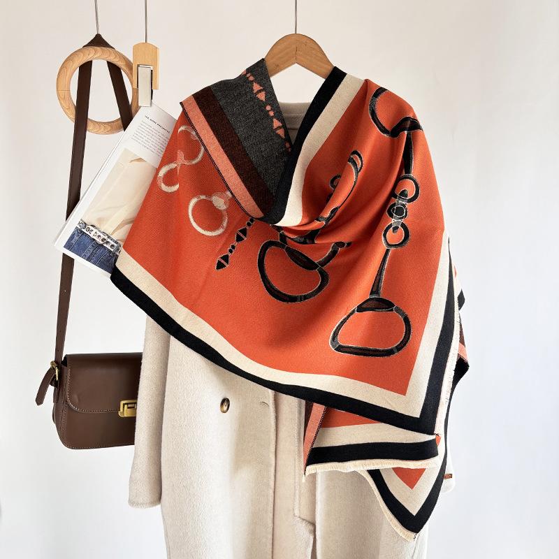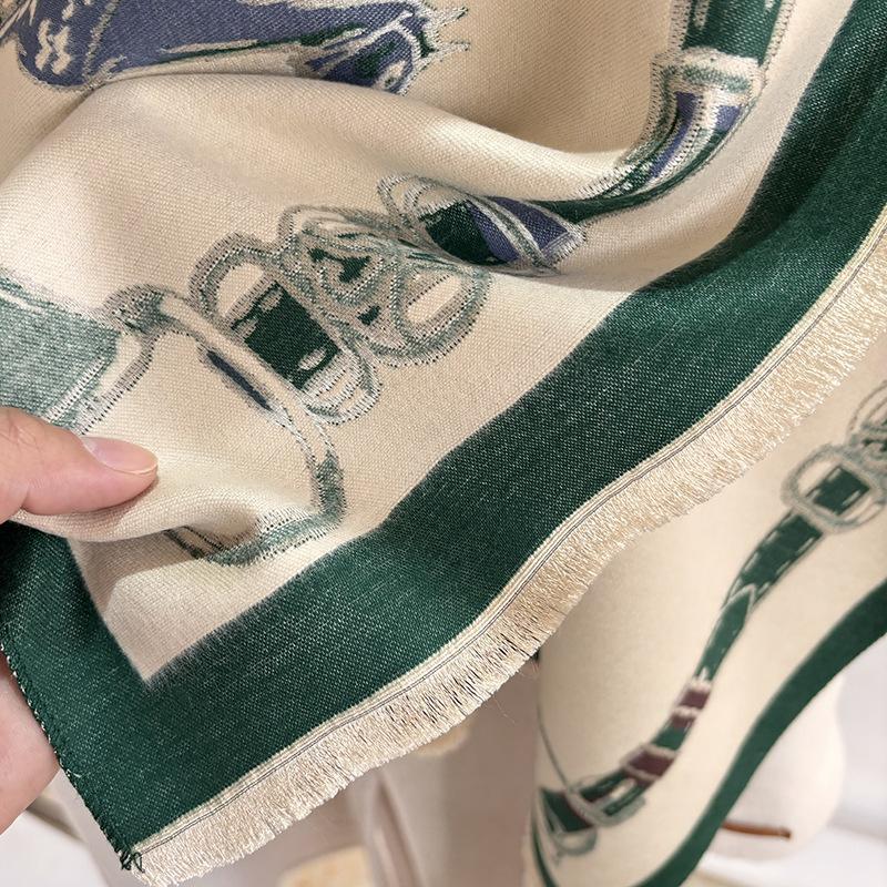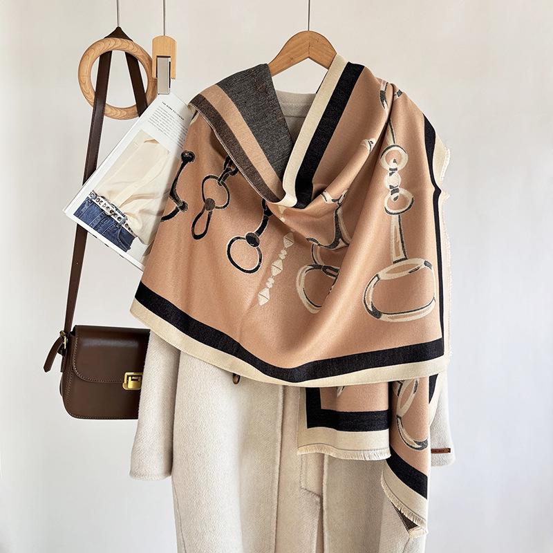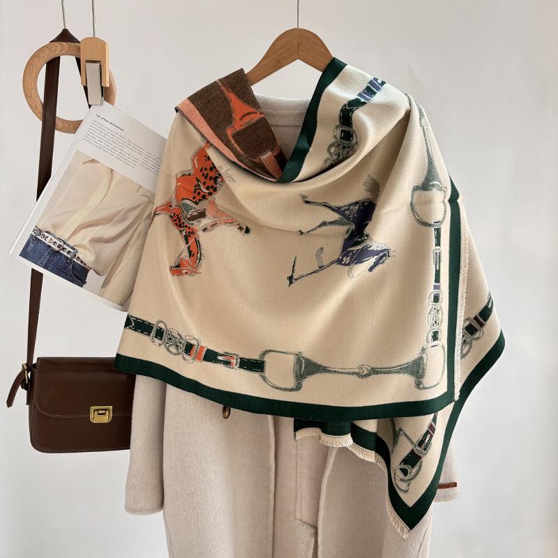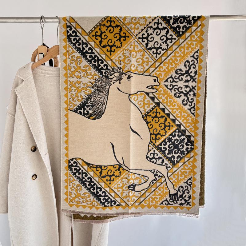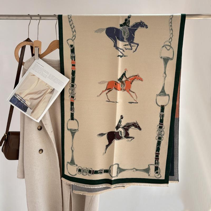 Bufanda de Cachemira Imitación con Figura de Caballo para Mujer Otoño e Invierno Moda Combinable Gruesa Cálida Cuello Largo Casual Elegante Chal