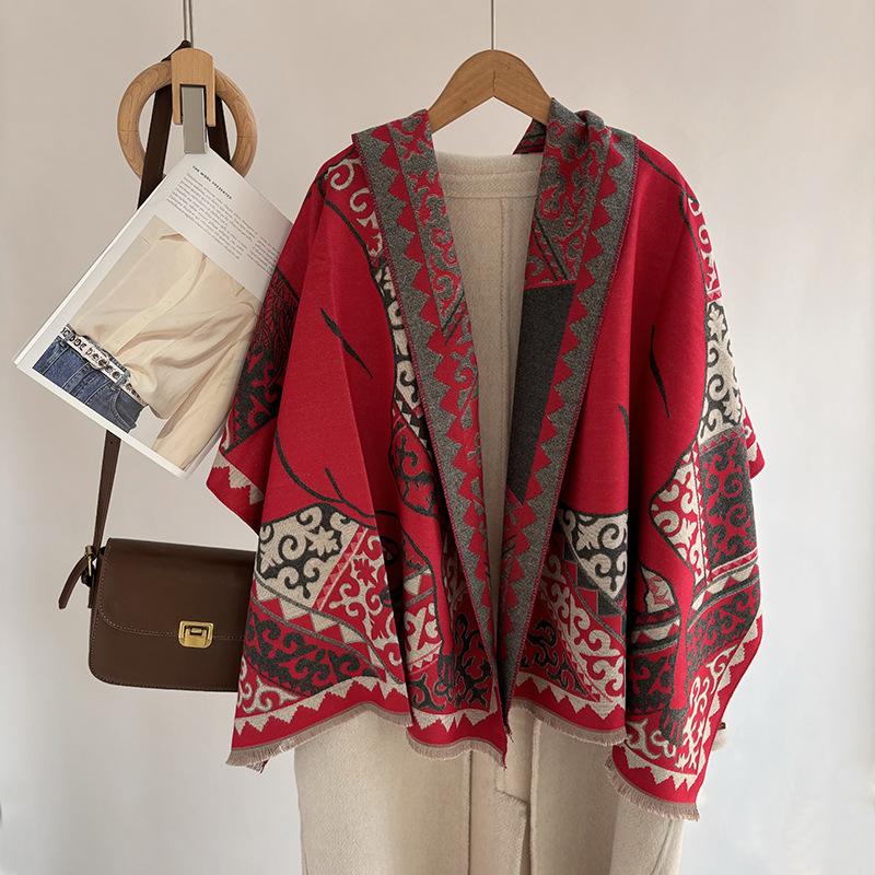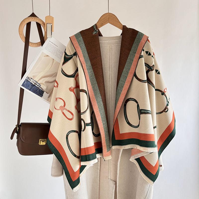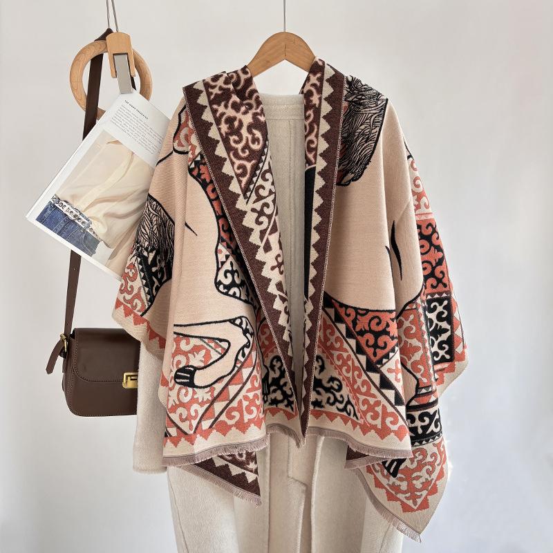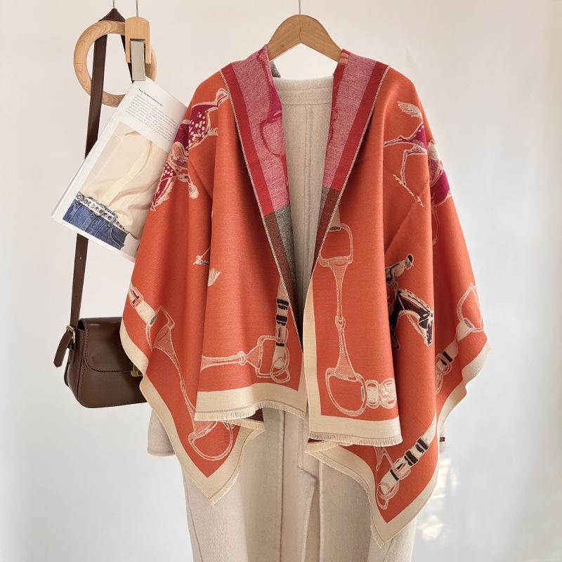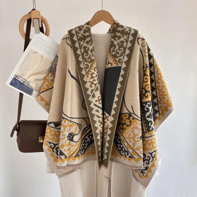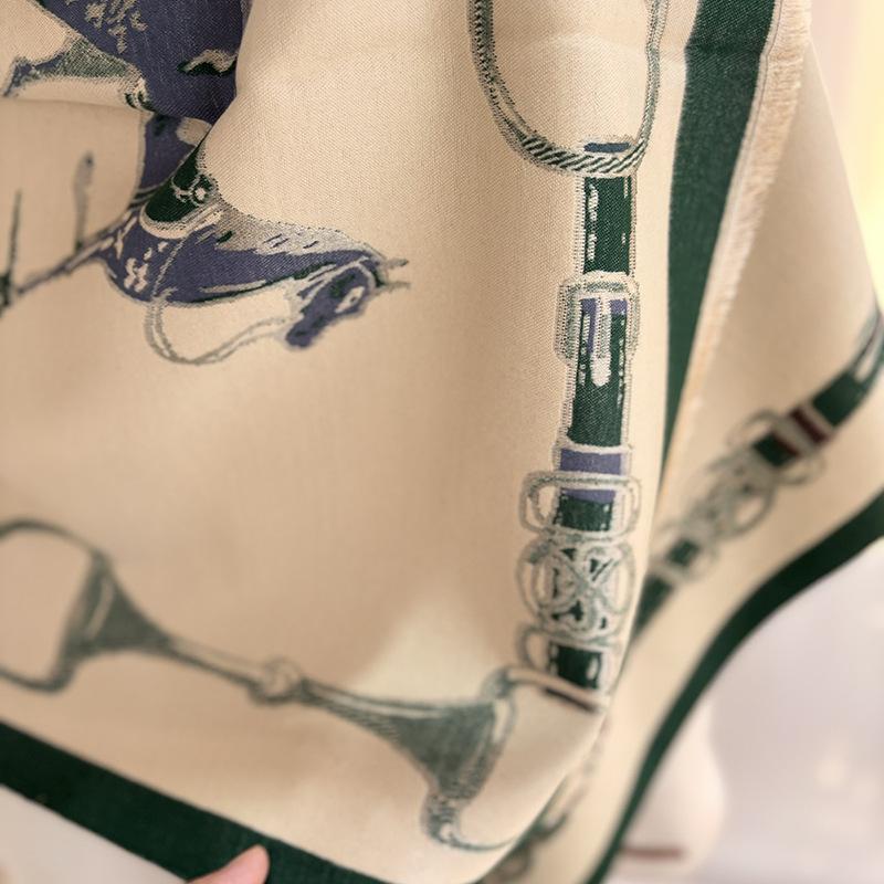 Bufanda de Cachemira Imitación con Figura de Caballo para Mujer Otoño e Invierno Moda Combinable Gruesa Cálida Cuello Largo Casual Elegante Chal
