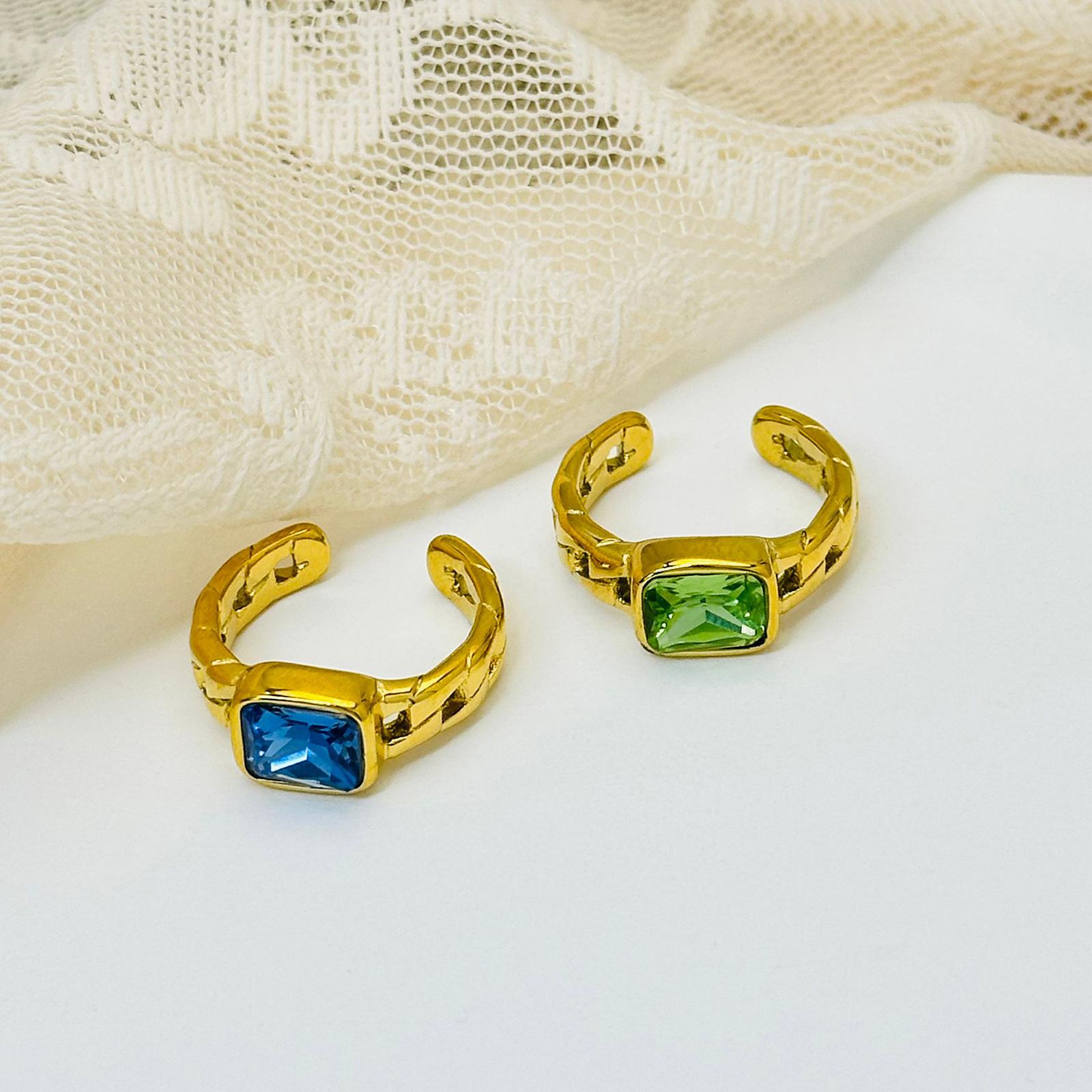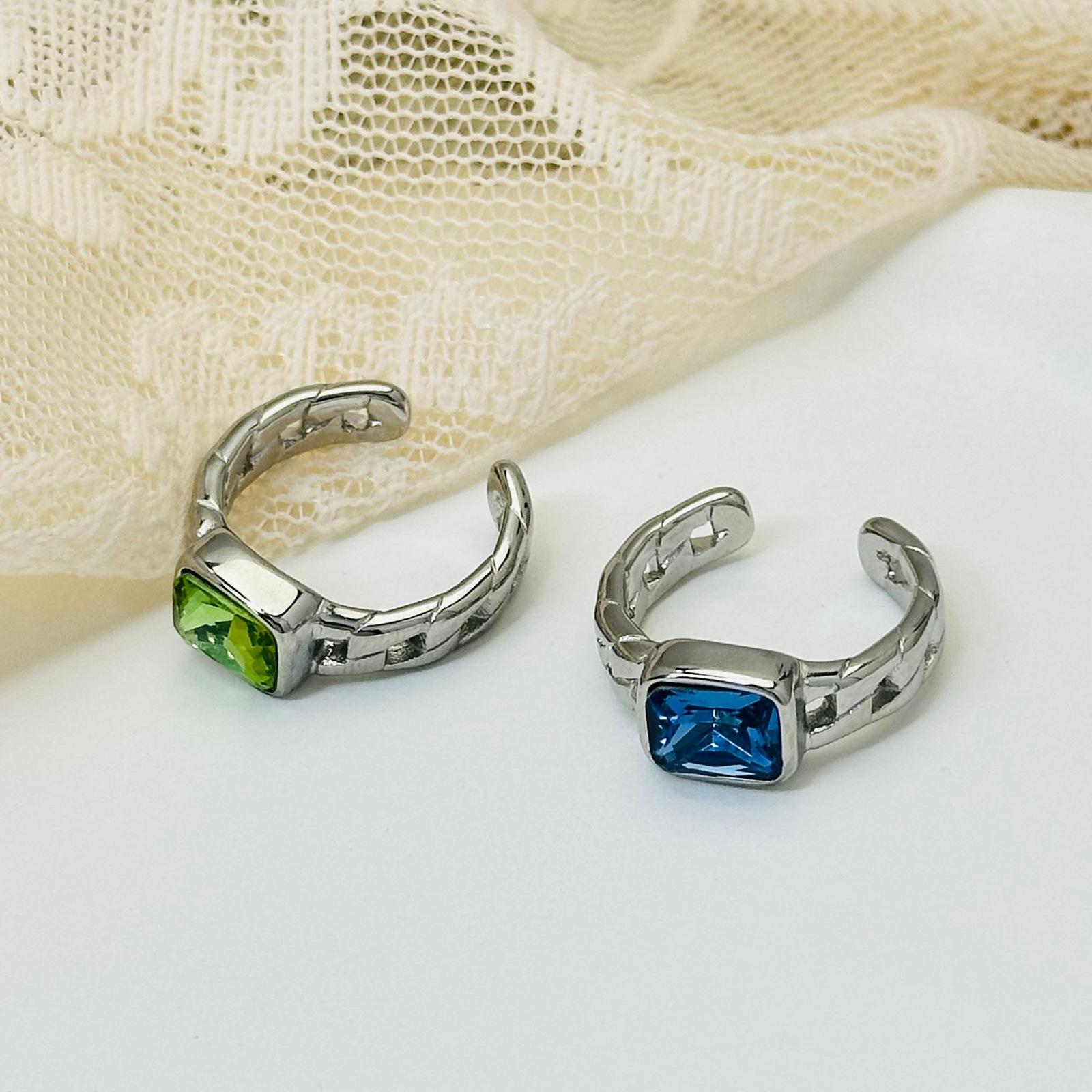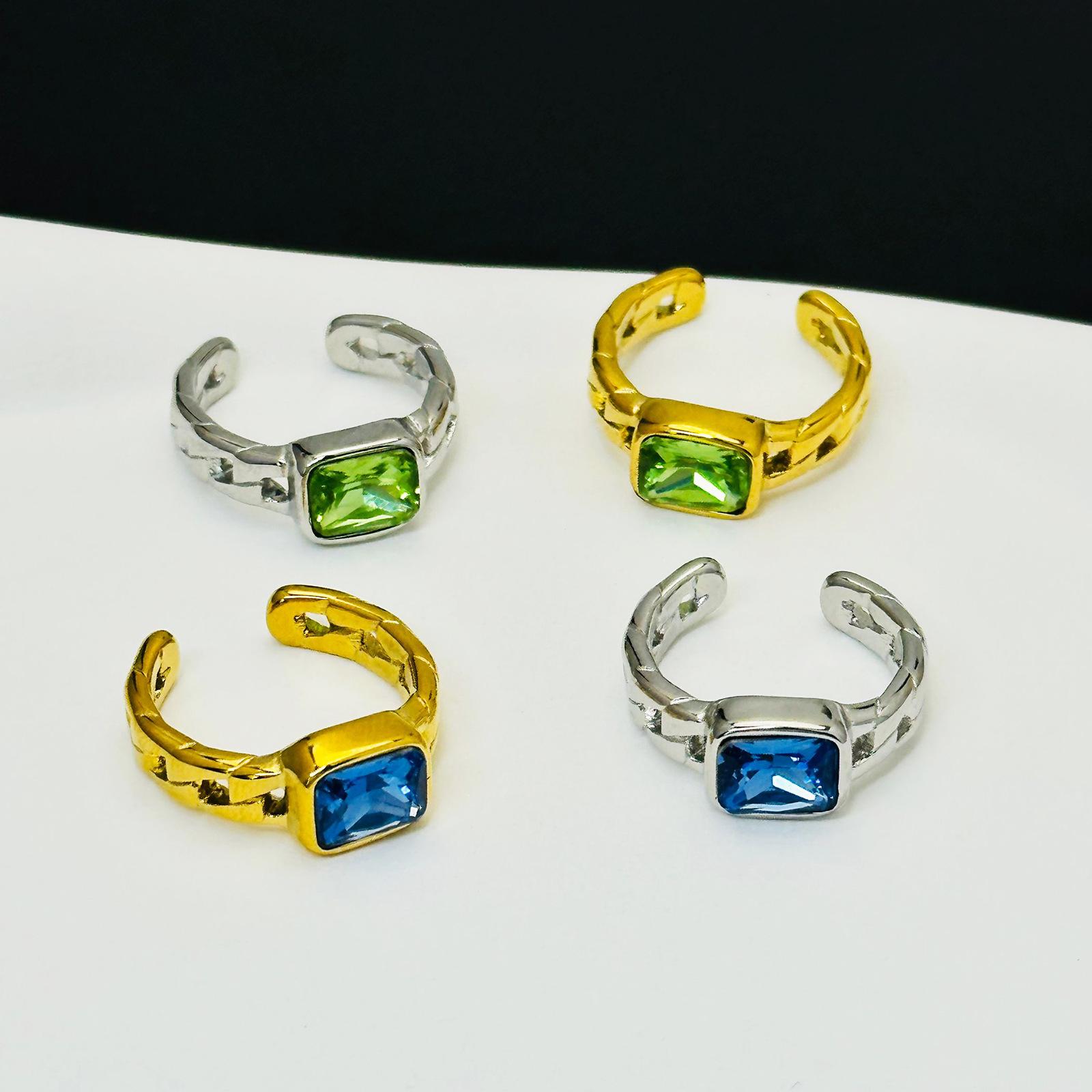 Anillo de Acero de Titanio con Apertura Ajustable Estilo Francés Nuevo Azul Azúcar Verde con Incrustaciones de Diamantes Anillo de Mujer Pequeño y Pequeño