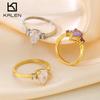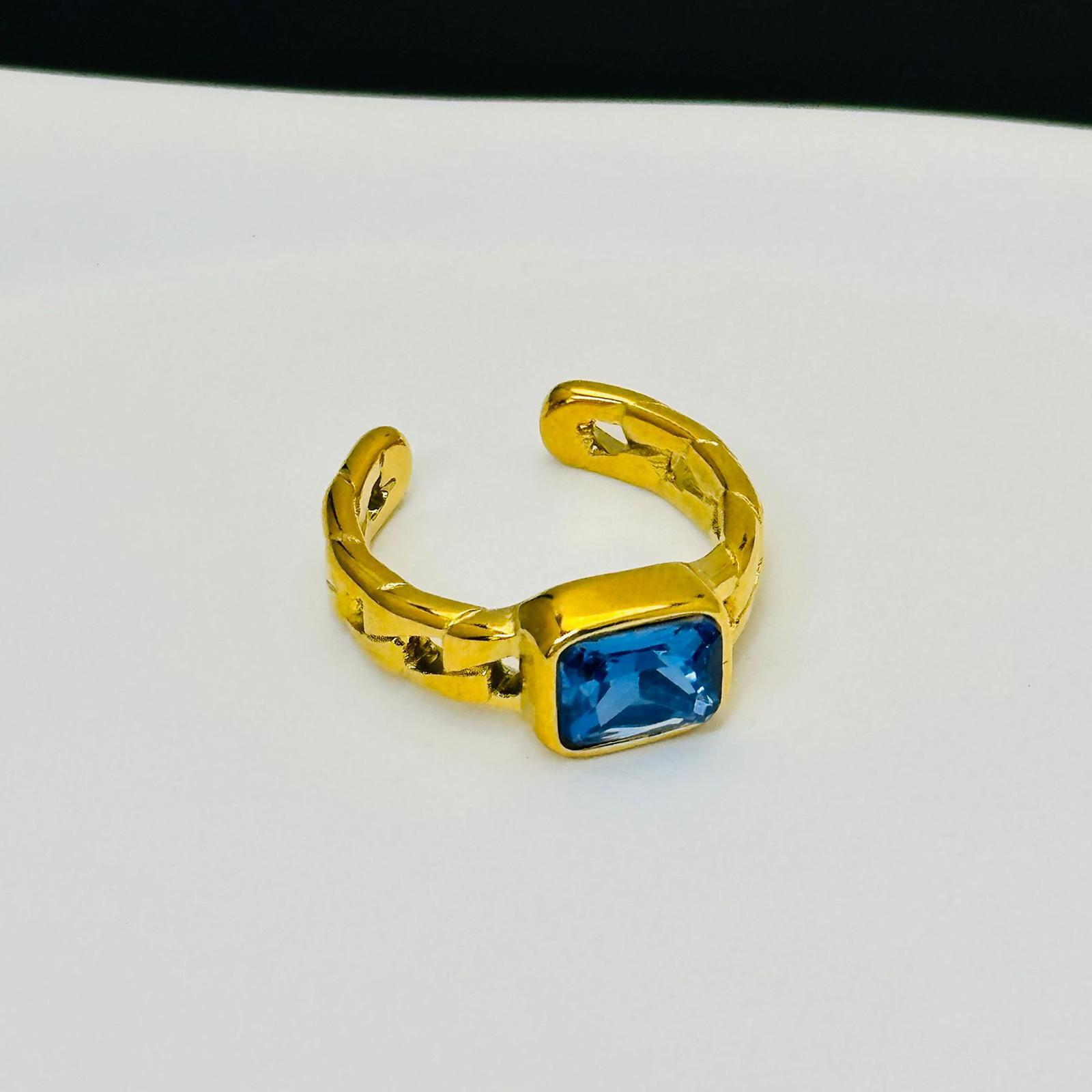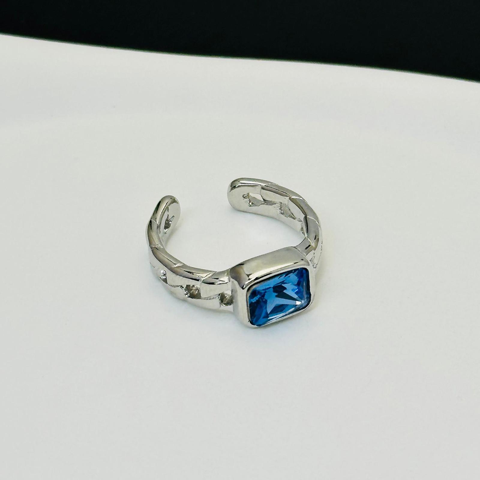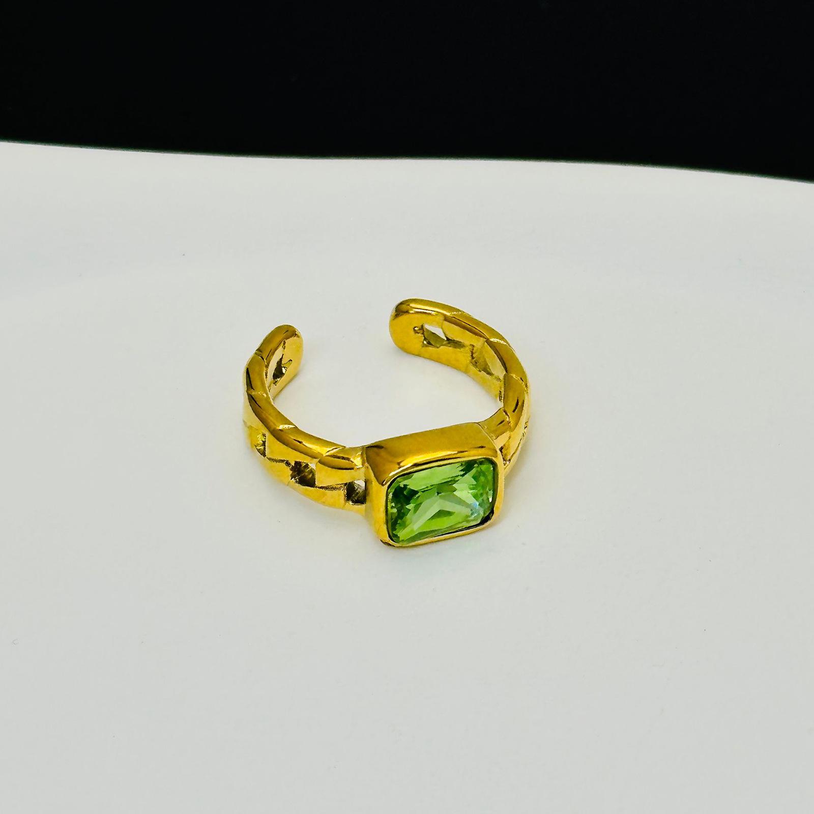 Anillo de Acero de Titanio con Apertura Ajustable Estilo Francés Nuevo Azul Azúcar Verde con Incrustaciones de Diamantes Anillo de Mujer Pequeño y Pequeño