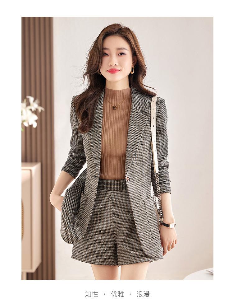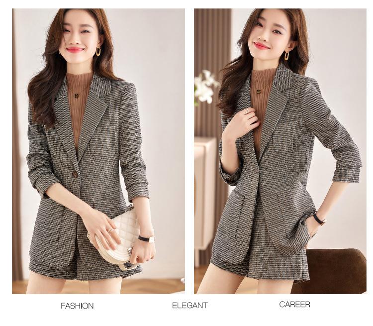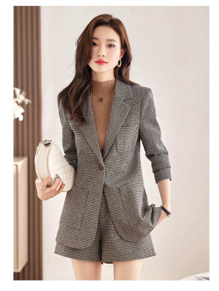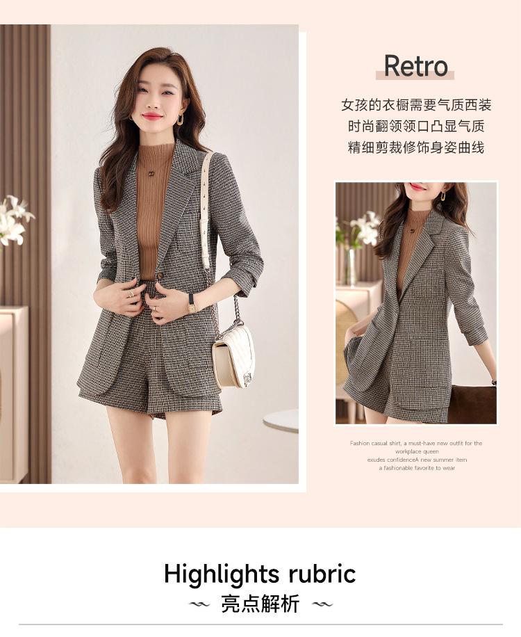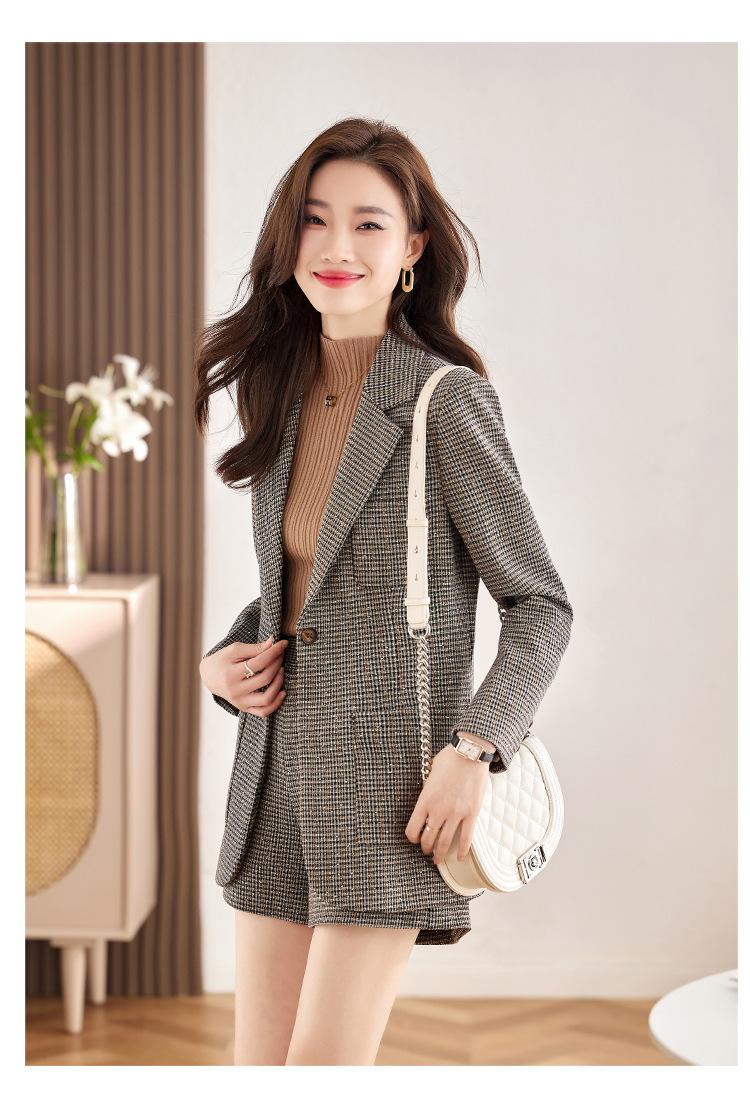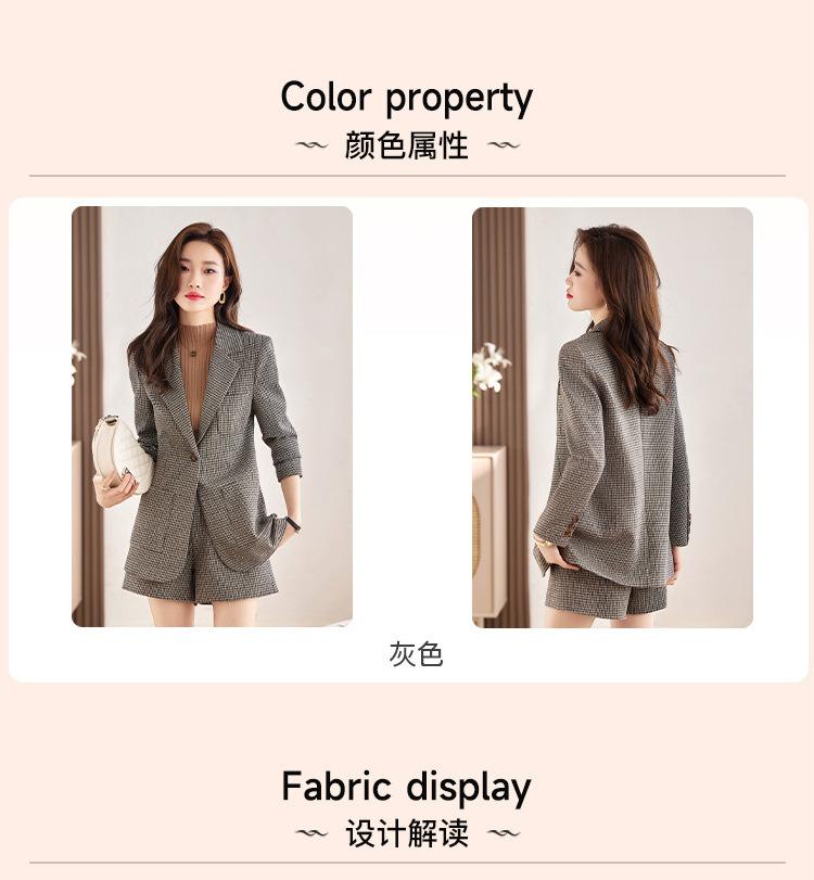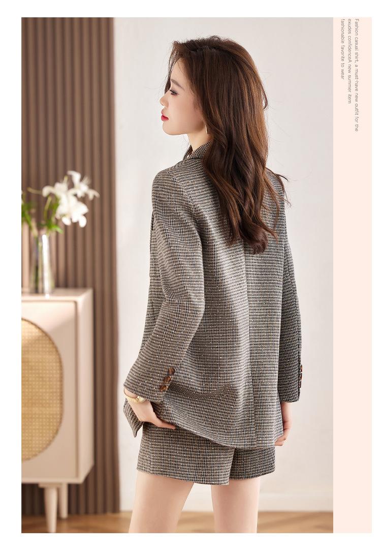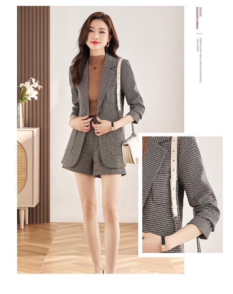 Chaqueta de Traje a Cuadros Gris para Mujer Primavera y Otoño 2023 Nuevo Temperamento de Alta Gama Traje Casual Shorts de Traje Otoño