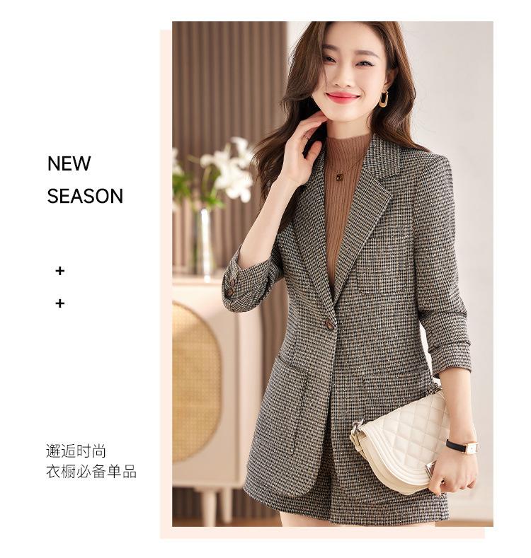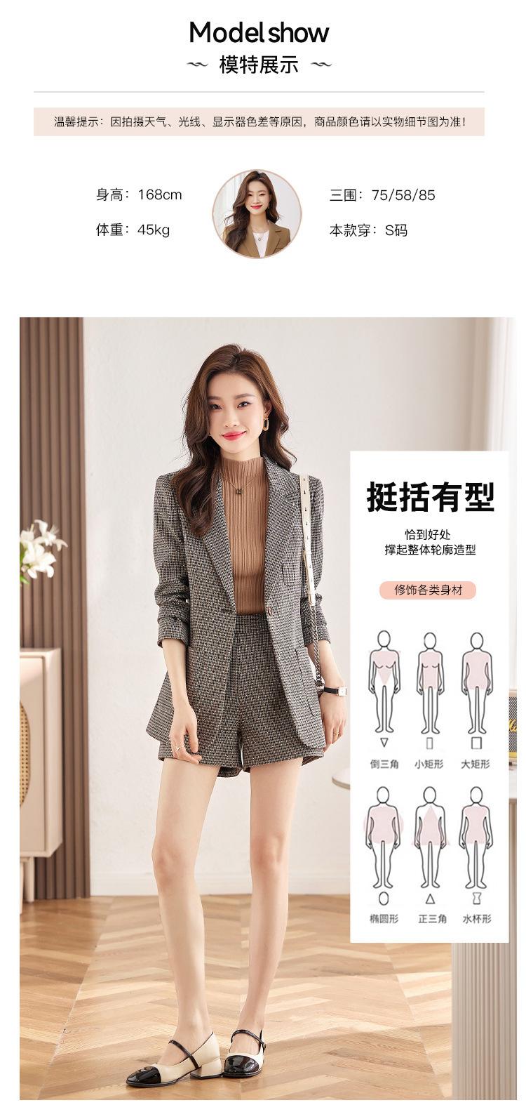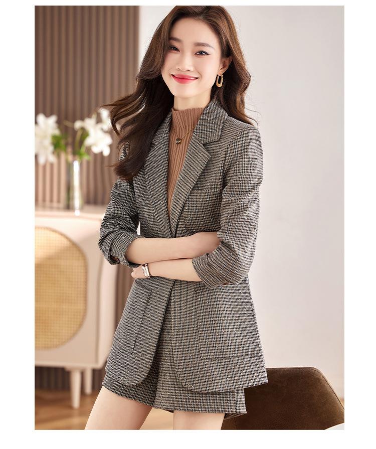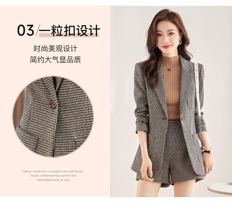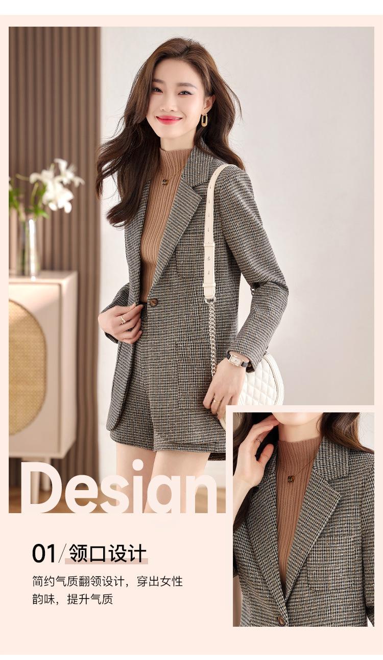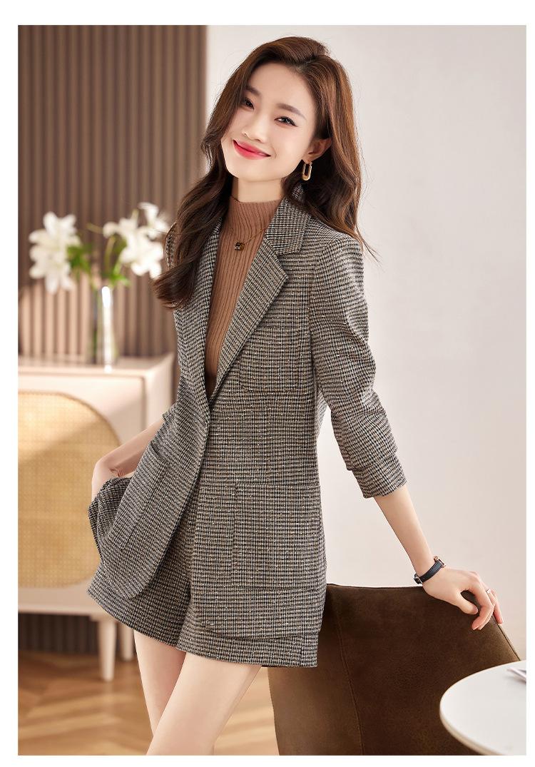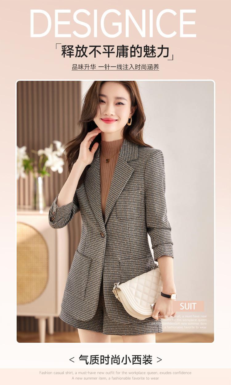 Chaqueta de Traje a Cuadros Gris para Mujer Primavera y Otoño 2023 Nuevo Temperamento de Alta Gama Traje Casual Shorts de Traje Otoño