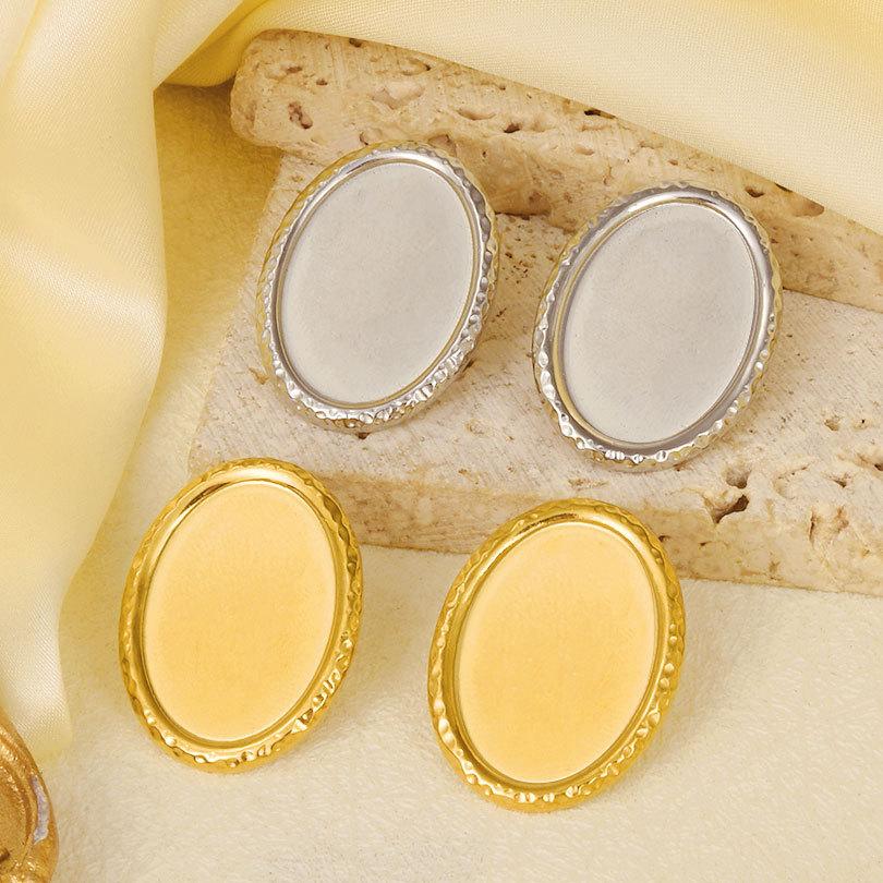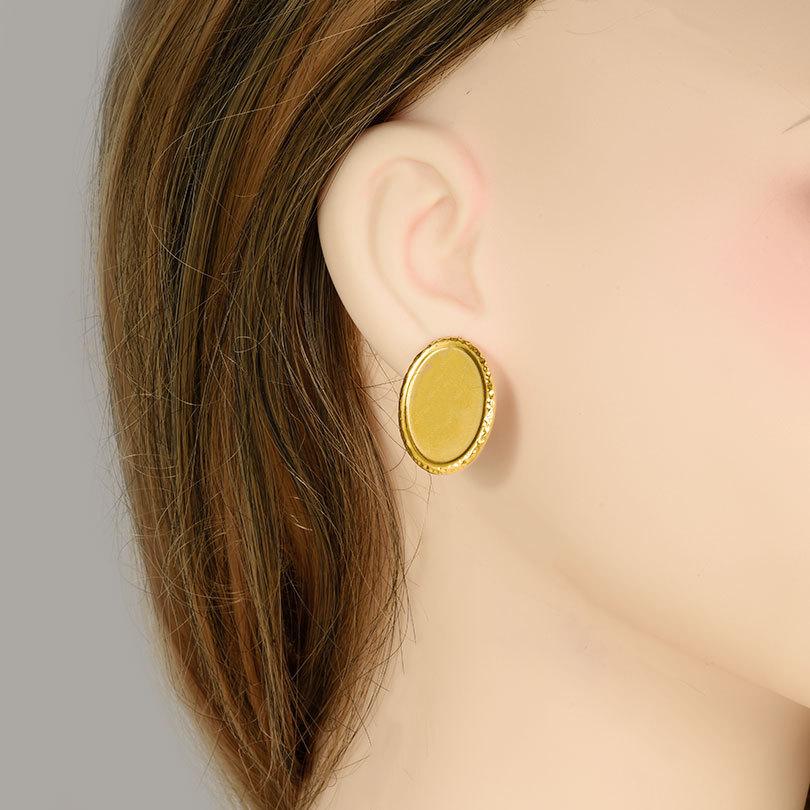 Pendientes redondos sencillos de moda de acero inoxidable 304, con temperamento femenino, pendientes de viento neutro, pendientes de oro de 18 quilates al vacío.