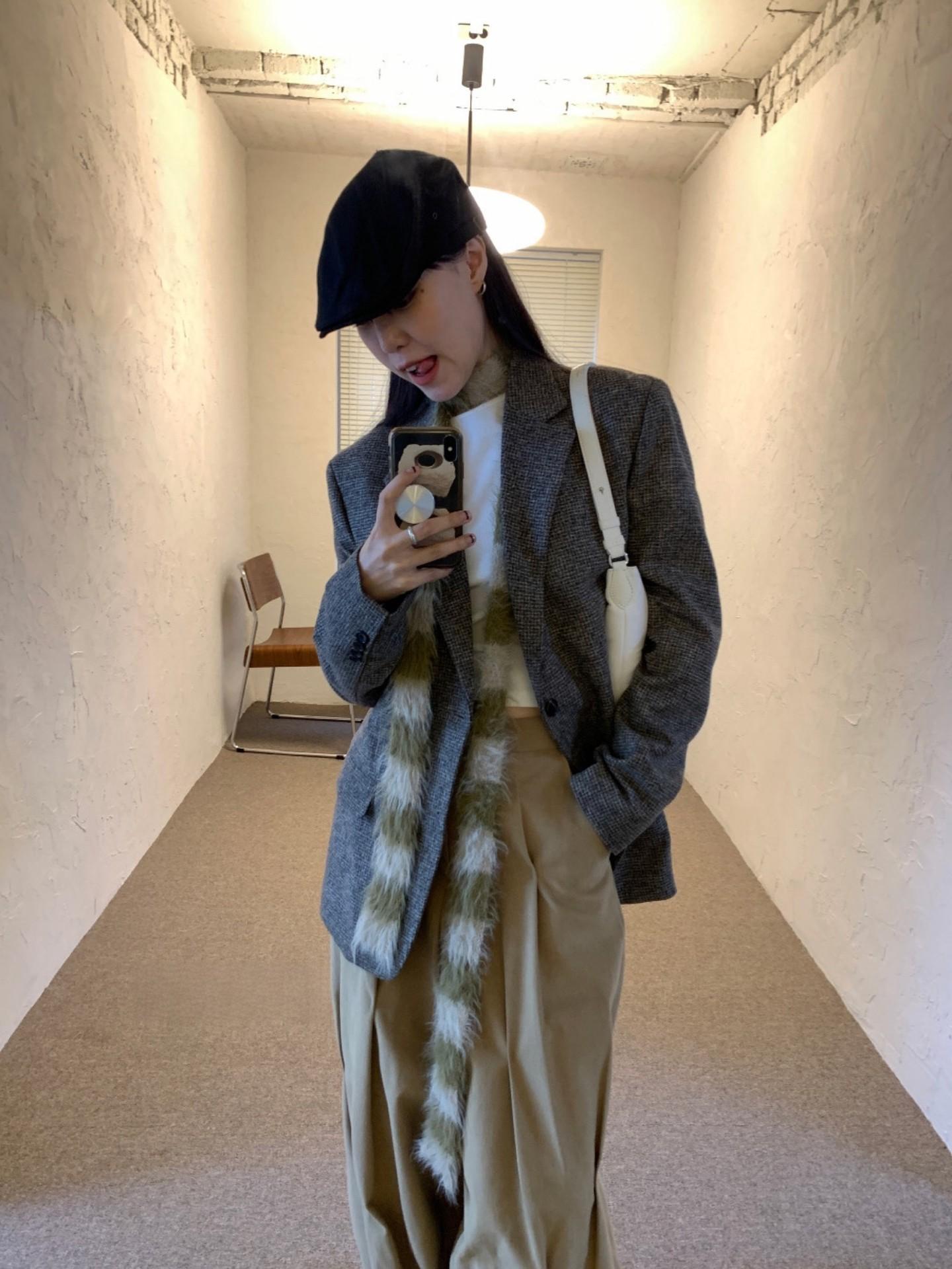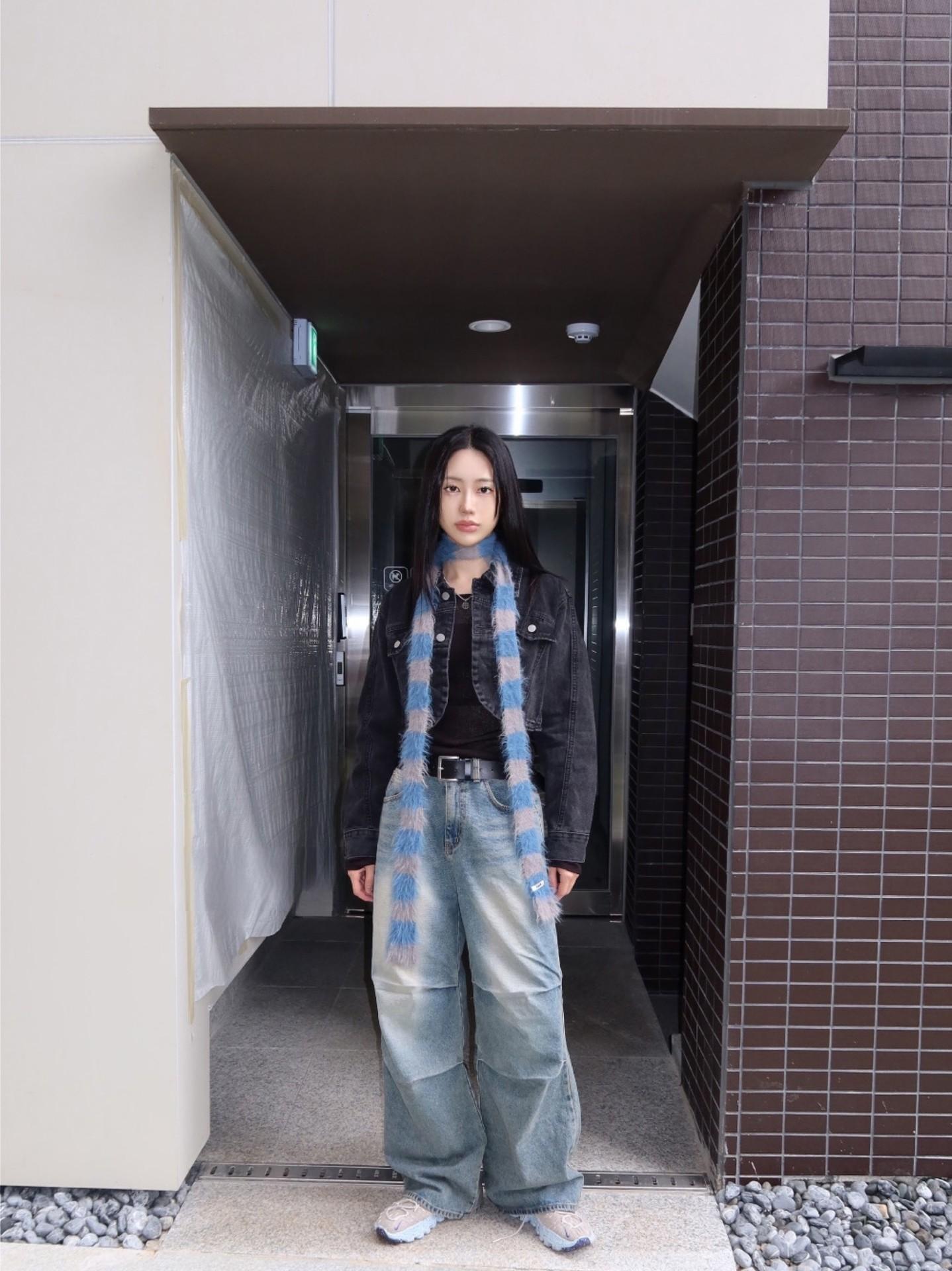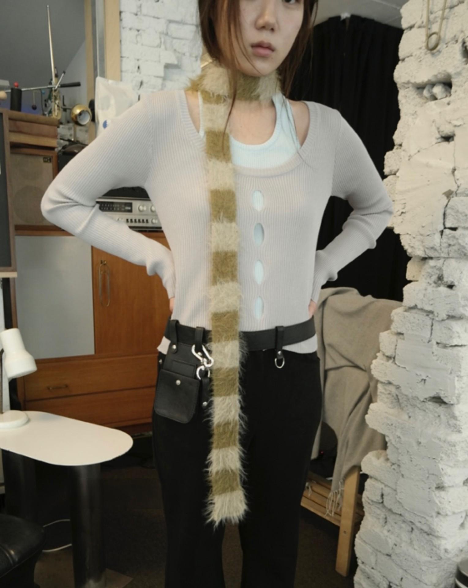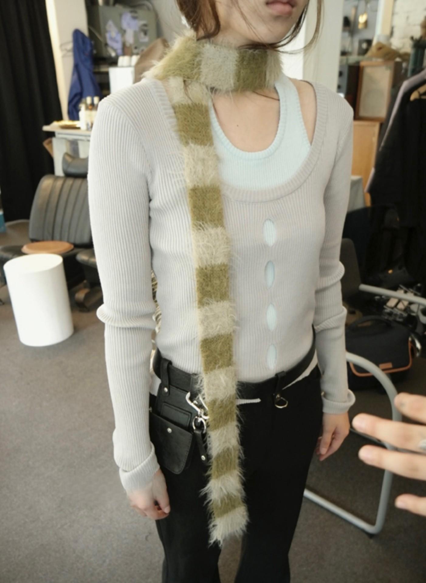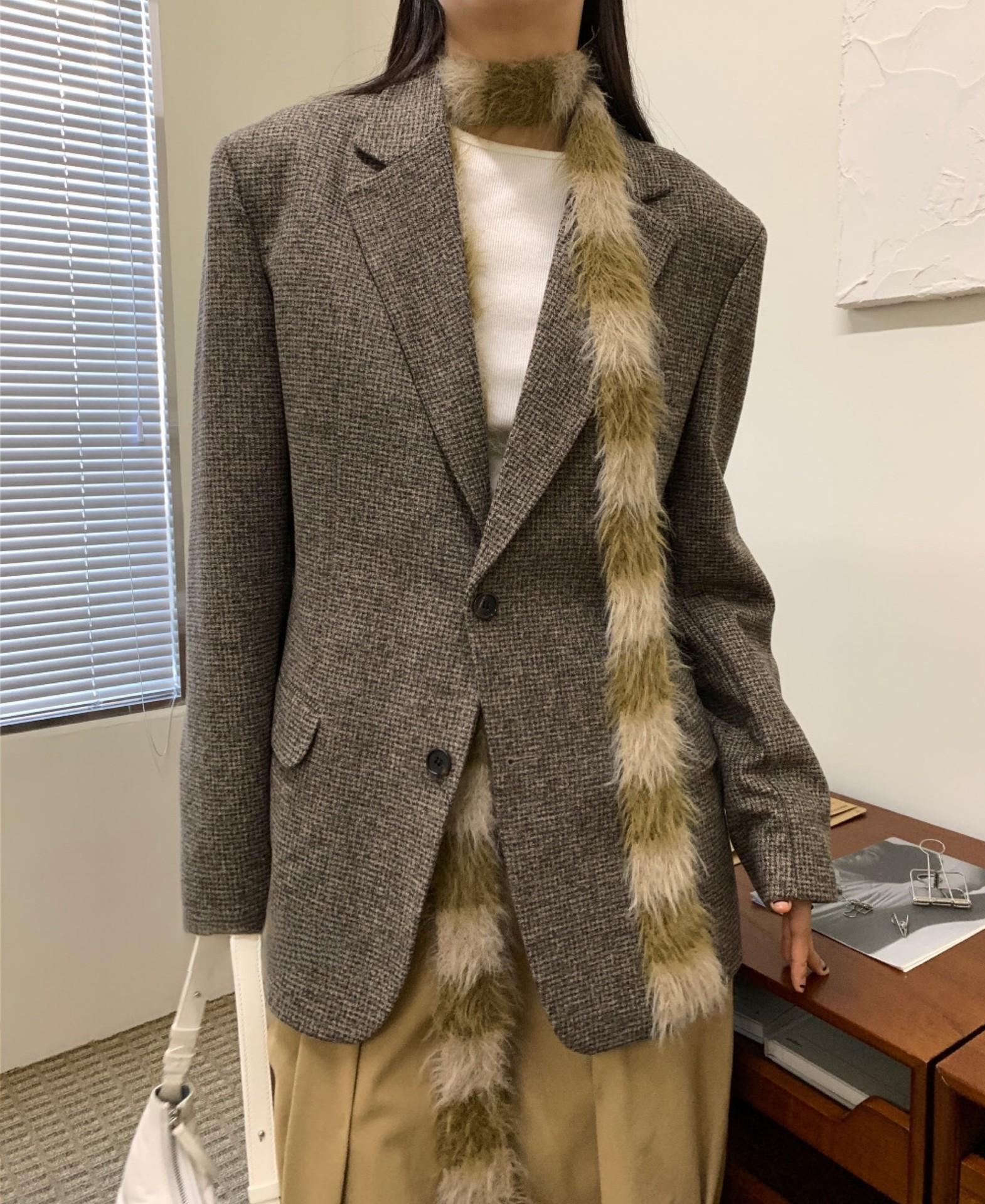 Bufanda estrecha apilada con atmósfera de rayas peludas de UniqueSEI Corea del Sur, personalizada, de colores vintage a juego.