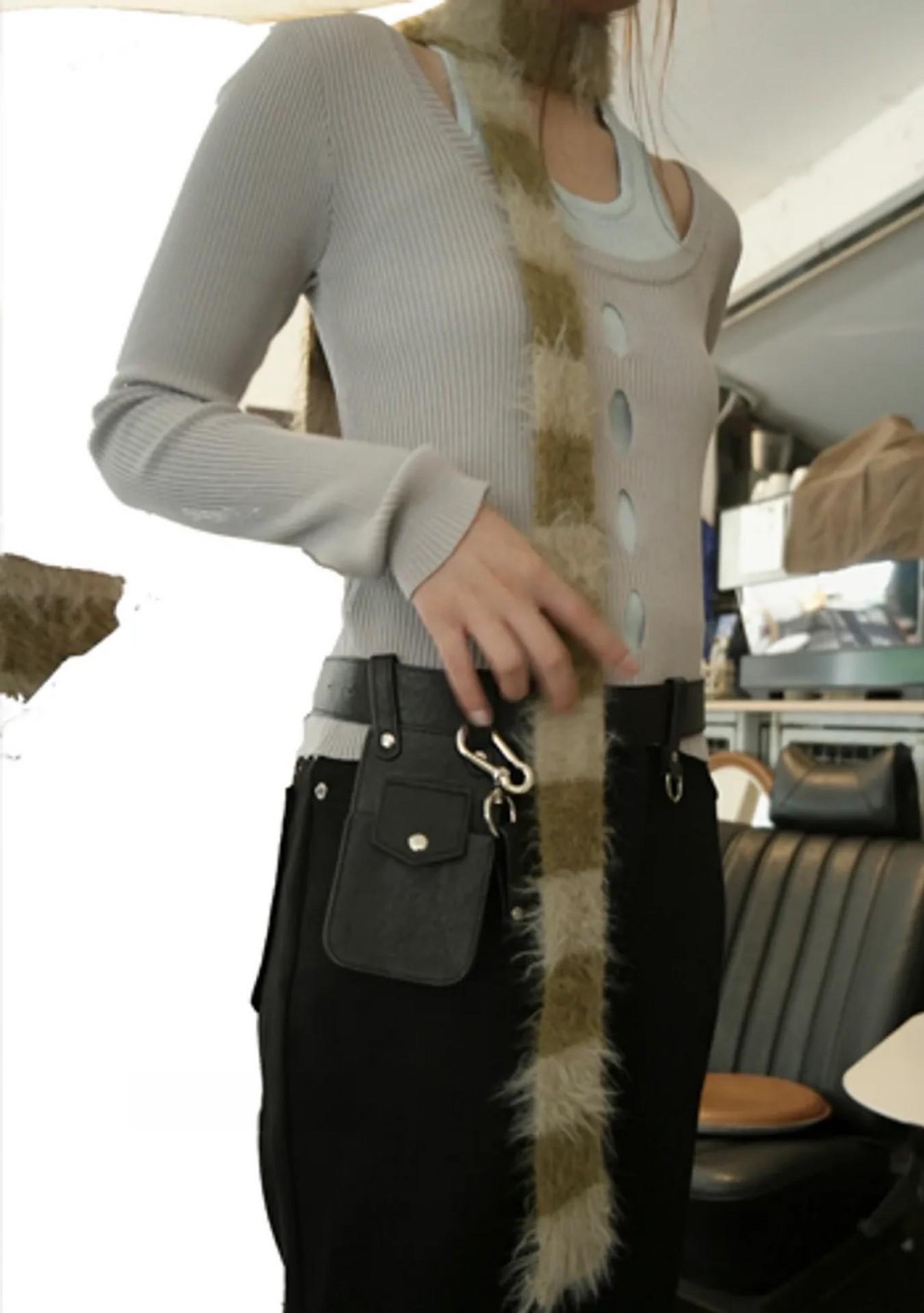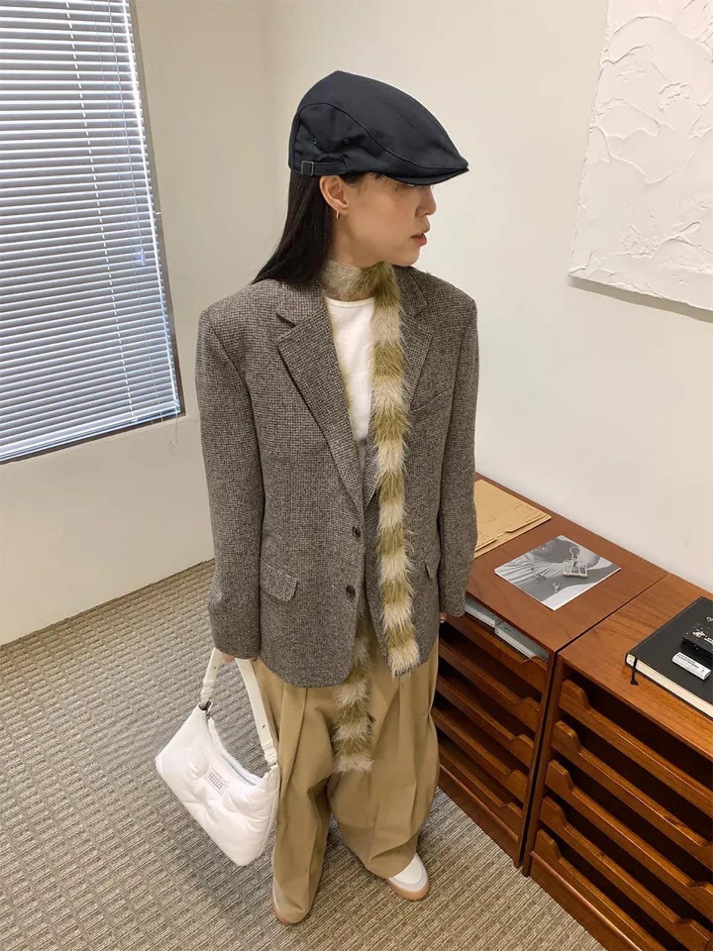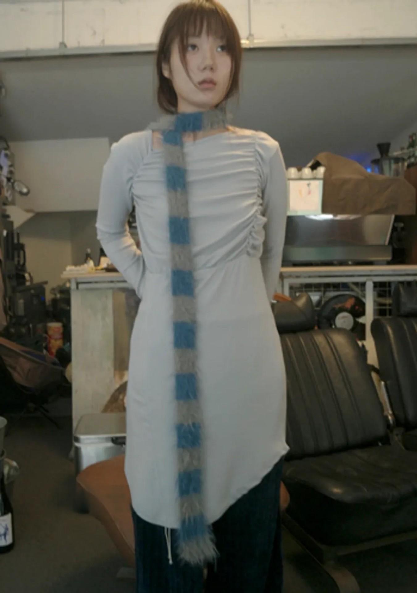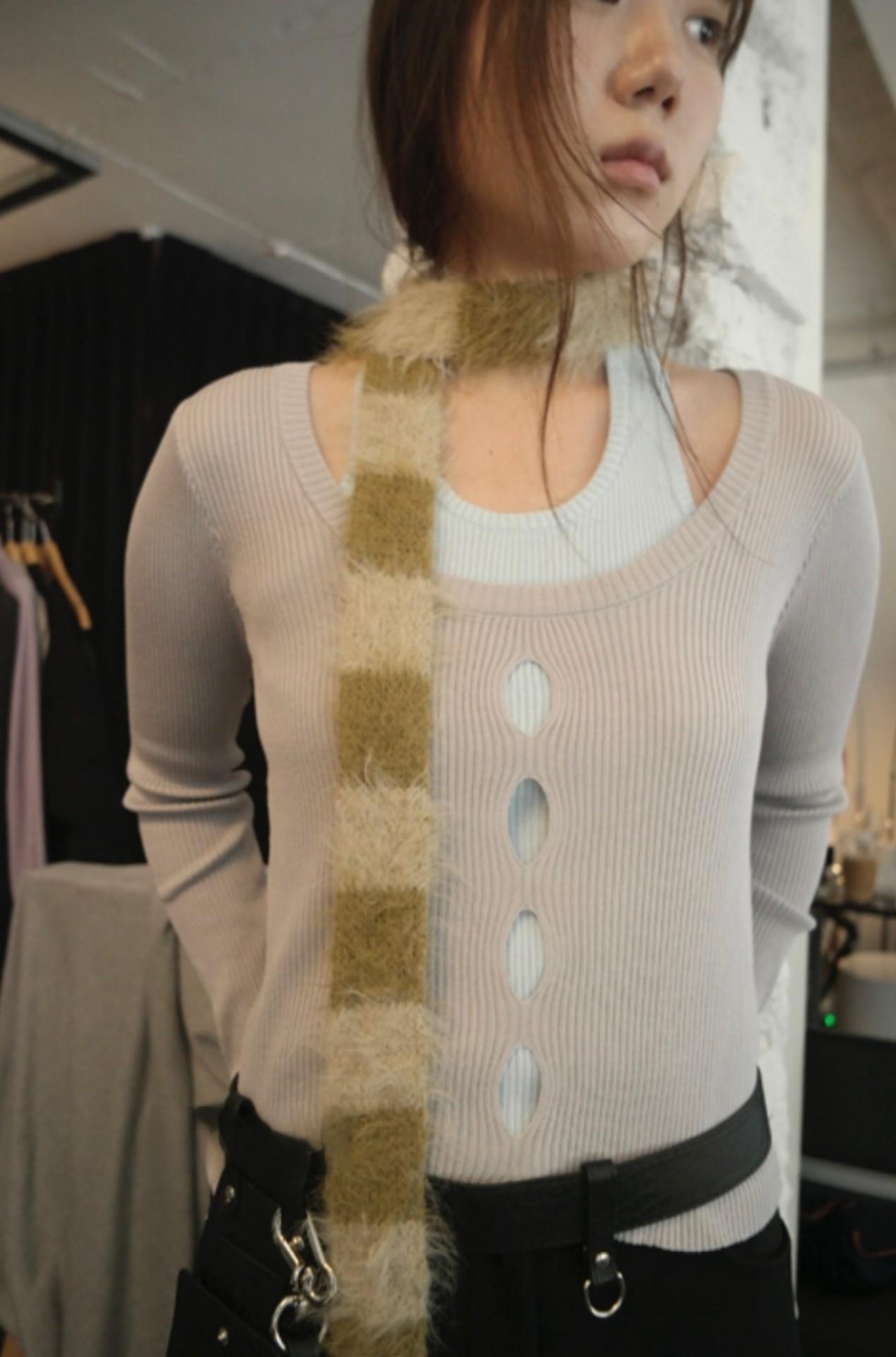 Bufanda estrecha apilada con atmósfera de rayas peludas de UniqueSEI Corea del Sur, personalizada, de colores vintage a juego.