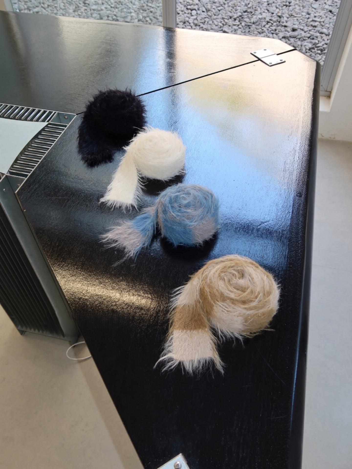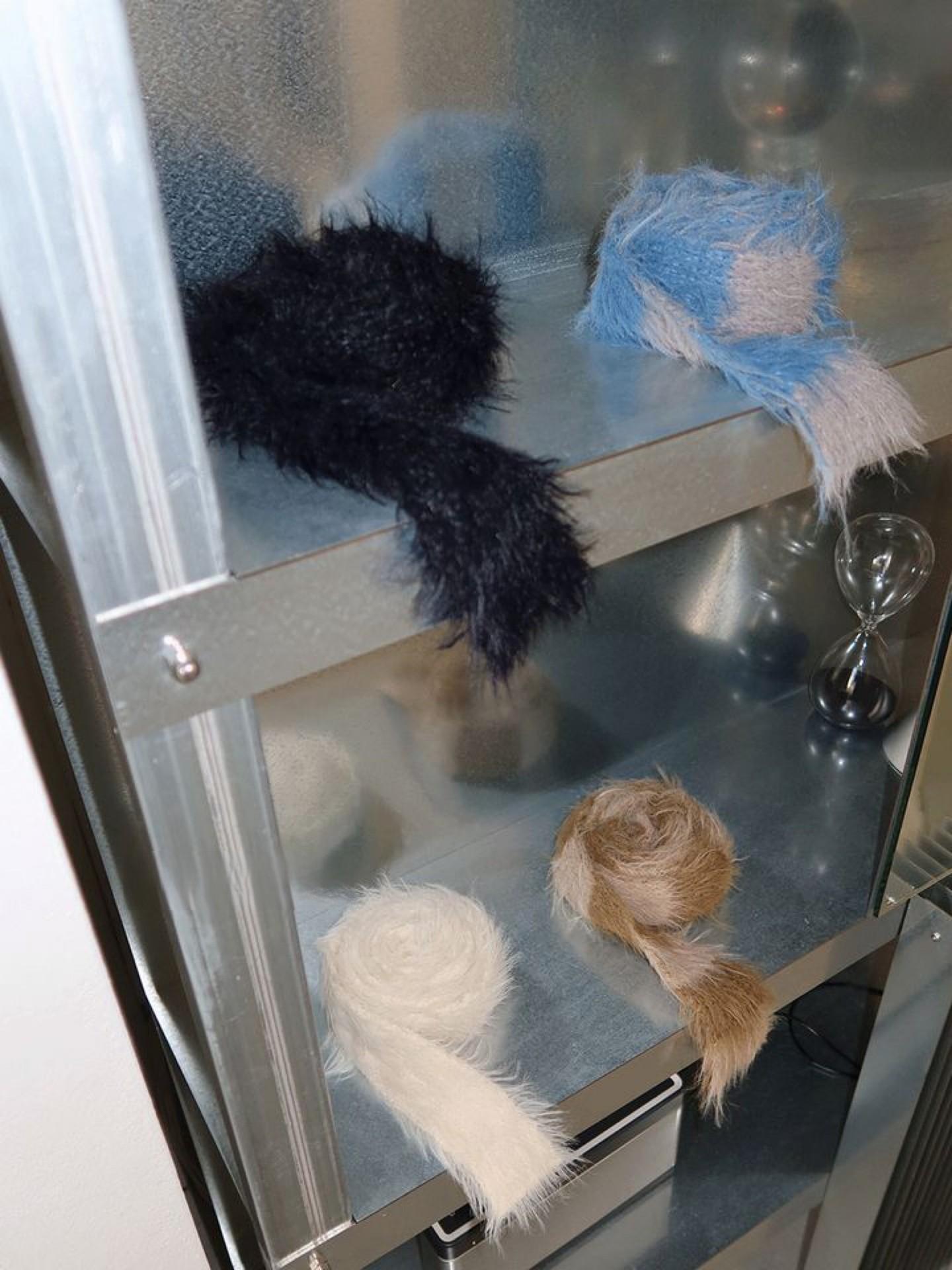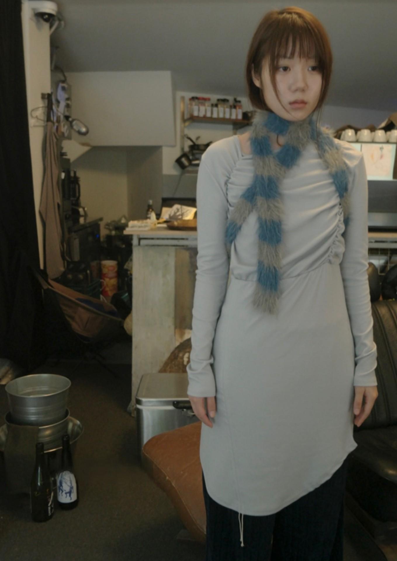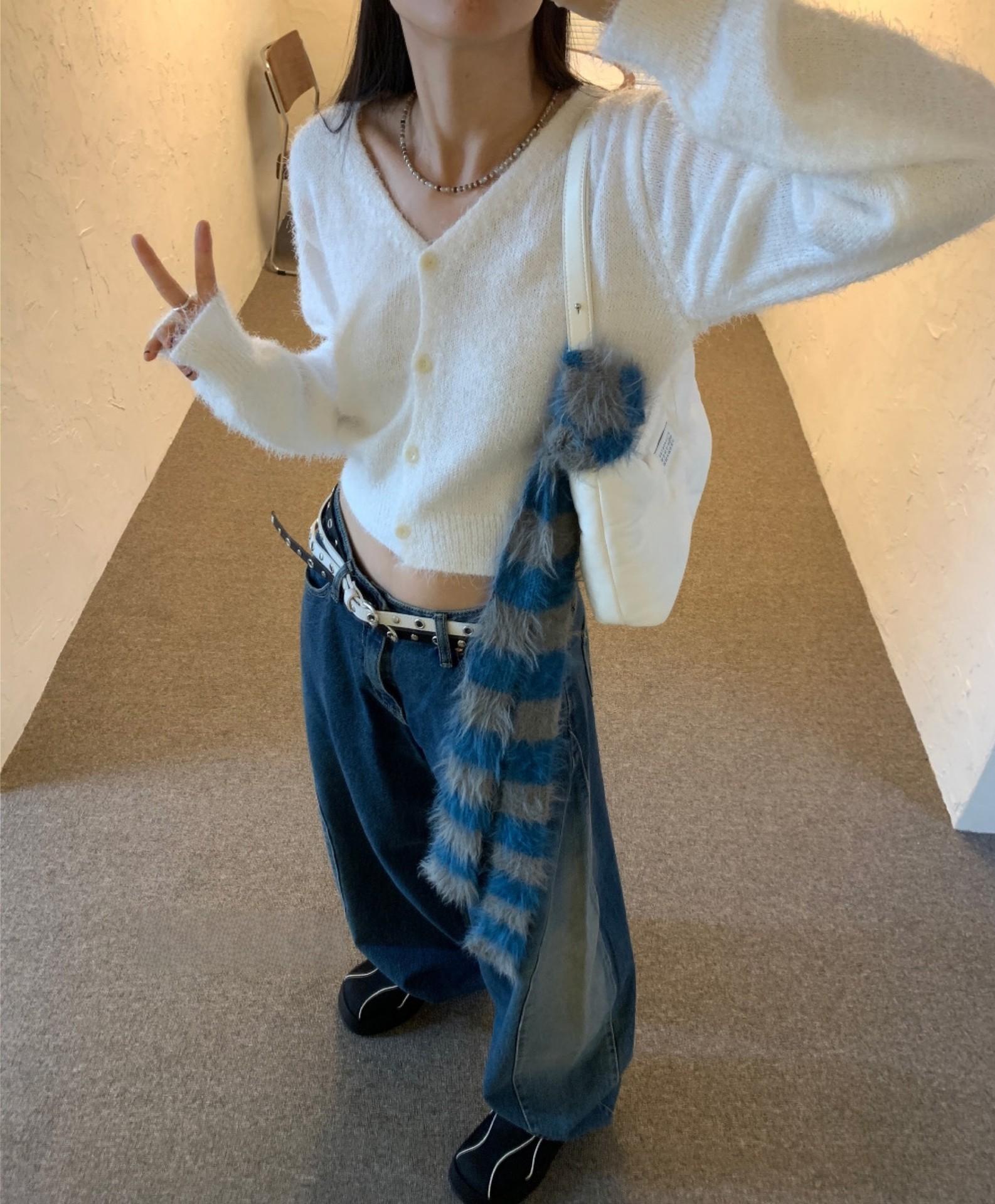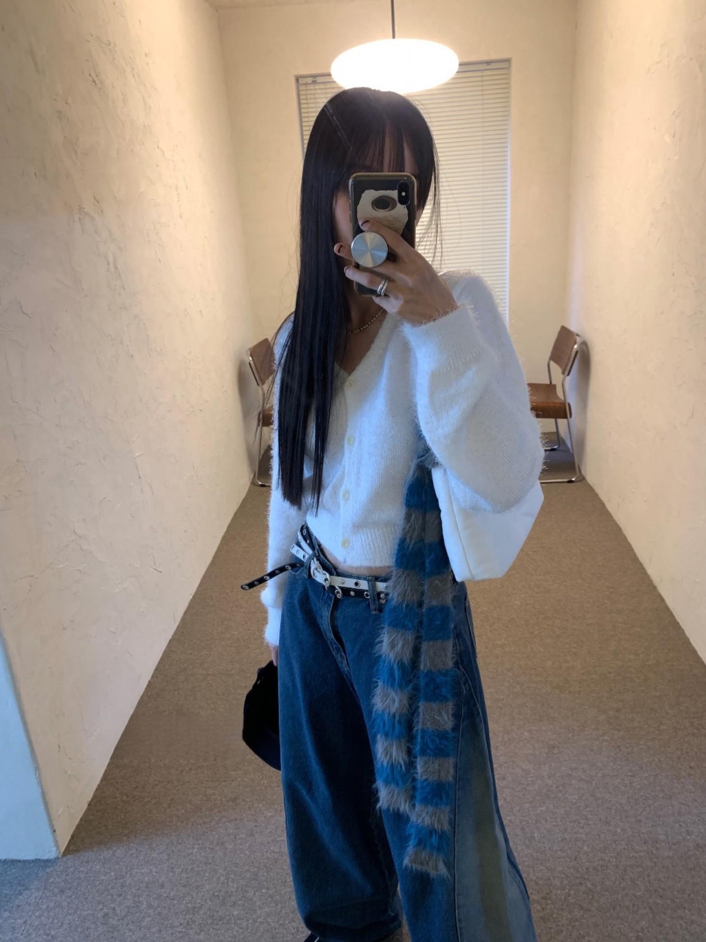 Bufanda estrecha apilada con atmósfera de rayas peludas de UniqueSEI Corea del Sur, personalizada, de colores vintage a juego.