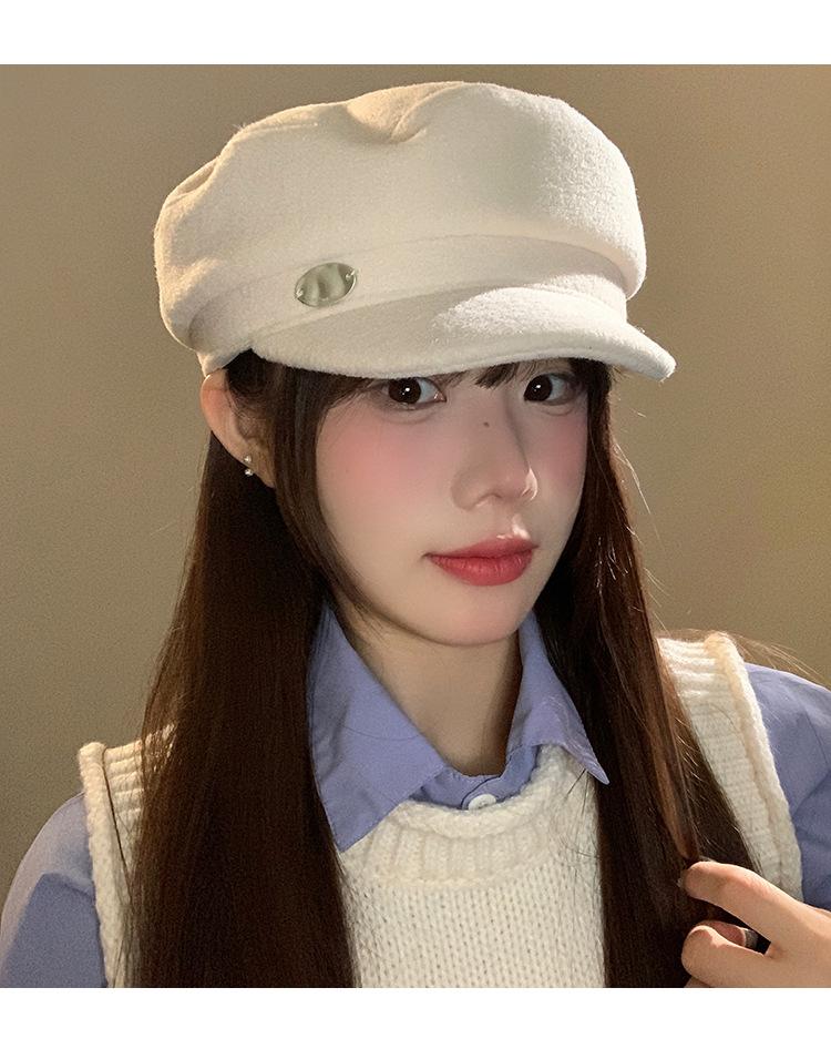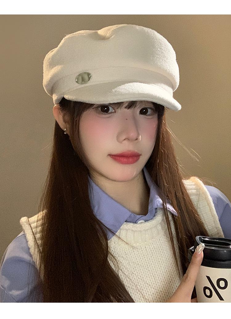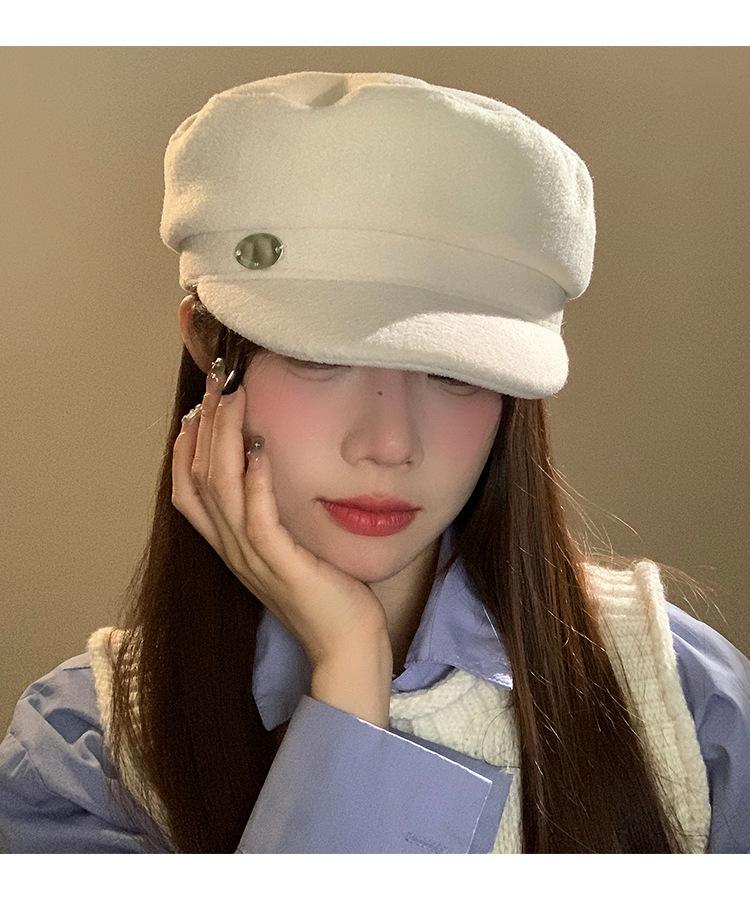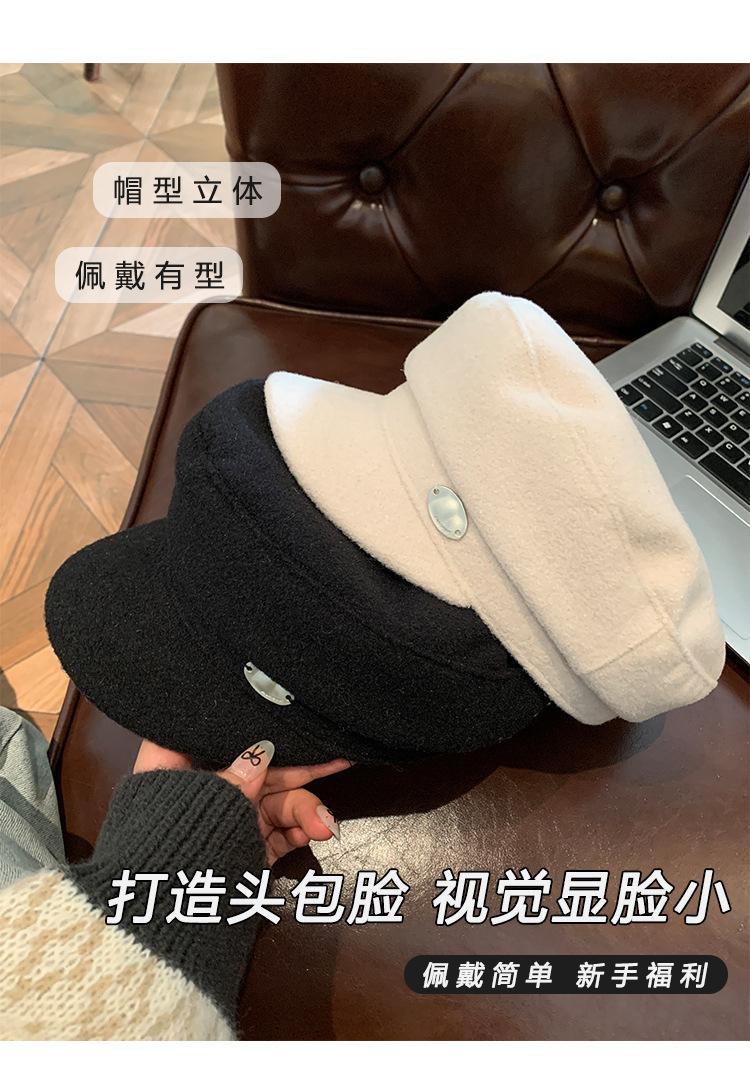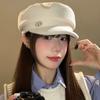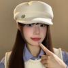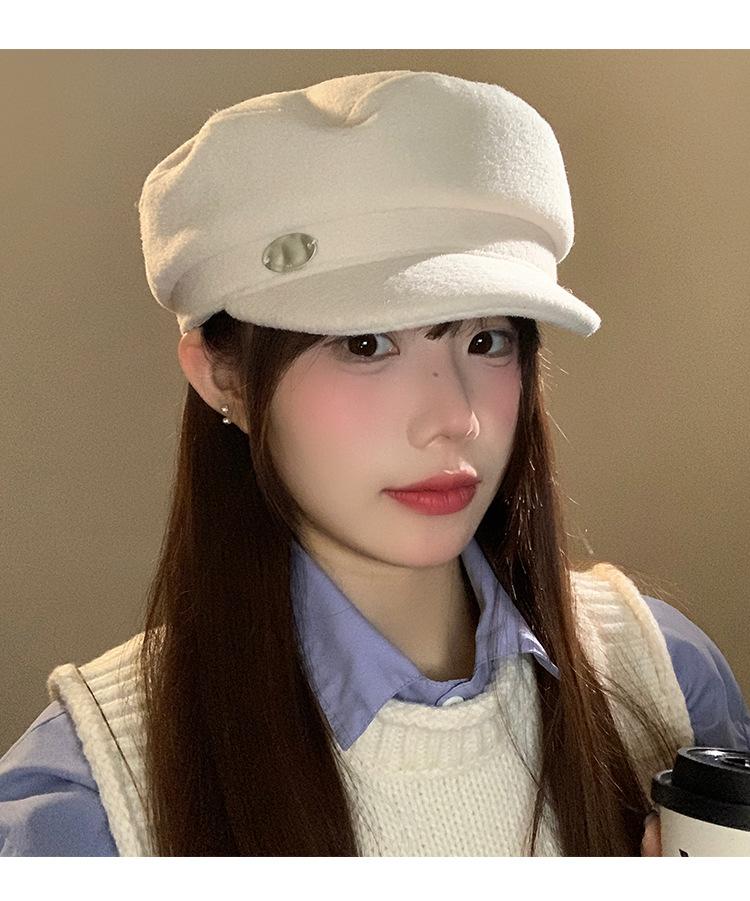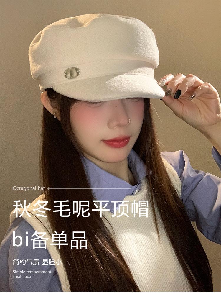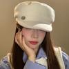 Boina plana de lana blanca para mujer, estilo coreano, de ala ancha, octogonal, con cabeza grande, para otoño e invierno