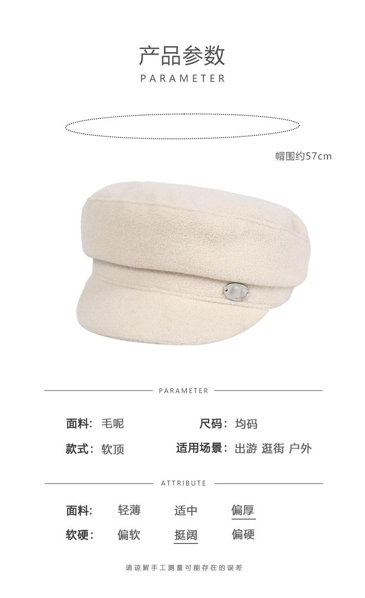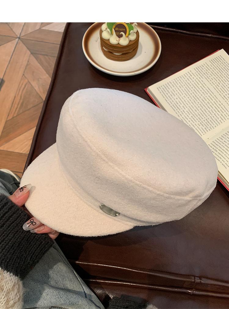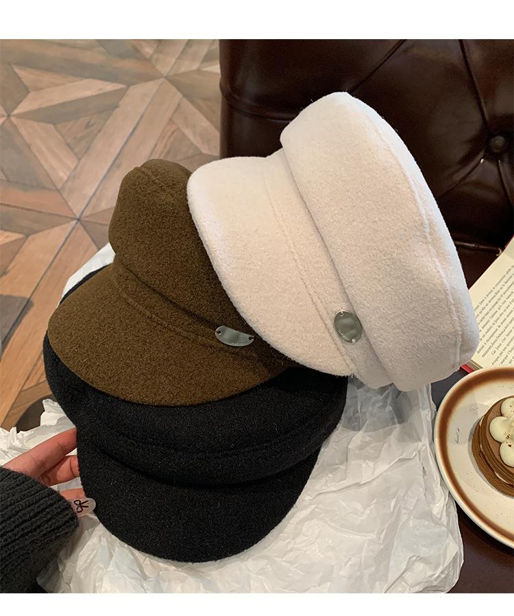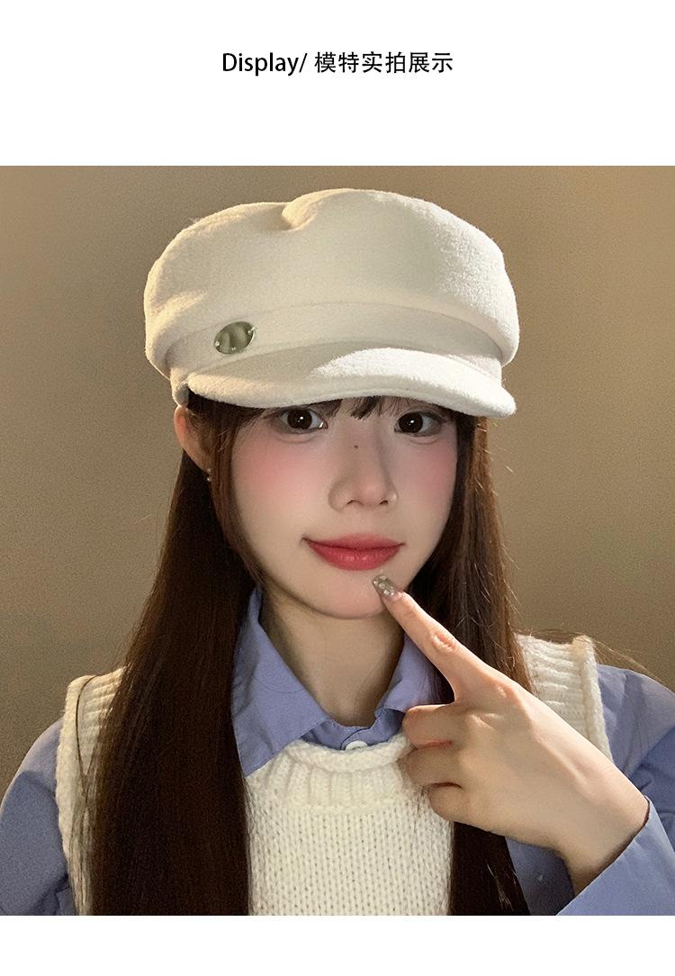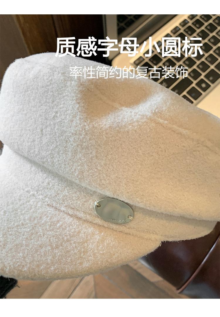 Boina plana de lana blanca para mujer, estilo coreano, de ala ancha, octogonal, con cabeza grande, para otoño e invierno