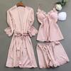 Nuevo pijama de primavera, bata sexy, cómodo conjunto de pijama con tirantes divididos con almohadillas para el pecho, ropa de hogar, conjunto de cuatro piezas