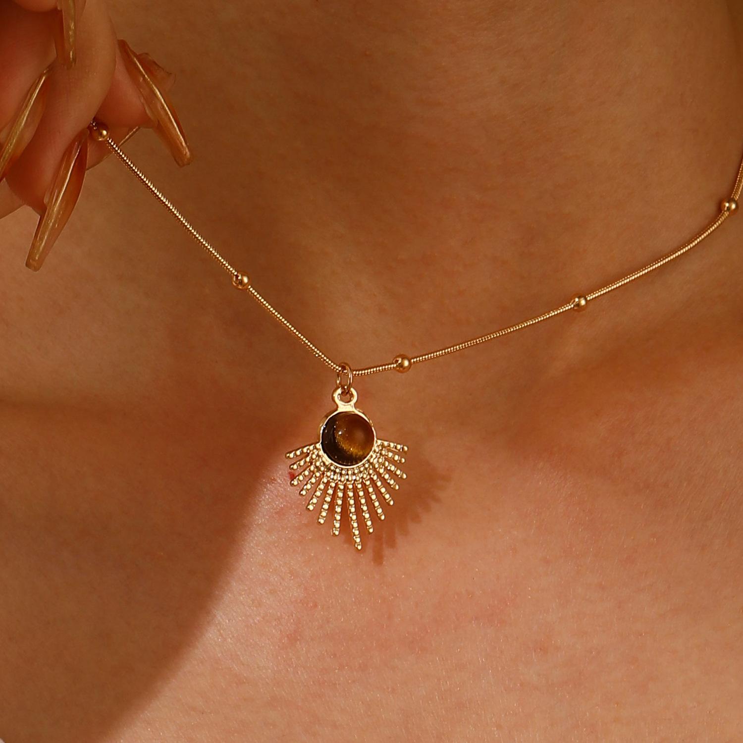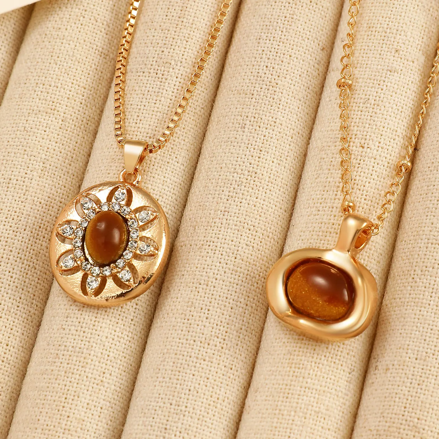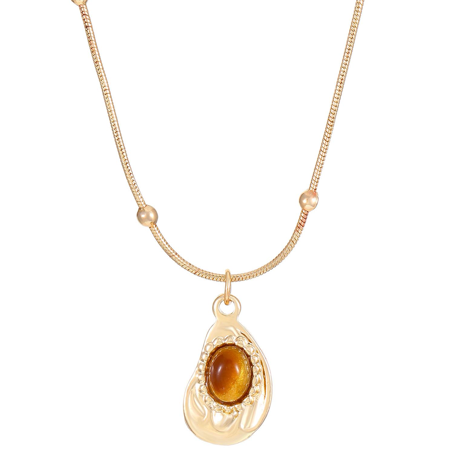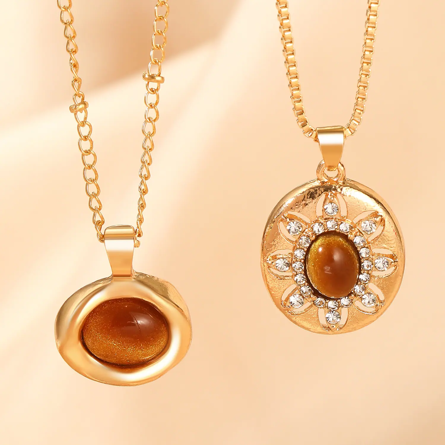 Collar Transfronterizo de Piedra Ojo de Tigre Maillard para Mujer Aleación de Alta Gama Nicho Cadena de Suéter Accesorios Colgante Retro Marrón