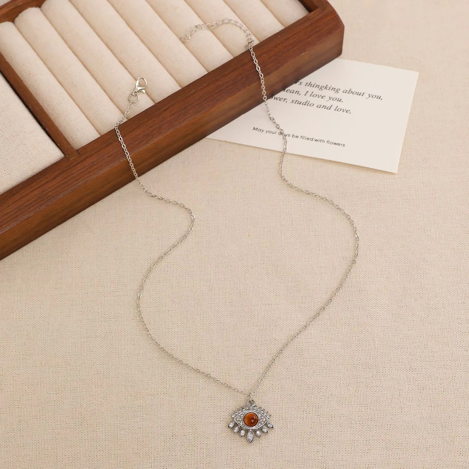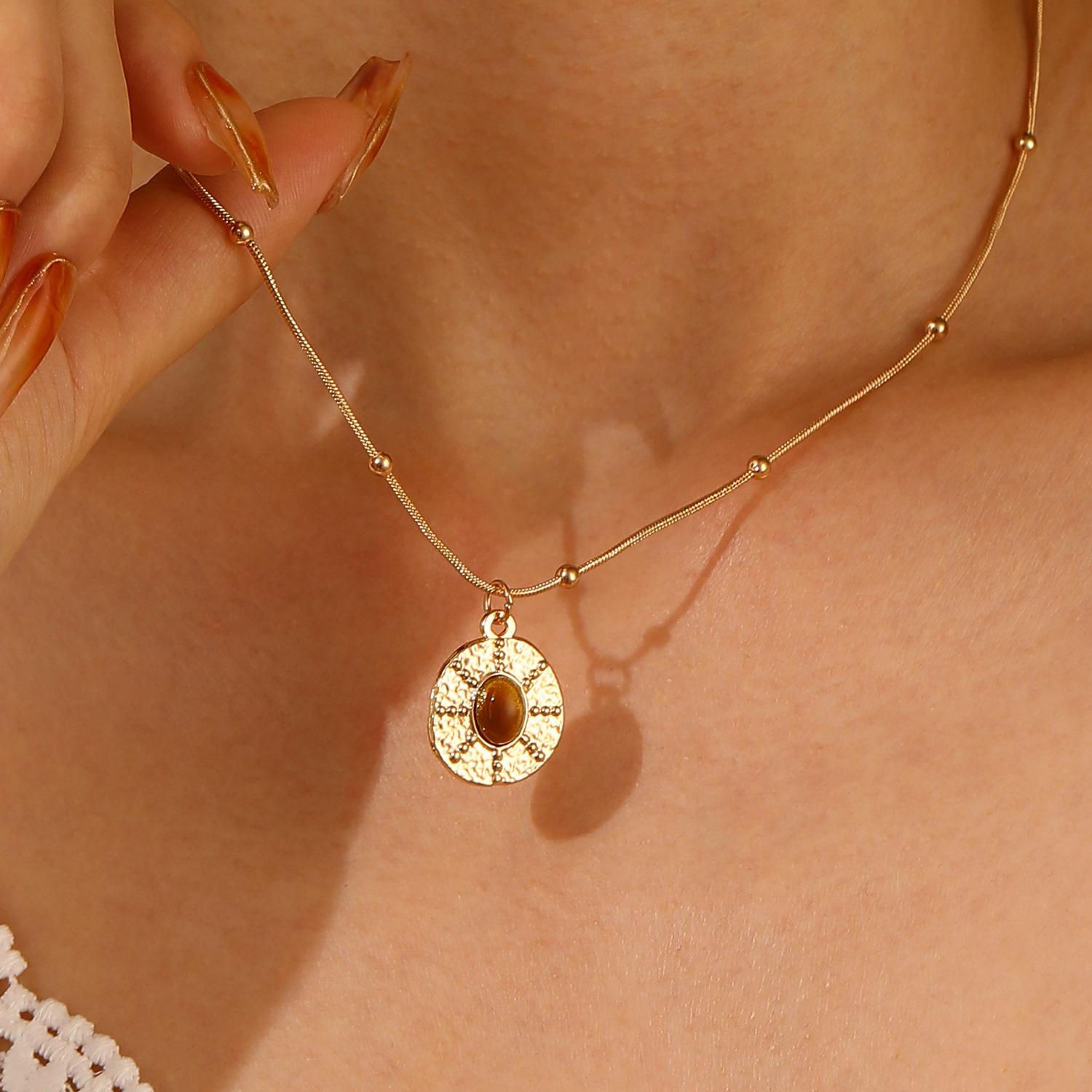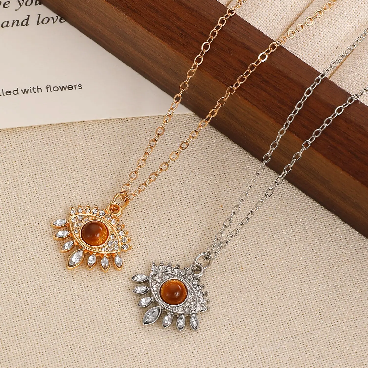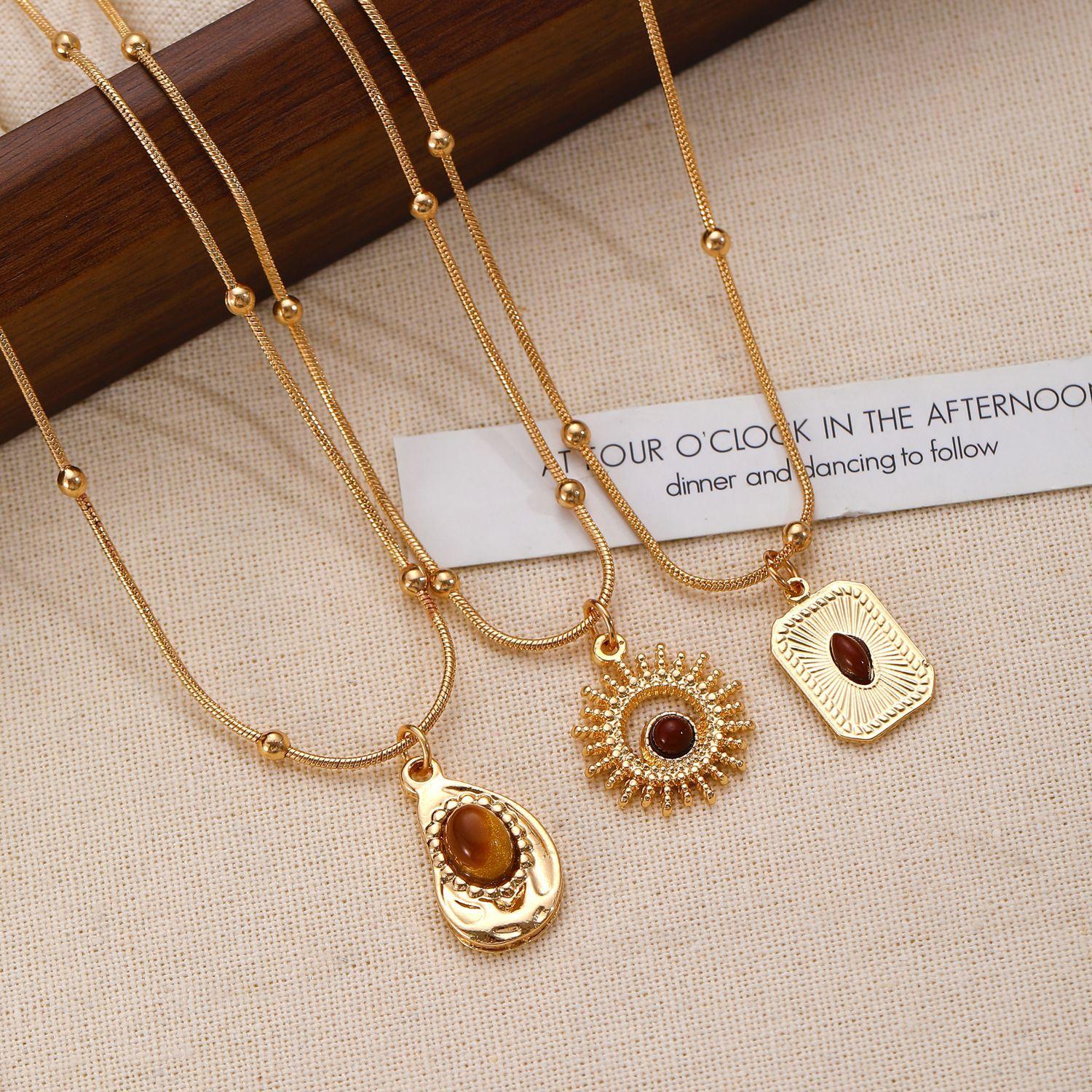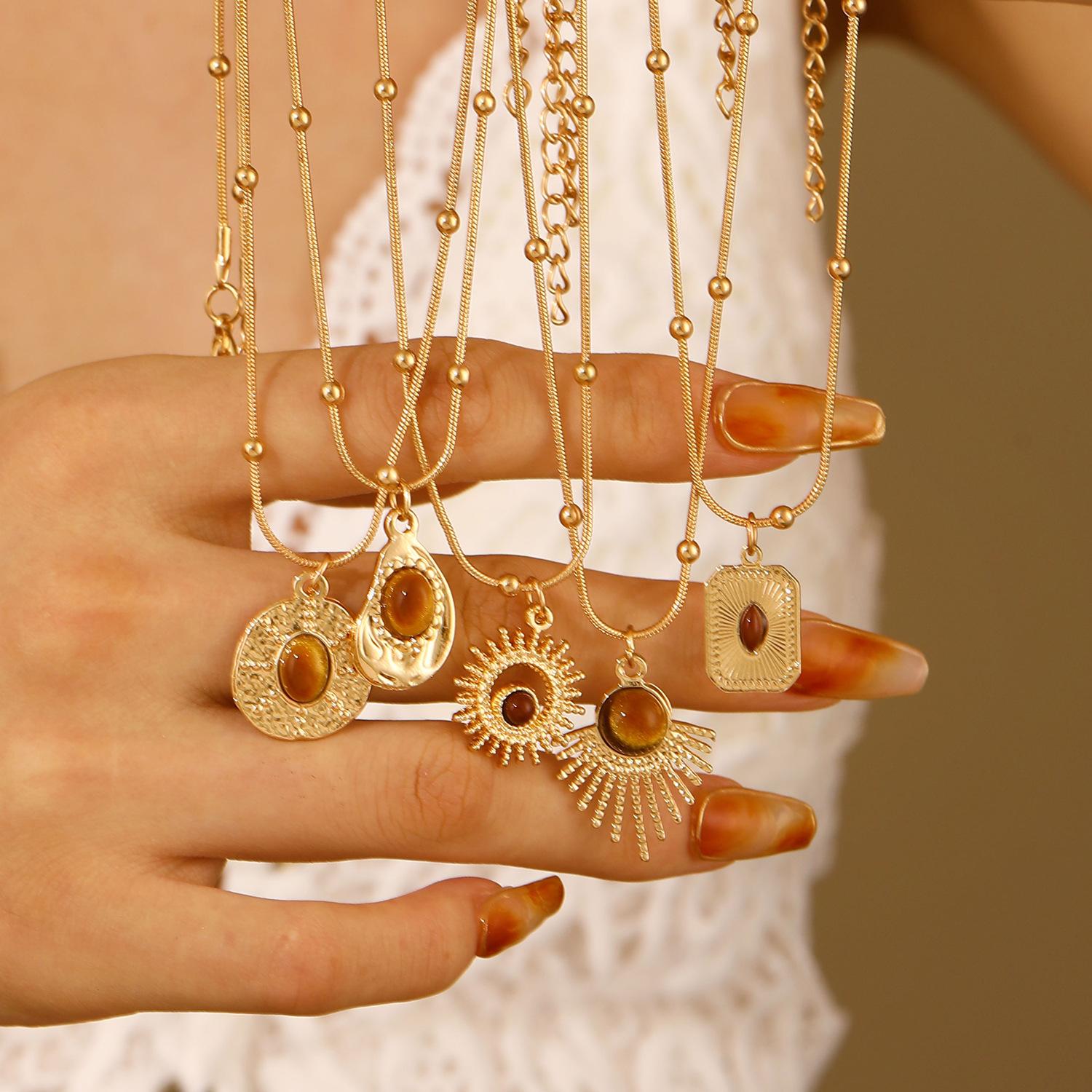 Collar Transfronterizo de Piedra Ojo de Tigre Maillard para Mujer Aleación de Alta Gama Nicho Cadena de Suéter Accesorios Colgante Retro Marrón
