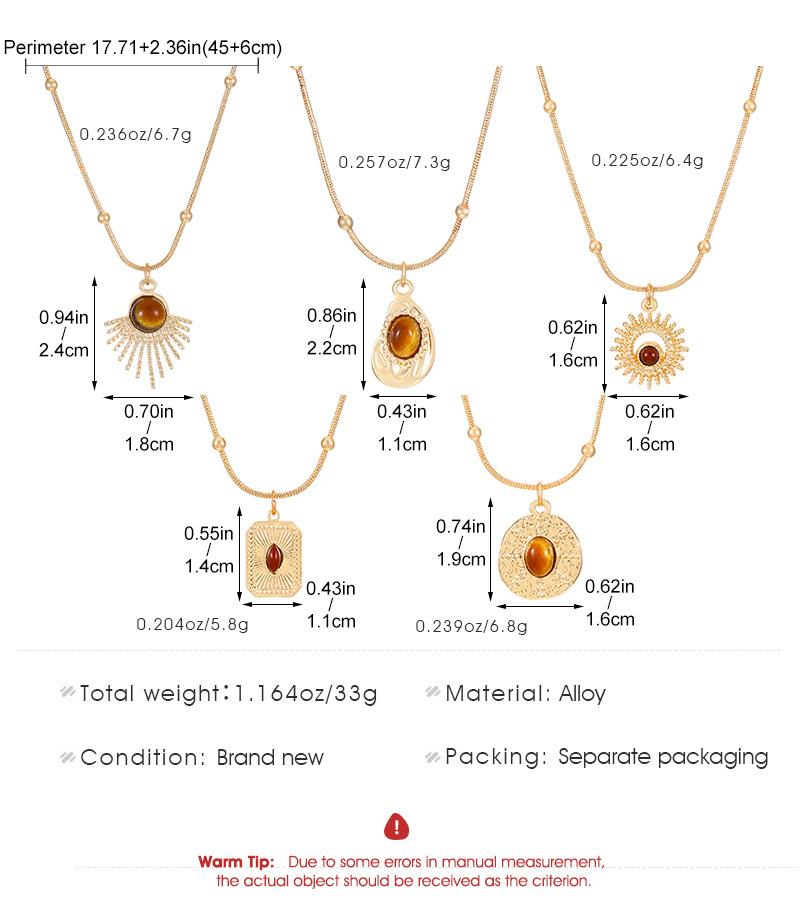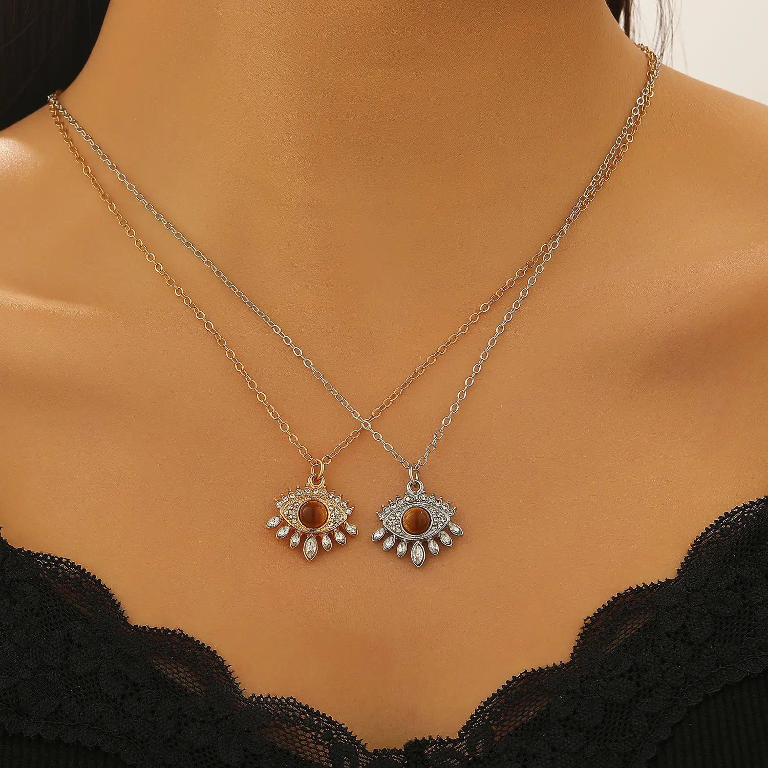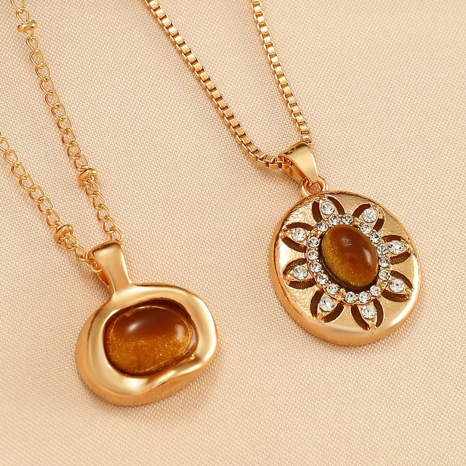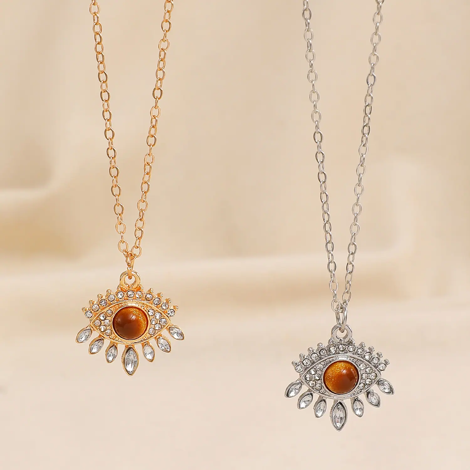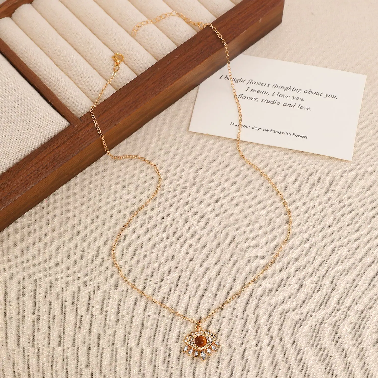 Collar Transfronterizo de Piedra Ojo de Tigre Maillard para Mujer Aleación de Alta Gama Nicho Cadena de Suéter Accesorios Colgante Retro Marrón