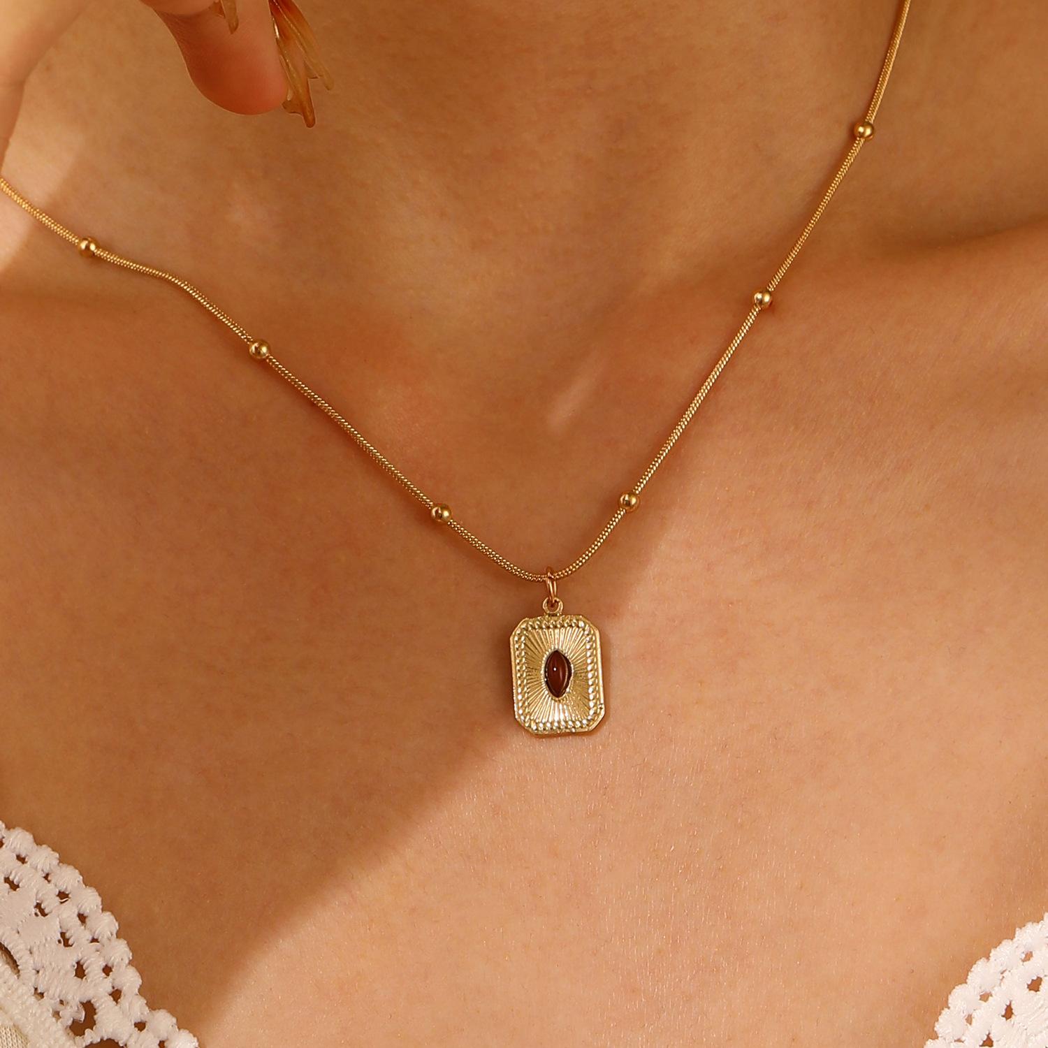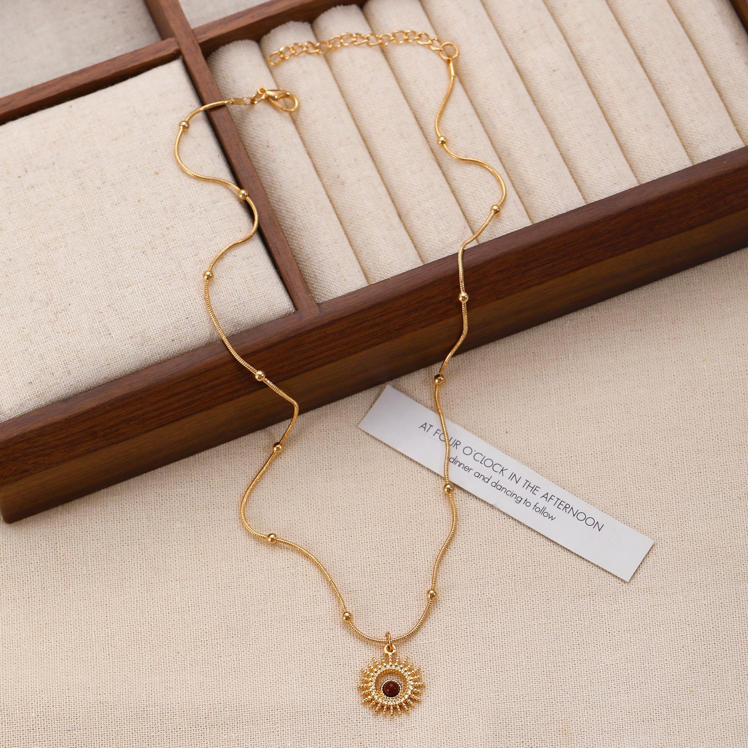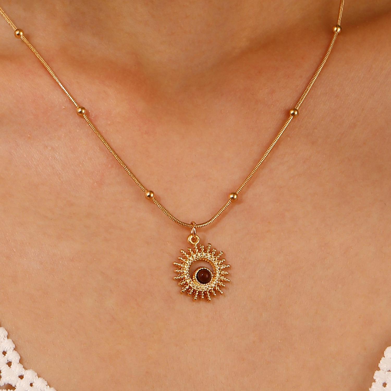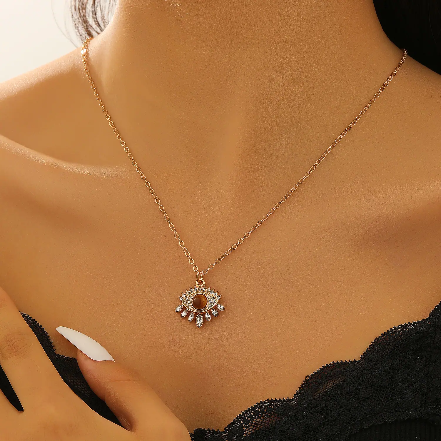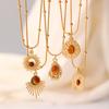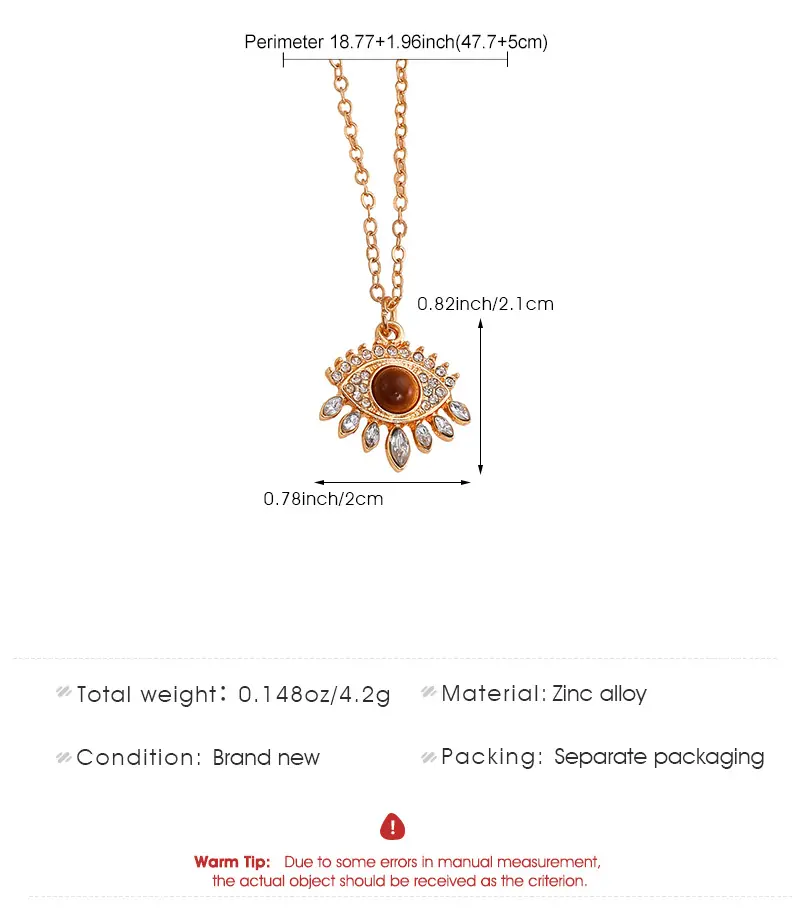 Collar Transfronterizo de Piedra Ojo de Tigre Maillard para Mujer Aleación de Alta Gama Nicho Cadena de Suéter Accesorios Colgante Retro Marrón