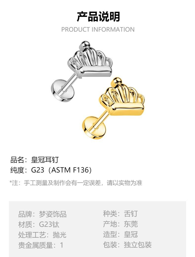 F136 arete de corona de titanio clavo para la nariz fabricantes transfronterizos aleación de titanio G23 joyería para piercing del cuerpo humano clavo para el labio clavo para la lengua