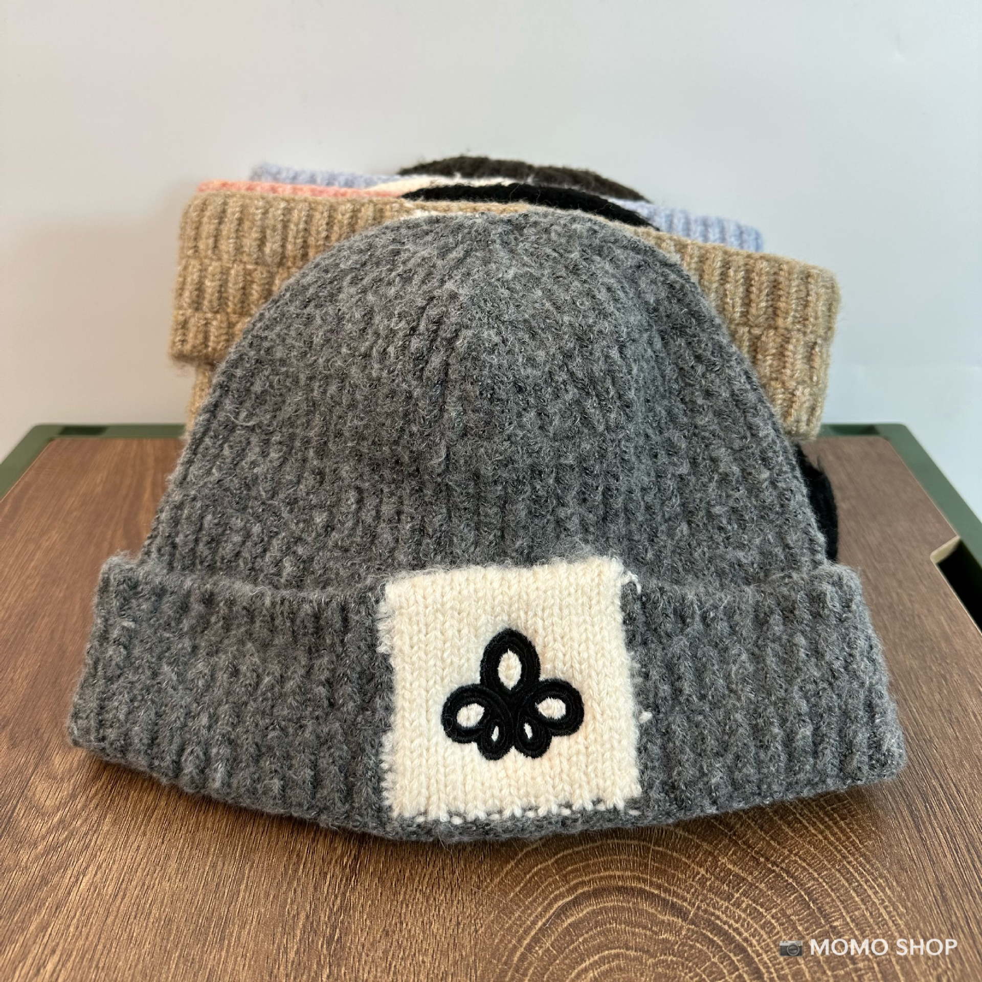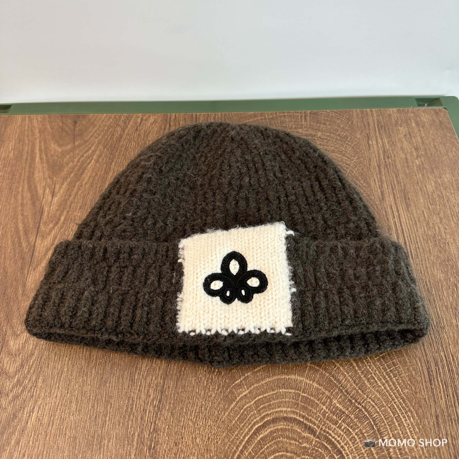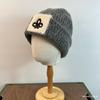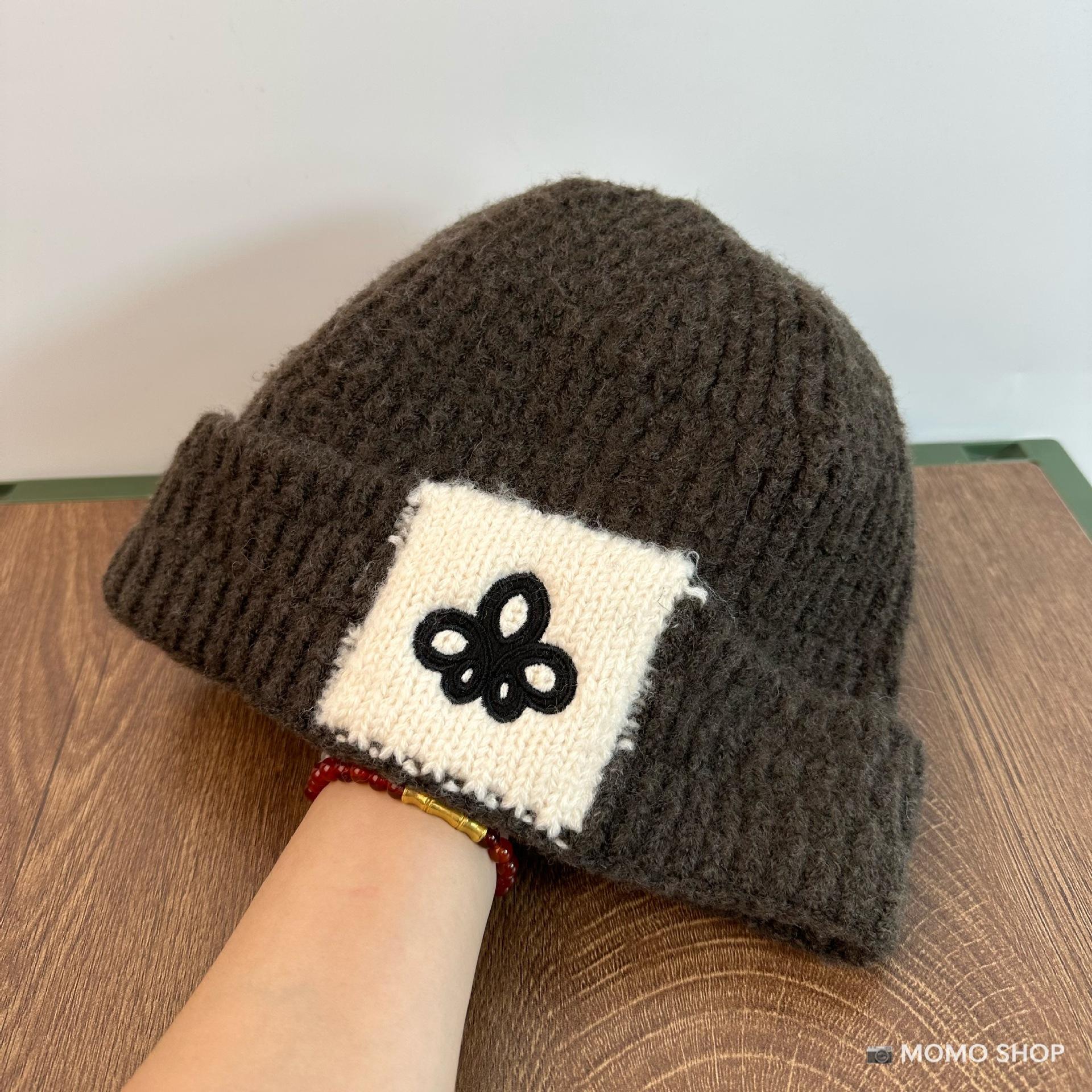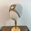 Gorro de lana de punto con cabeza grande para mujer, estilo coreano, con puntera de flores pequeñas, grueso y cálido, con protección para las orejas pequeñas, para otoño e invierno