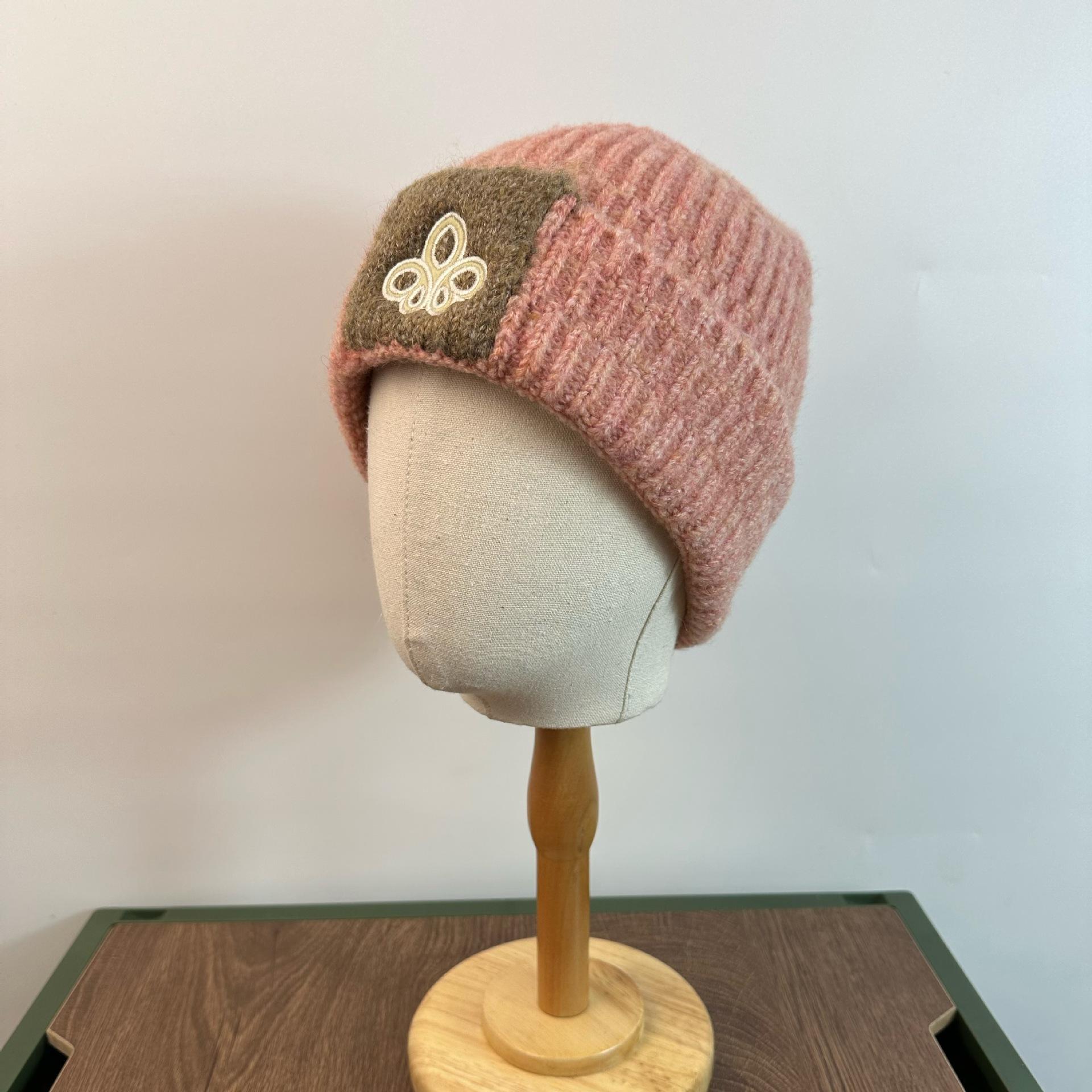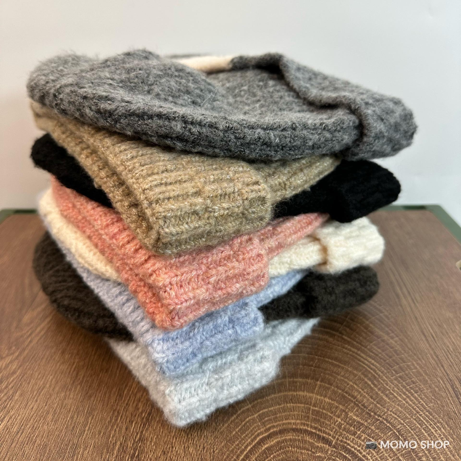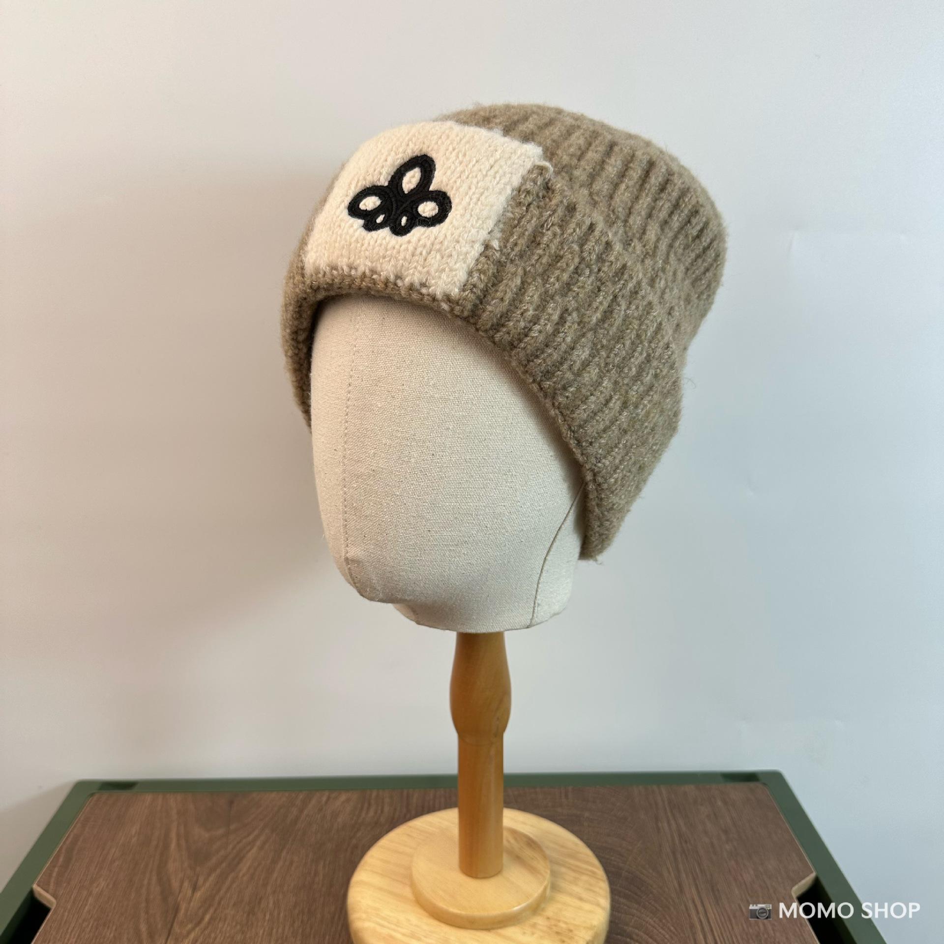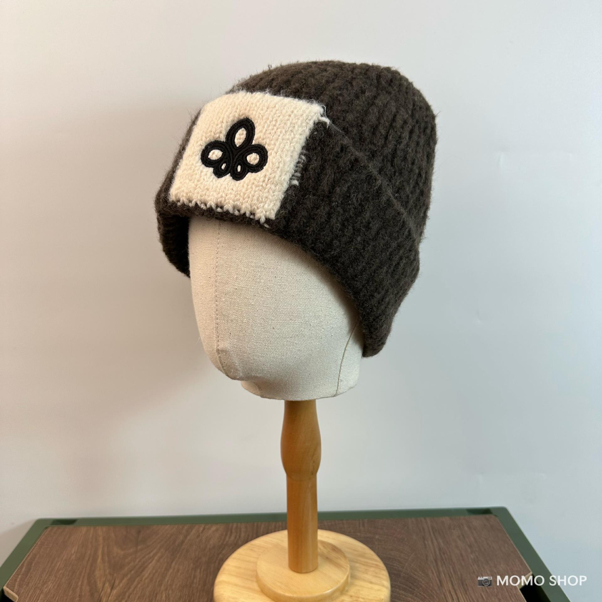 Gorro de lana de punto con cabeza grande para mujer, estilo coreano, con puntera de flores pequeñas, grueso y cálido, con protección para las orejas pequeñas, para otoño e invierno