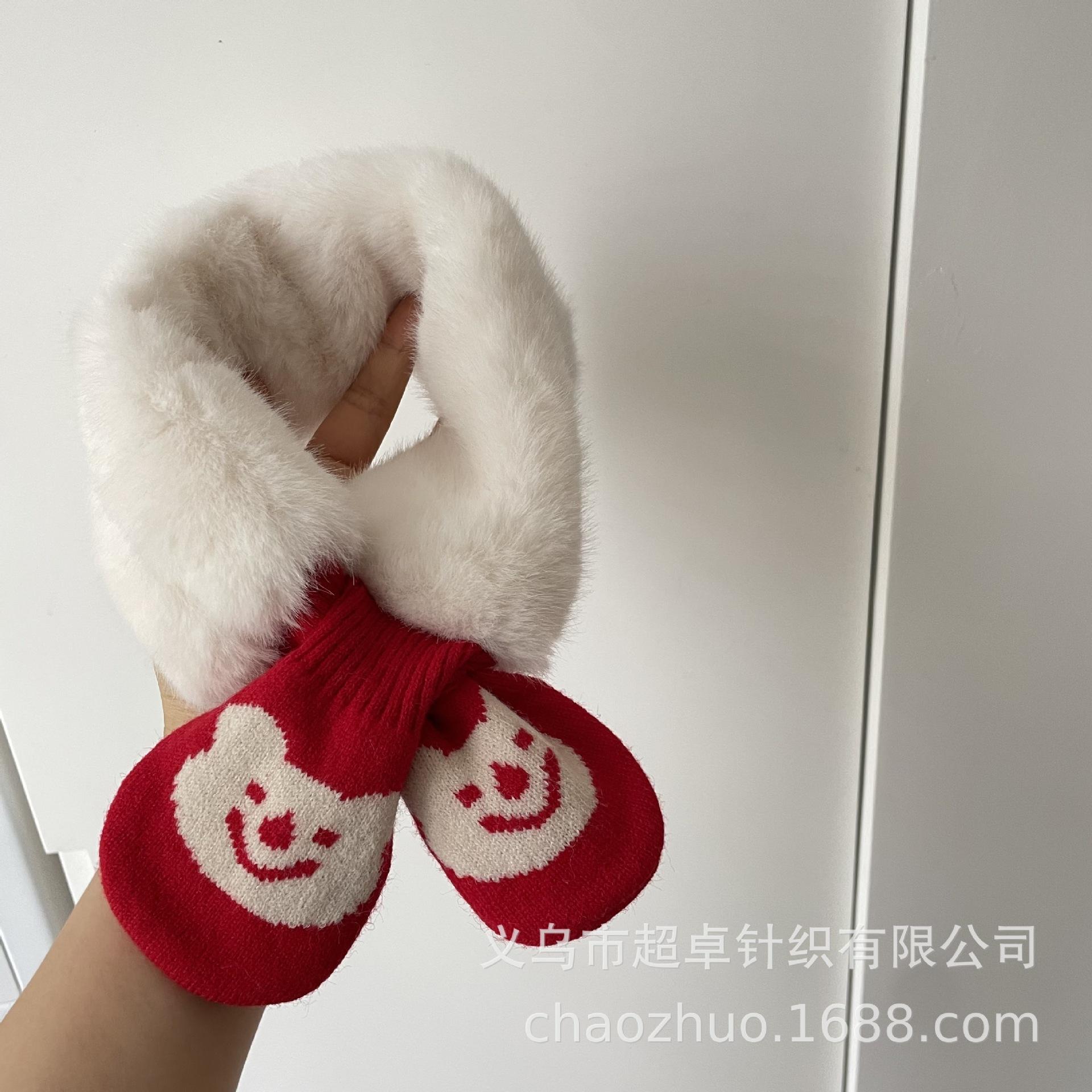 Bufanda Cruzada de Piel de Oso Jacquard Vintage Han Fan Bufanda para Niños