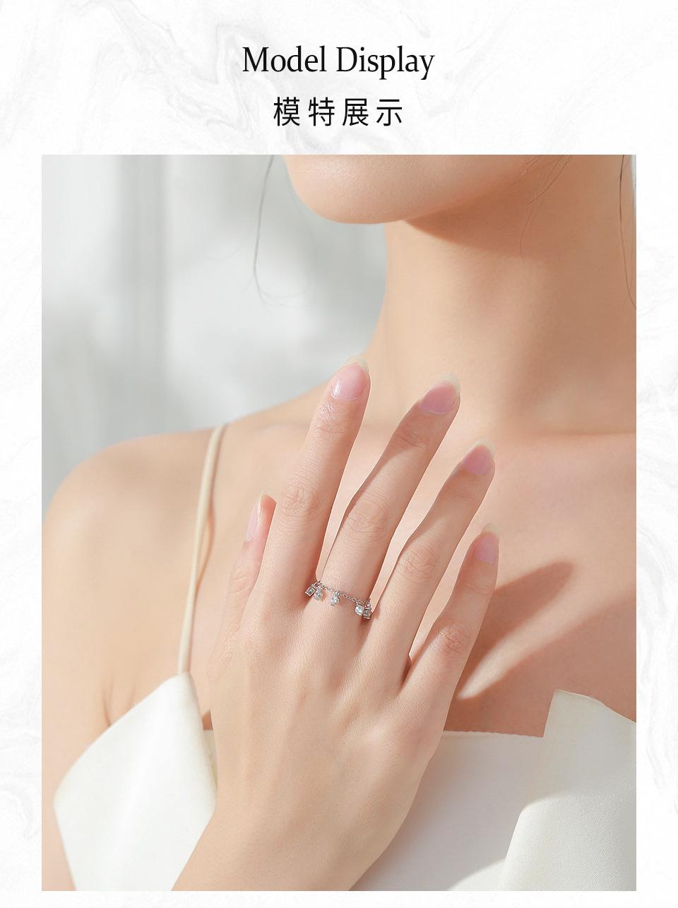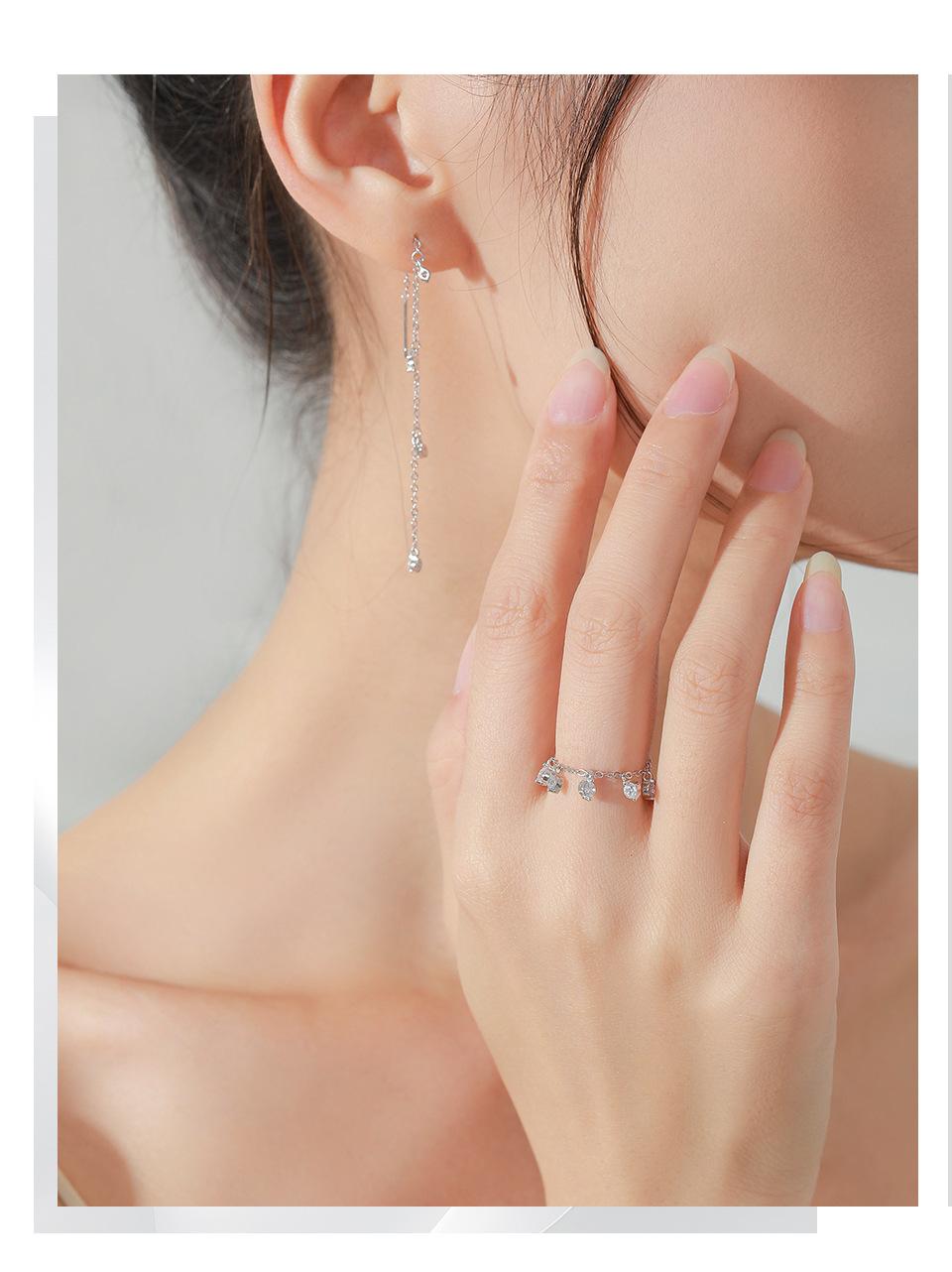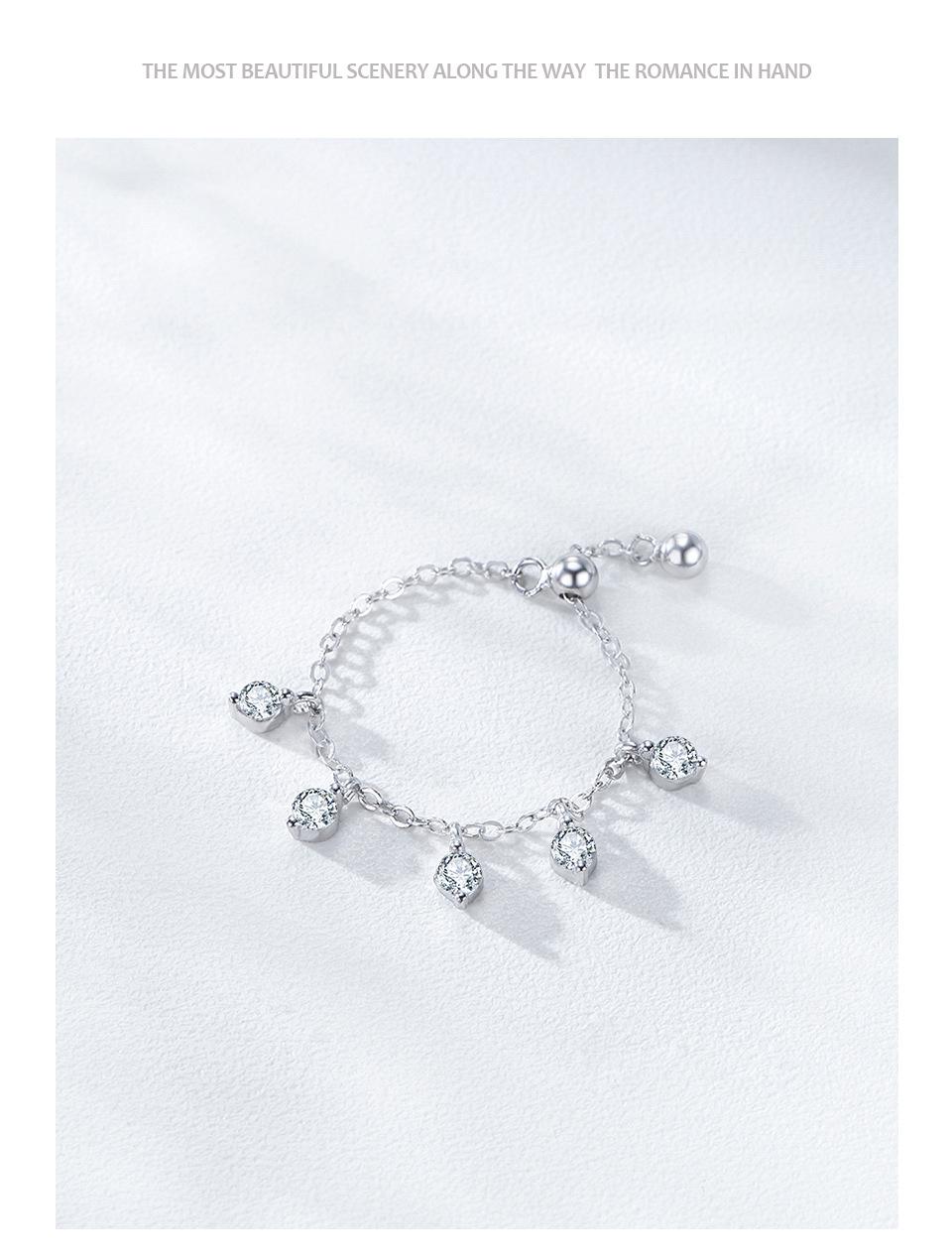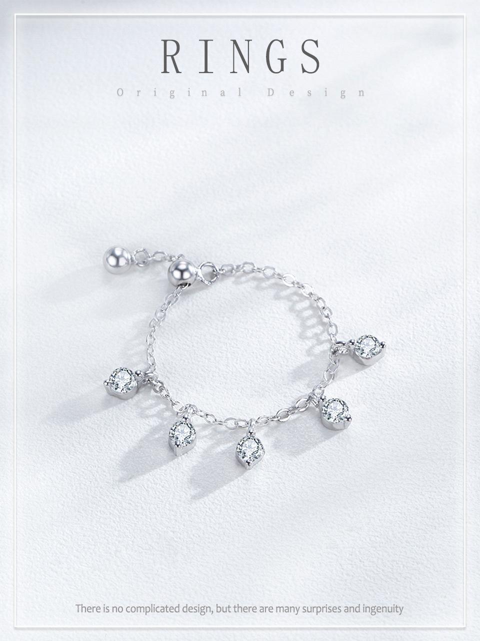 Anillo ajustable con cadena de diamantes redondos de estilo coreano en plata de ley S925, diseño de nicho, estilo simple.