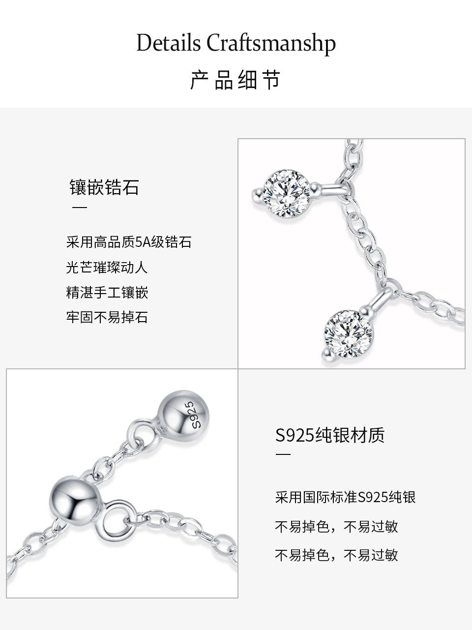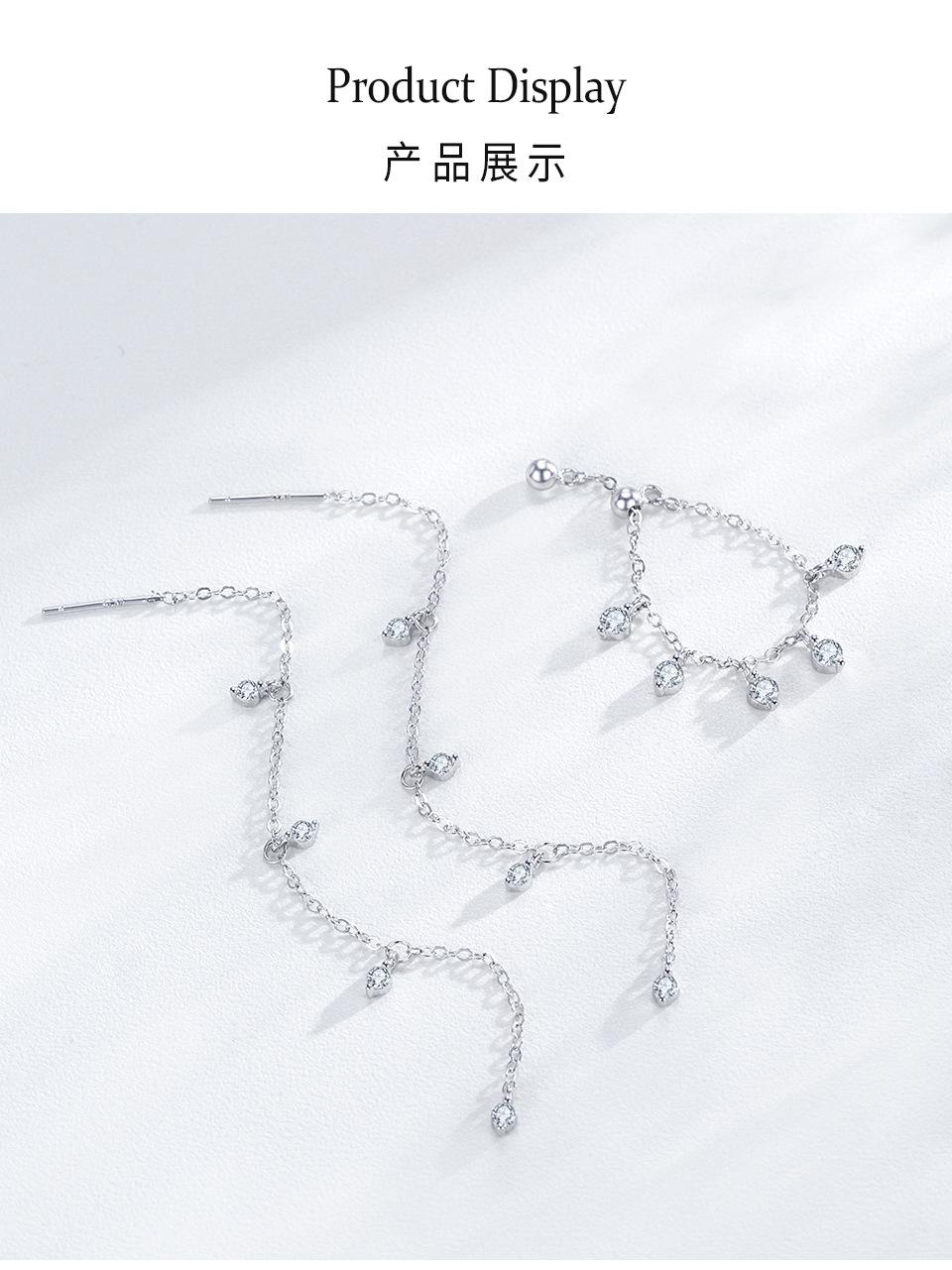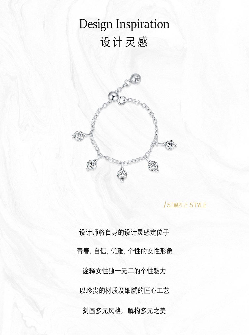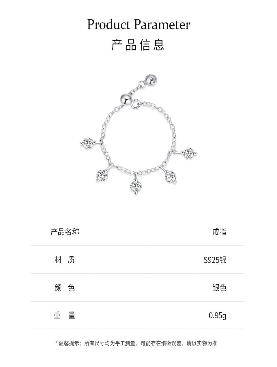 Anillo ajustable con cadena de diamantes redondos de estilo coreano en plata de ley S925, diseño de nicho, estilo simple.