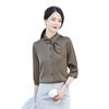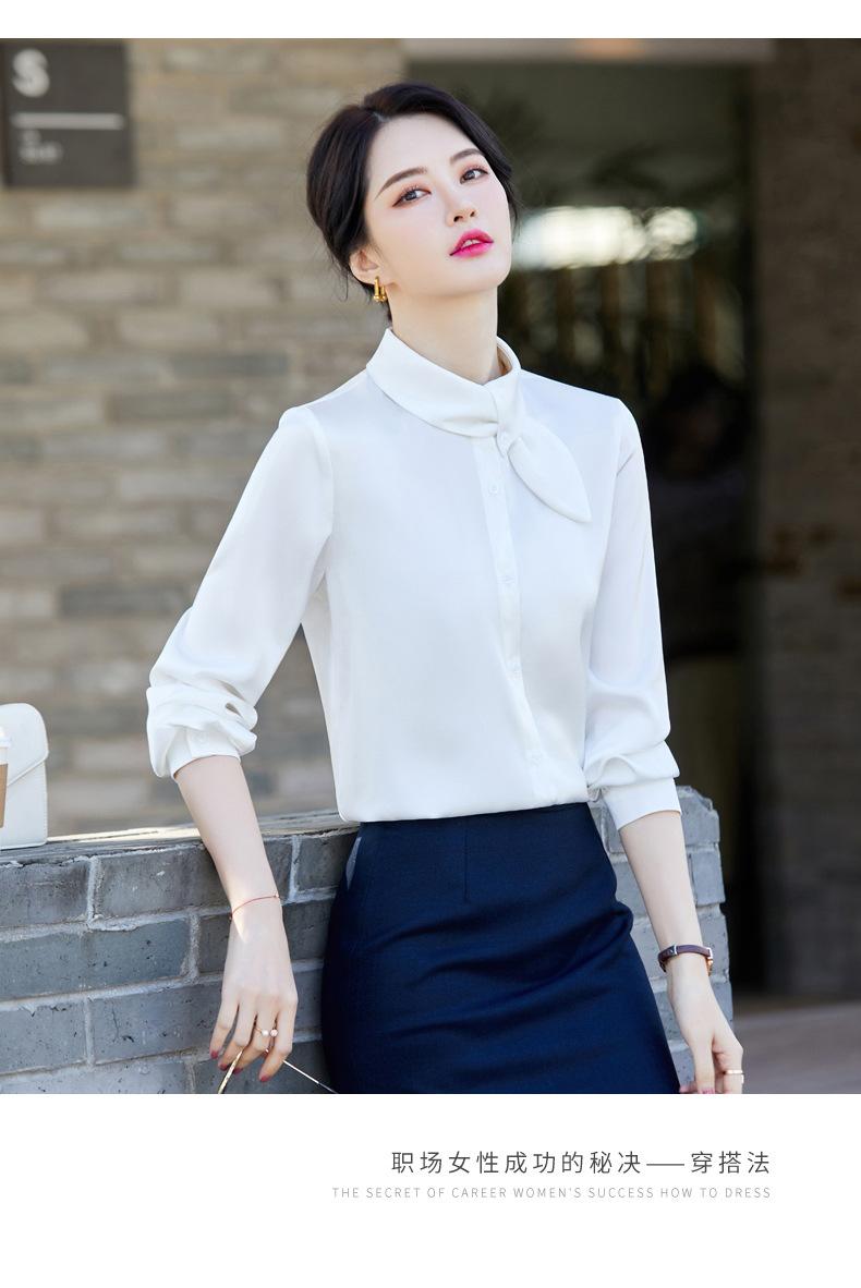 Nueva Camisa de Fondo Interior de Moda de Cuello Alto para Primavera y Otoño Camisa de Gasa Ropa de Negocios Camisa Blanca Manga Larga para Mujer