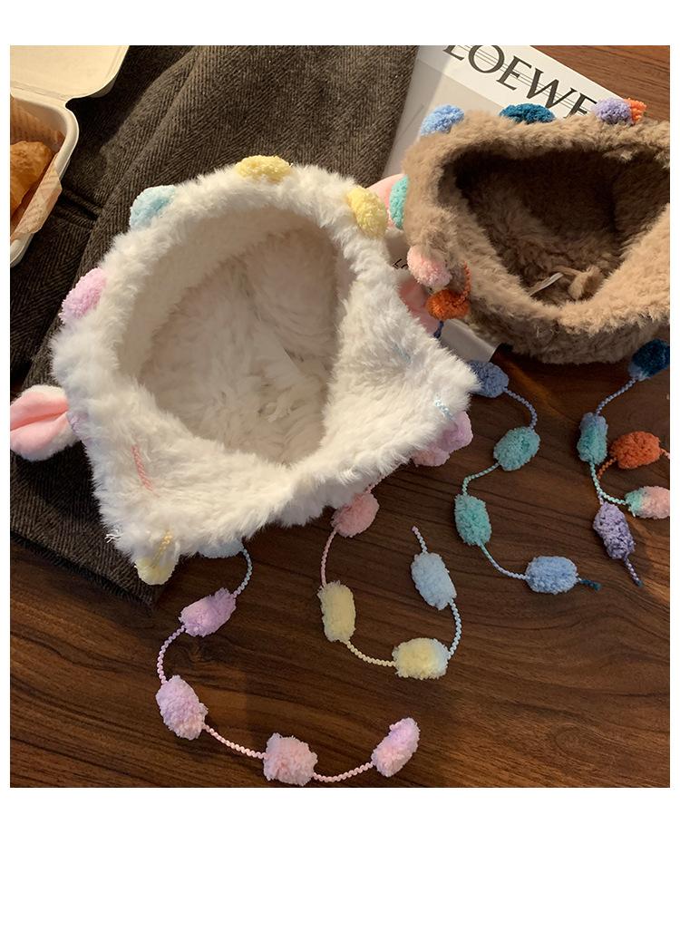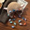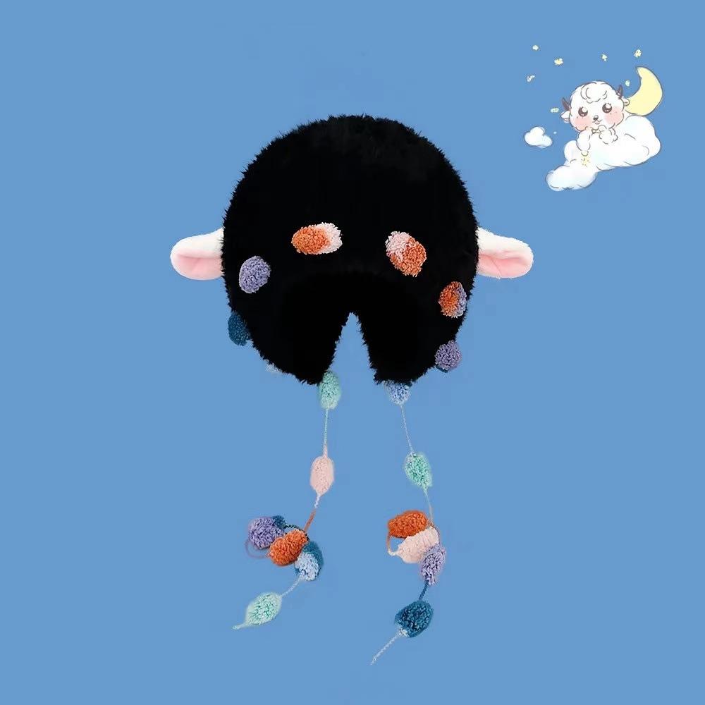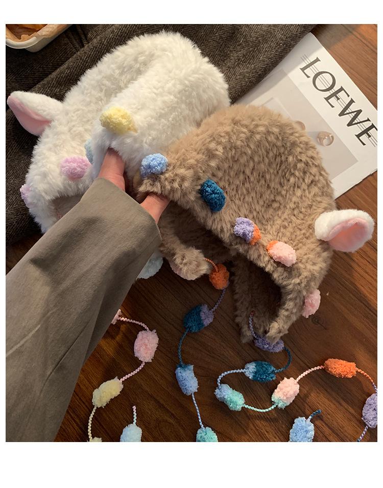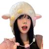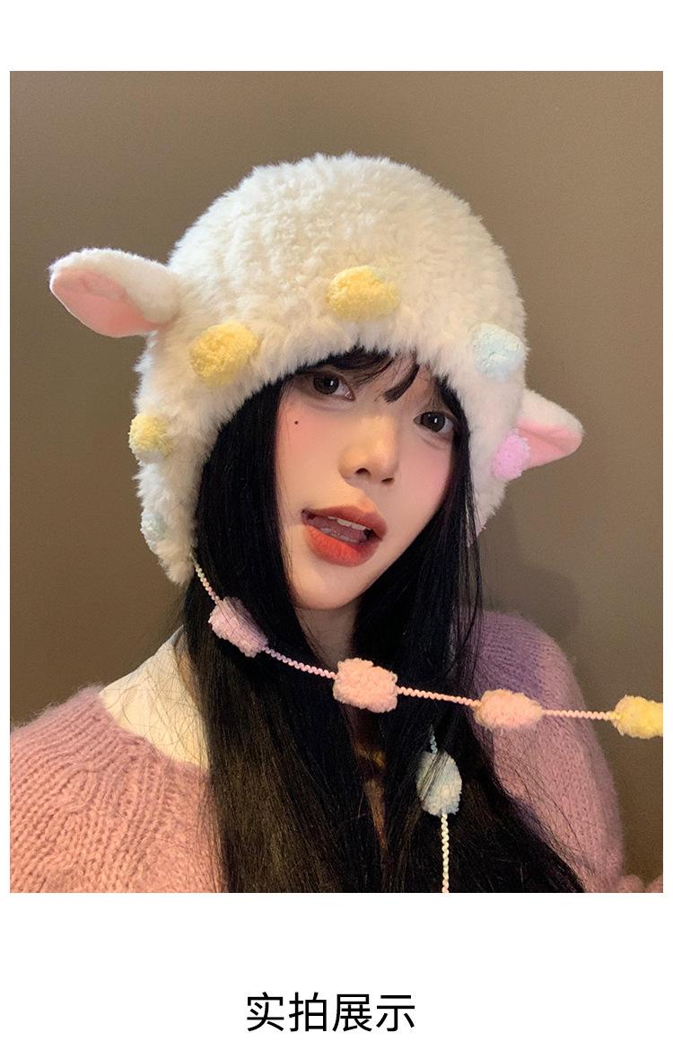 Gorro de punto de felpa con orejas de cordero para mujer, otoño e invierno, bonito gorro de lana de color pequeño con protección para las orejas, cálido gorro Lei Feng