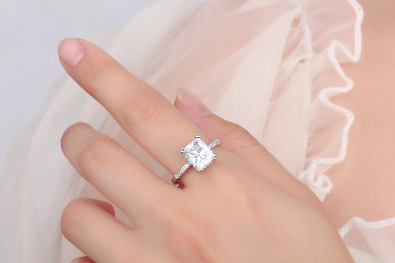 Anillo de moissanita de 3 quilates con diseño de princesa americana, estilo transfronterizo de Europa y Estados Unidos, con apertura de doble garra, pulsera al por mayor