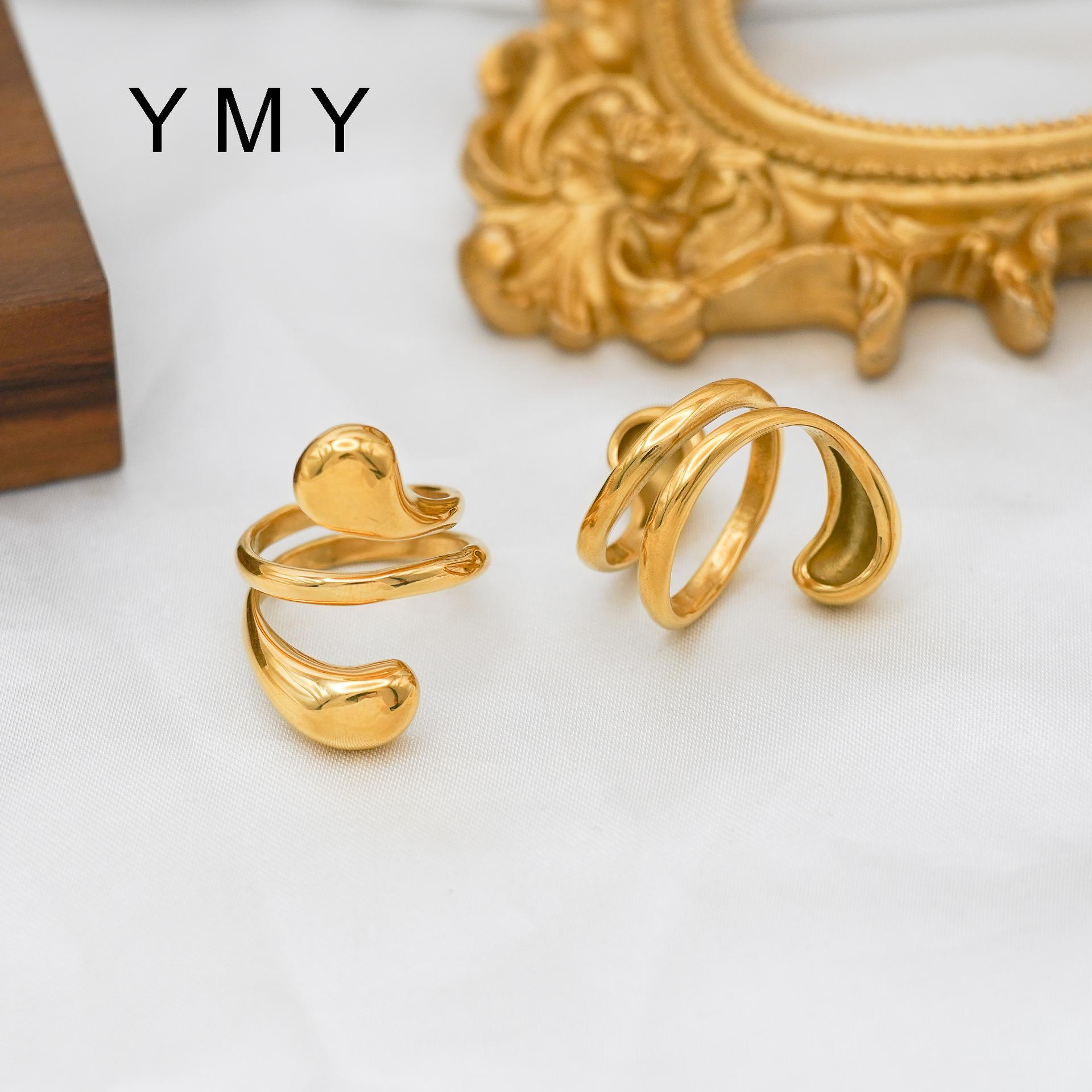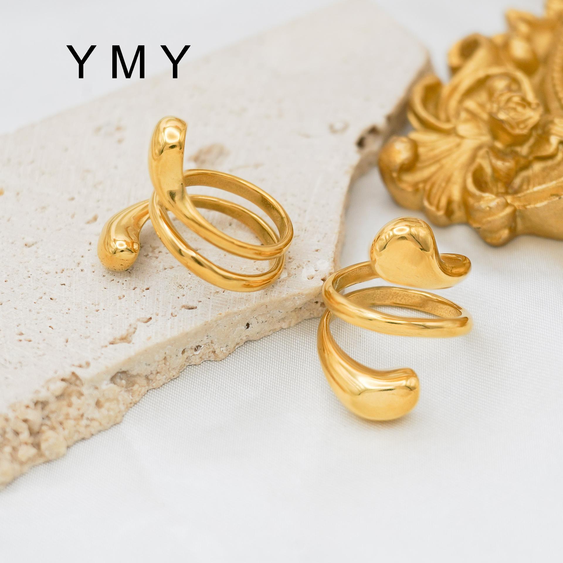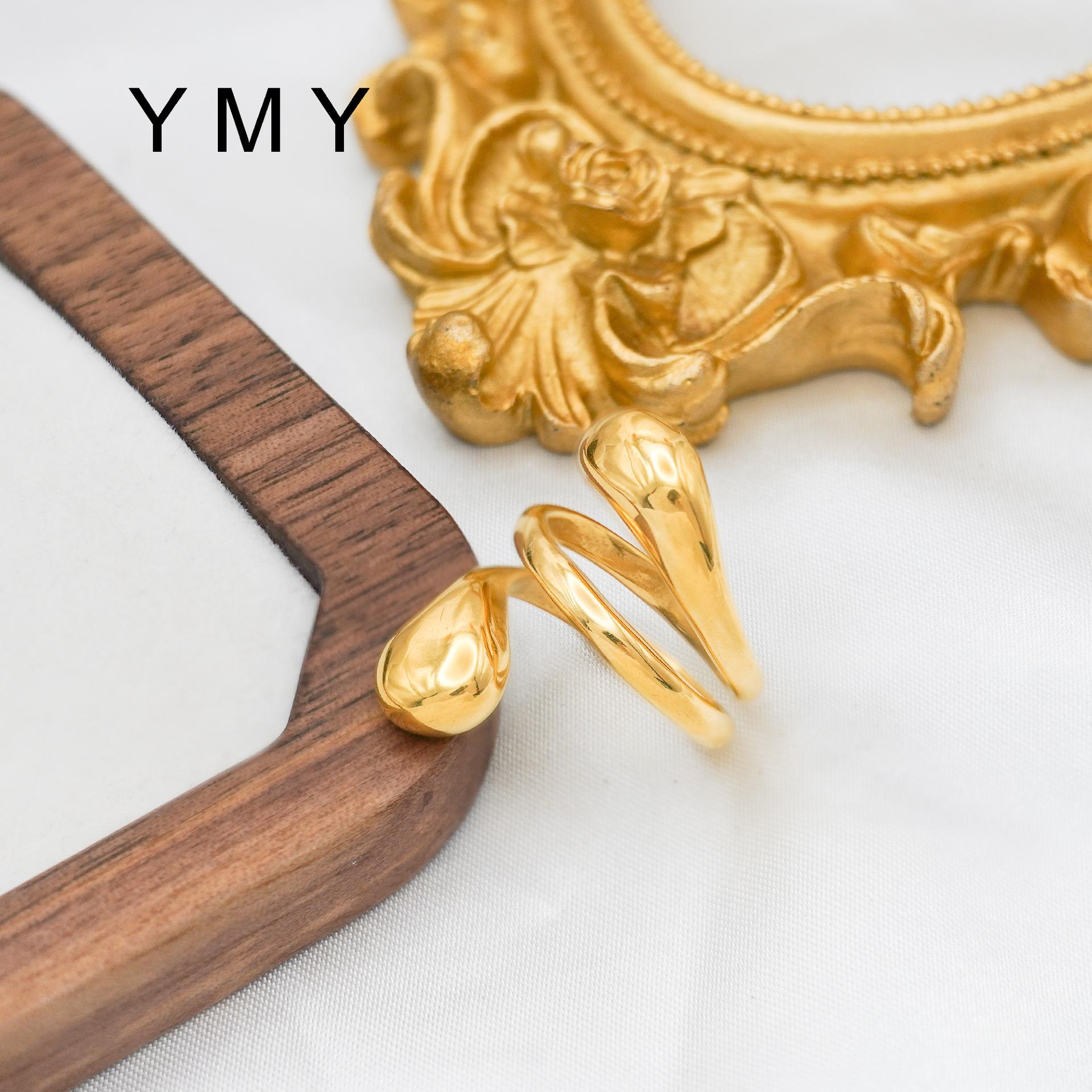 Anillo de apertura en espiral de viento simple con diseño de personalidad europea y americana transfronteriza, anillo de temperamento de acero de titanio chapado en oro de 18 quilates