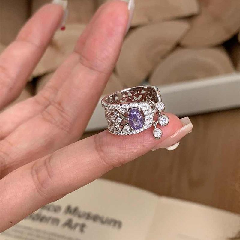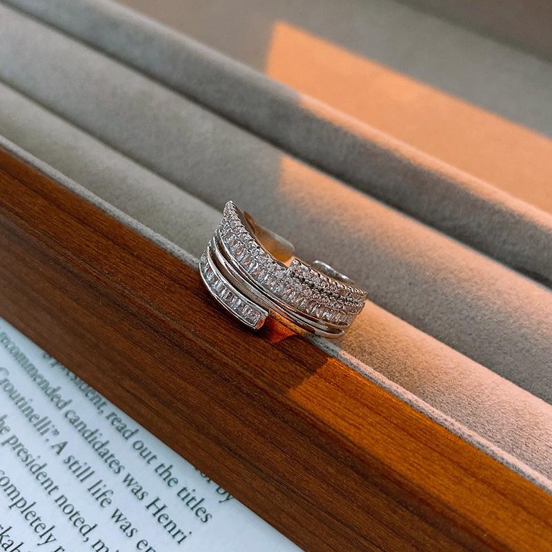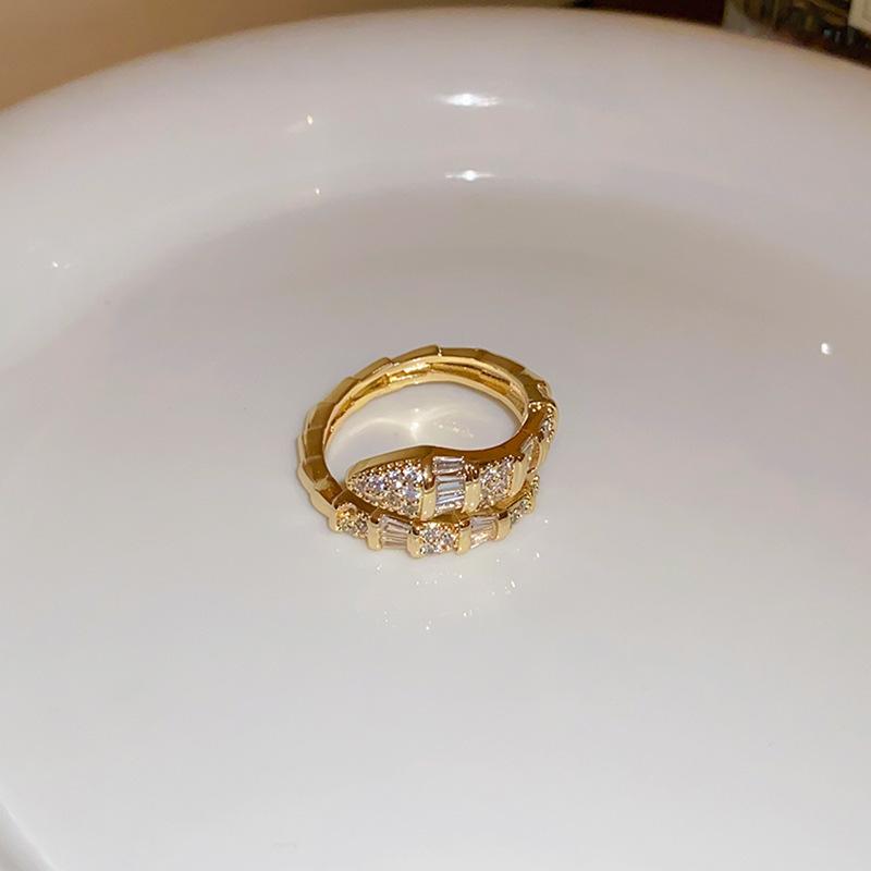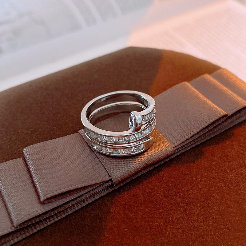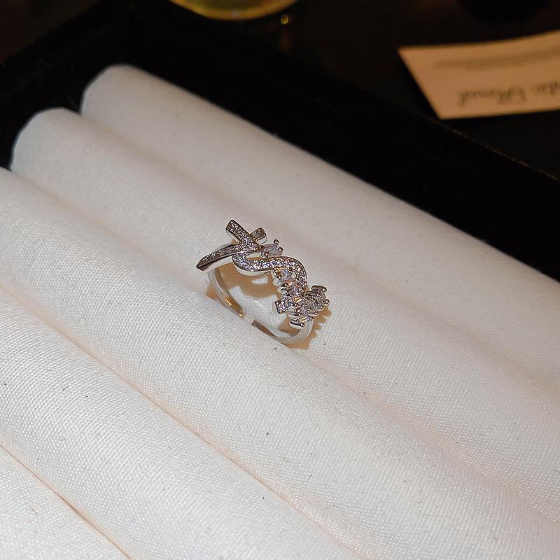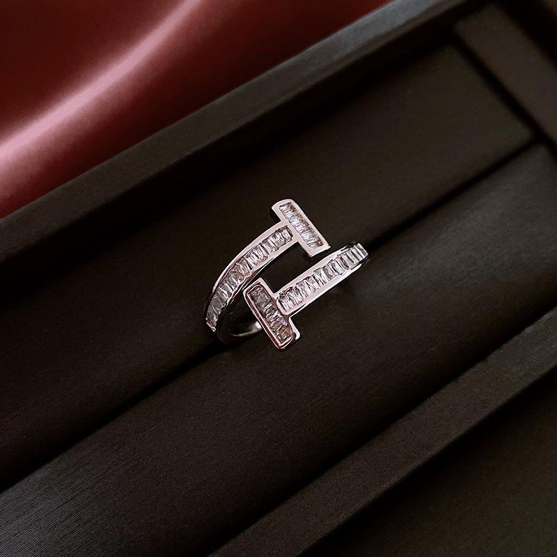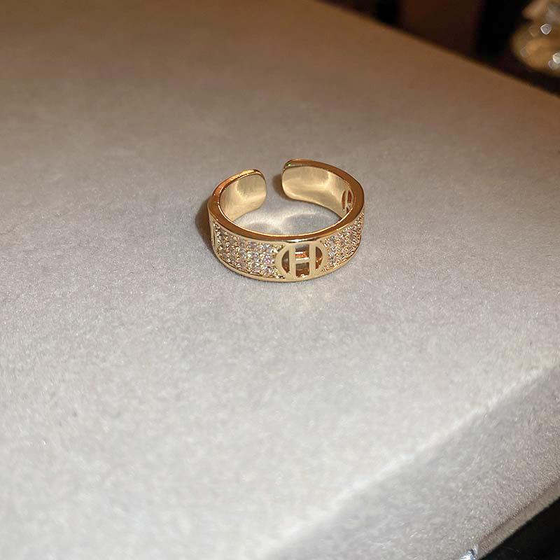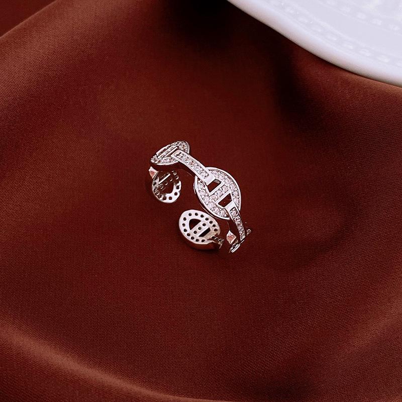 Anillo de Nariz de Cerdo con Letra de Zircón Súper Flash Estilo Coreano Lujo Accesible Versátil Anillo de Dedo Índice Moda Alta Gama Joyería de Mano al por Mayor