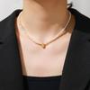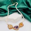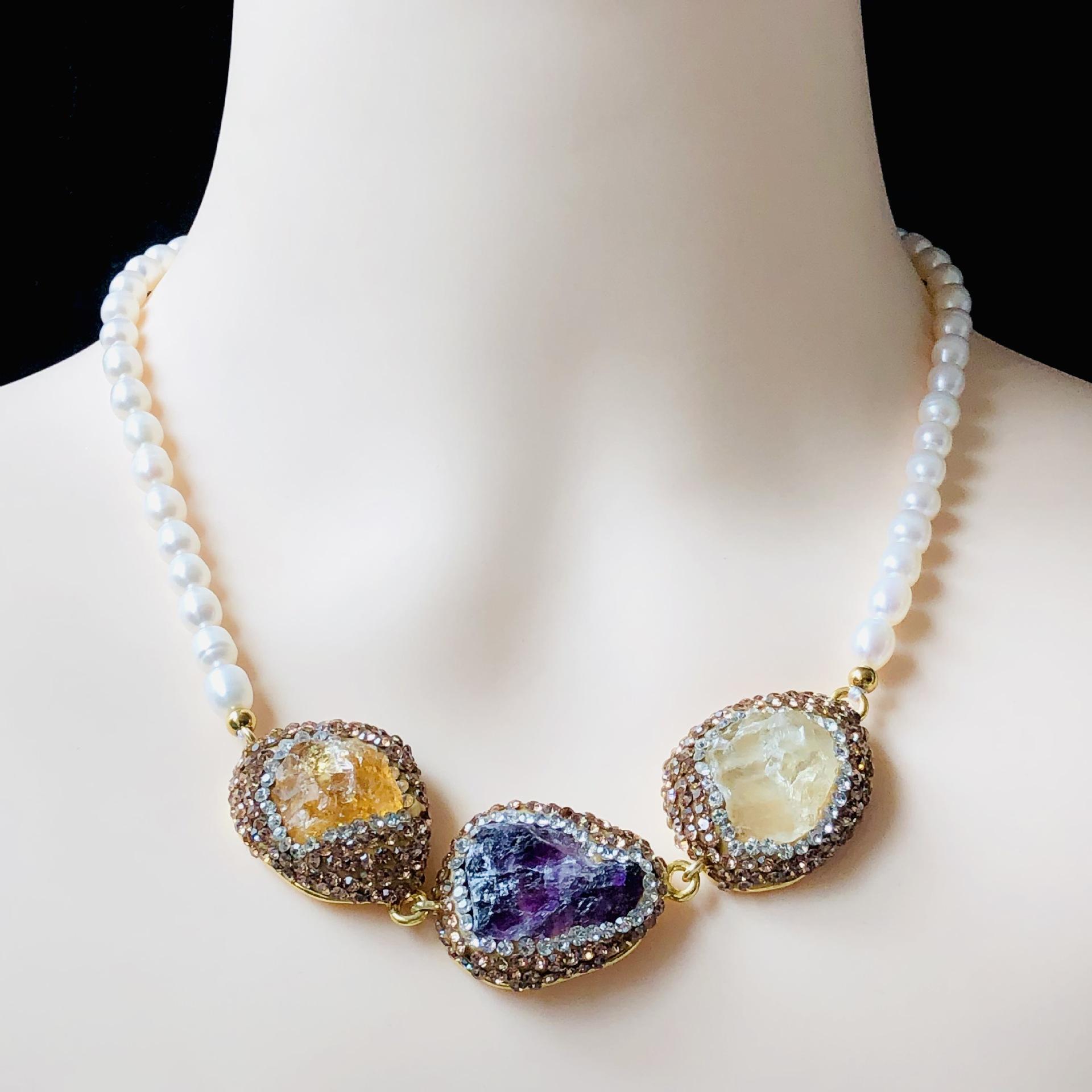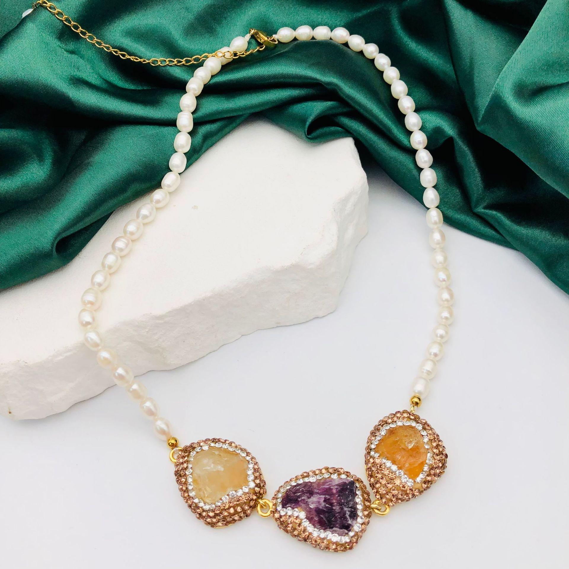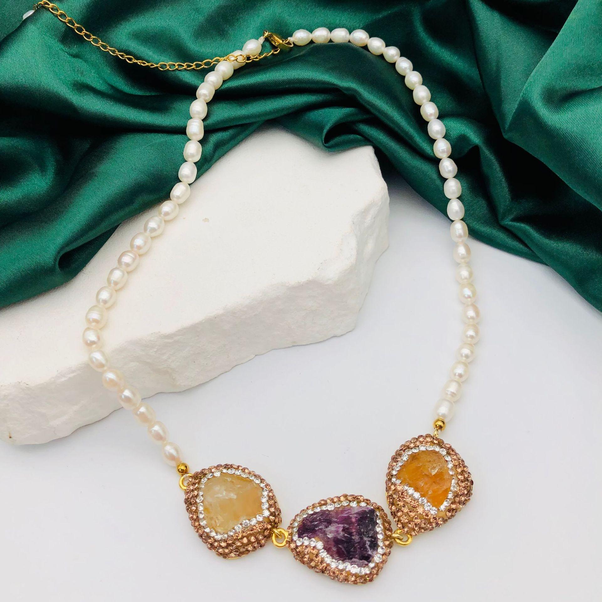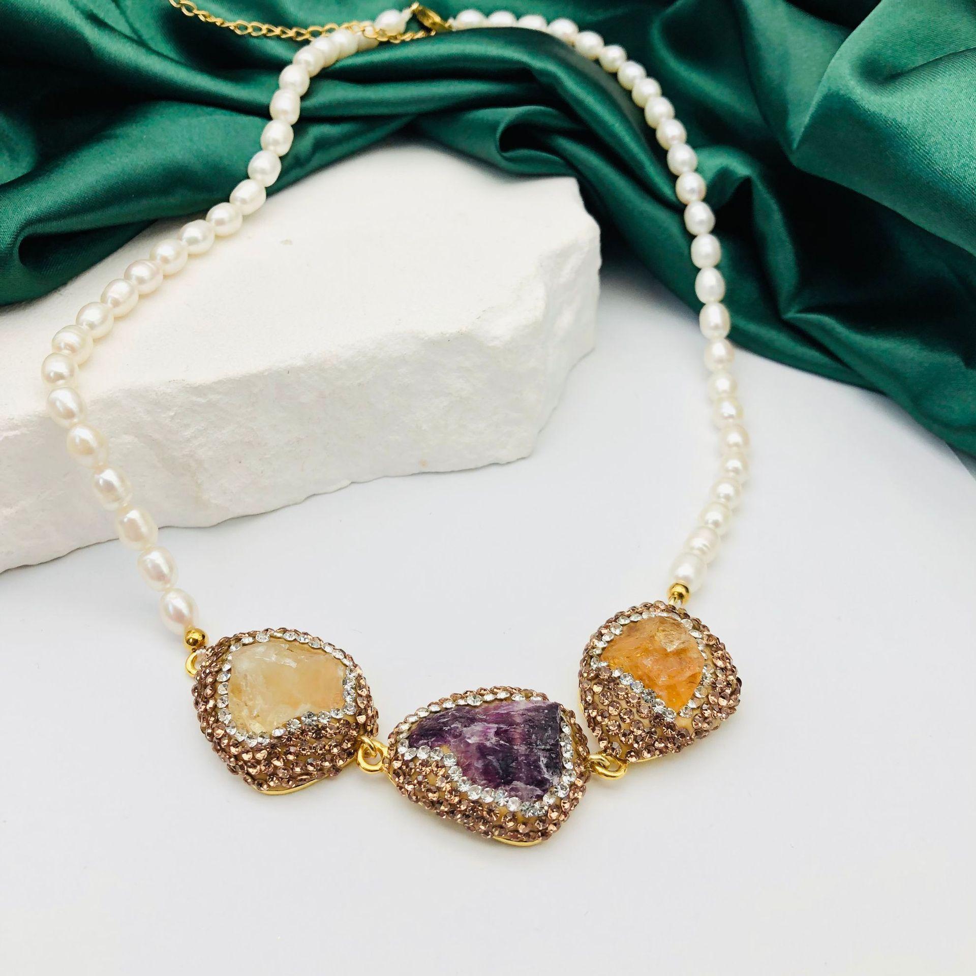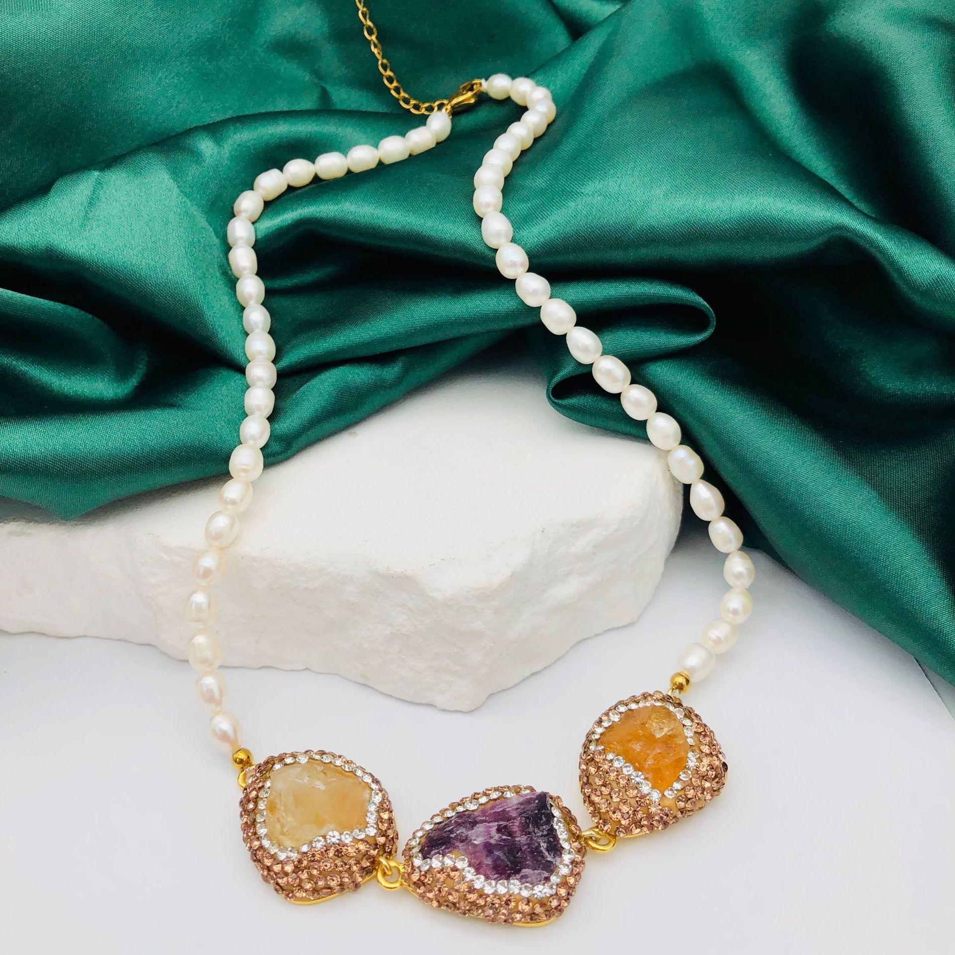 Collar de Perlas Naturales de Agua Dulce Transfronterizo Europeo y Americano, Cadena Clavicular Incrustada con Diamantes Checos Marrones, Moderno y Versátil para Mujer
