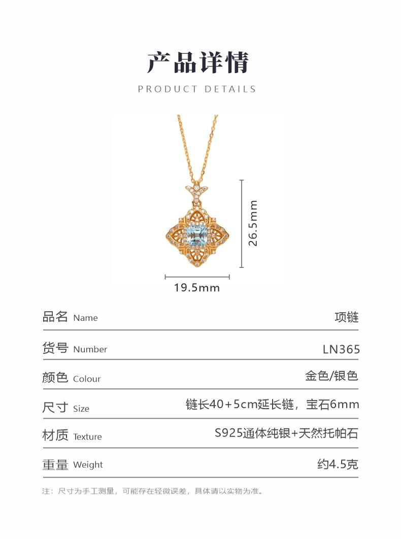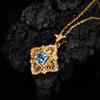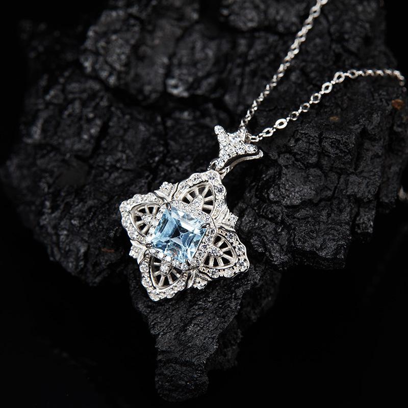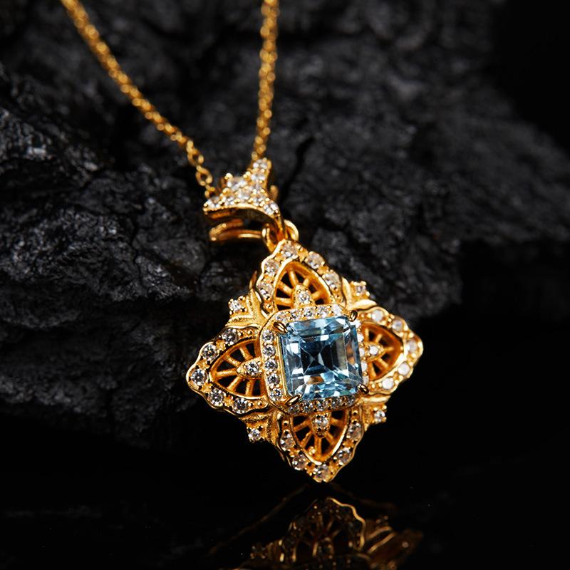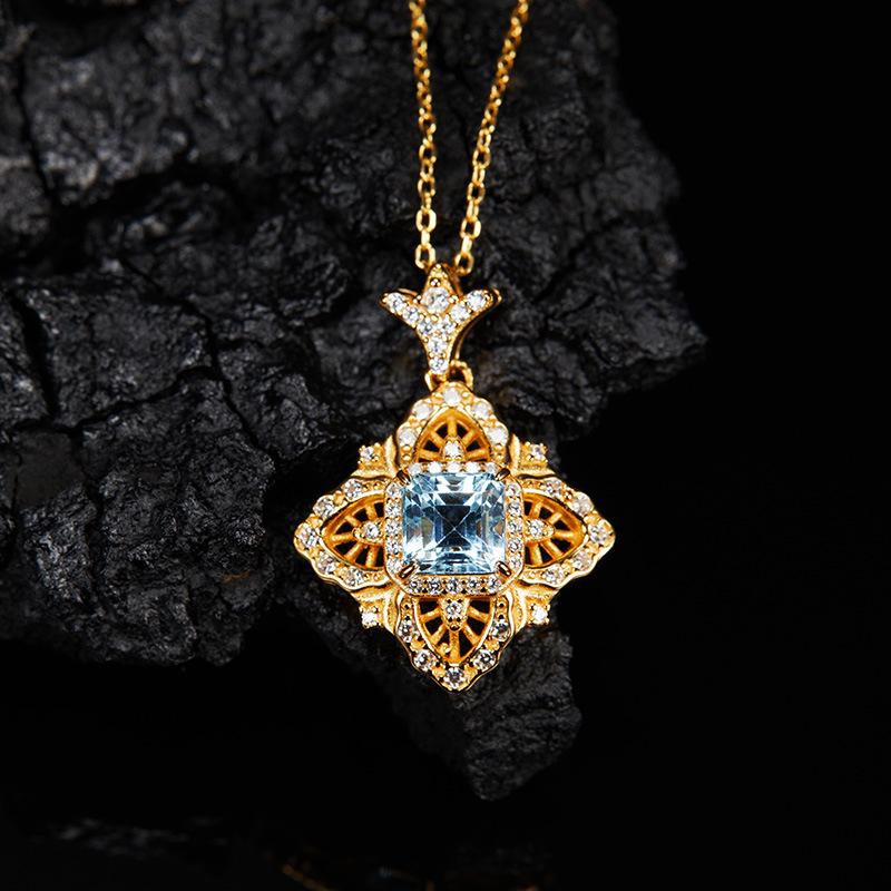 Collar con colgante de topacio natural con incrustaciones de plata de ley S925 con diseño de palacio retro europeo y americano, tesoro de color para mujer, venta al por mayor