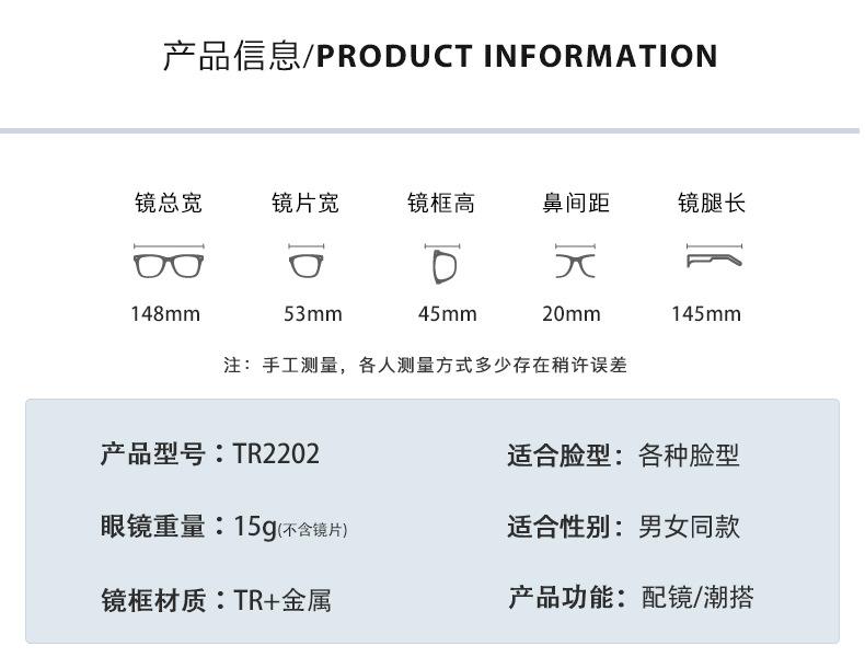 2024 Nueva Moda TR Gafas de Montura para Cejas Retro Casual Antiluz Azul Gafas Planas 2202