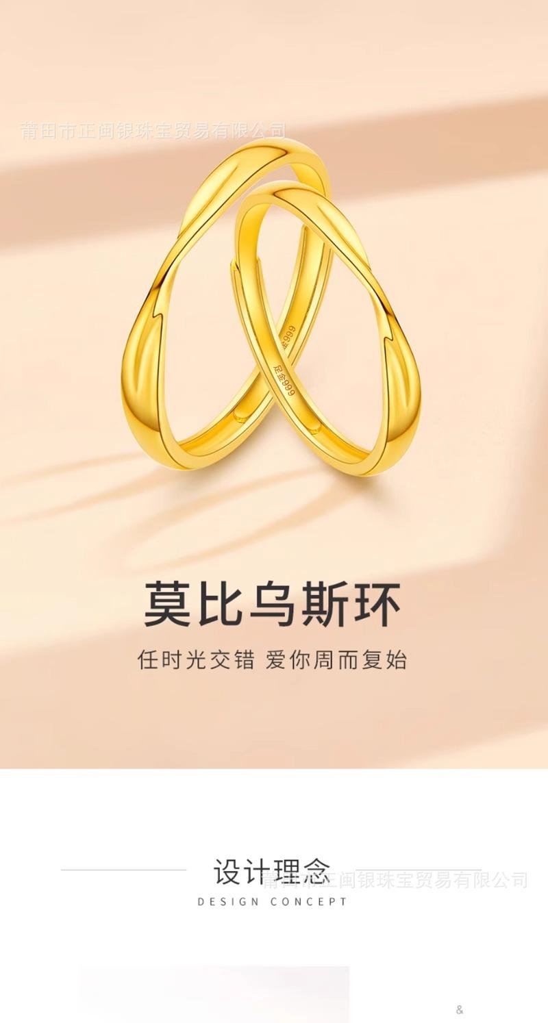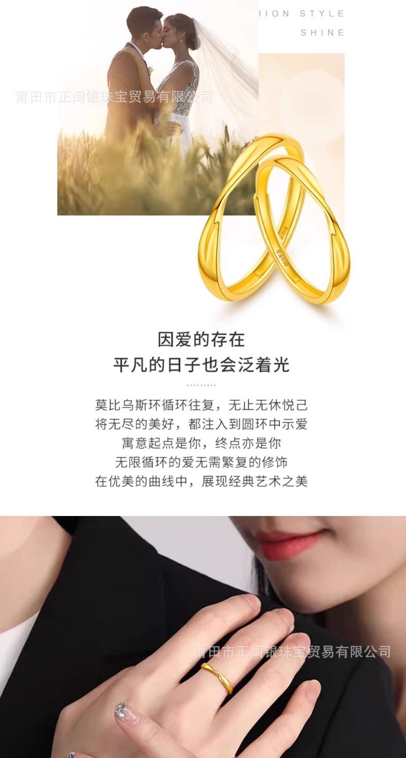 Anillo liso de oro y plata envuelto en oro, nuevo anillo Mobius para hombre y mujer, pareja, un par de oro 999, regalo de cumpleaños