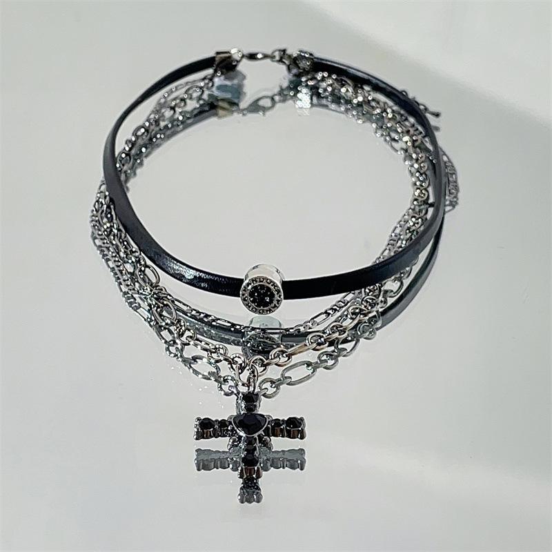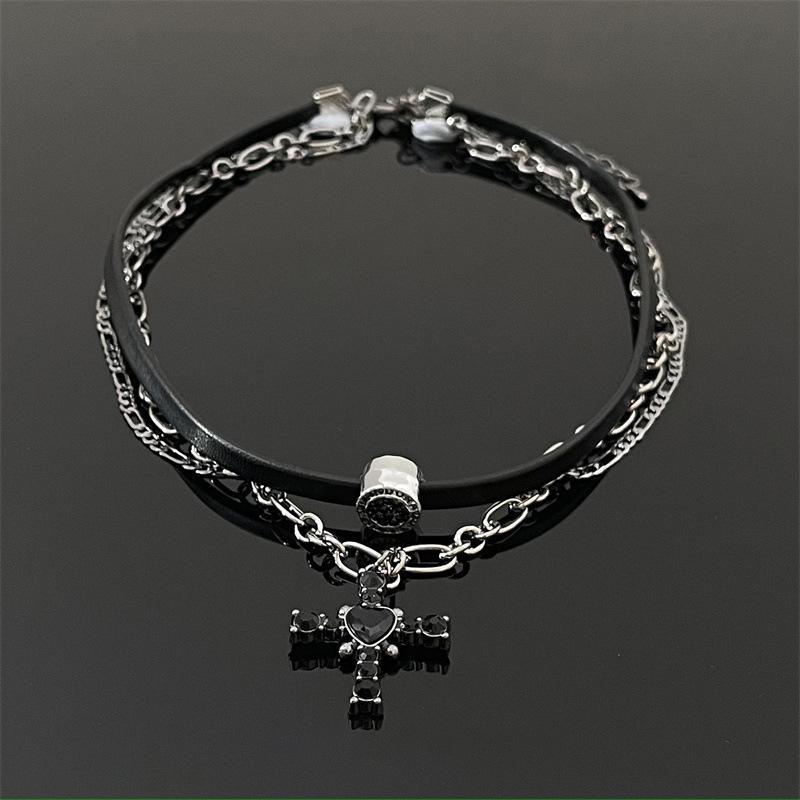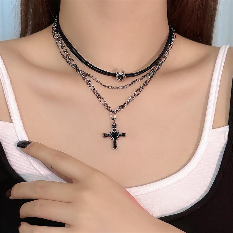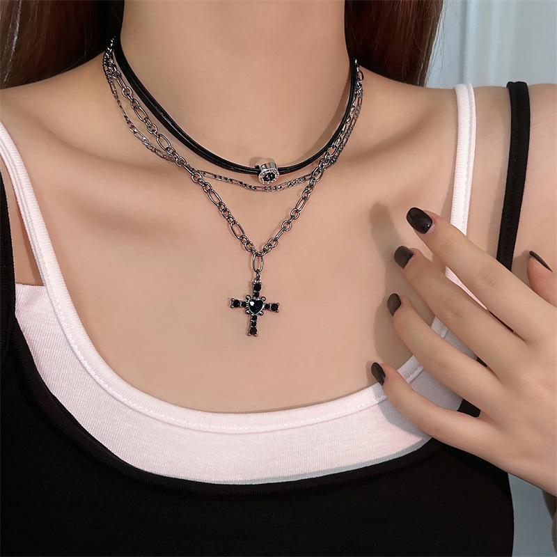 Collar de cruz multicapa de estilo oscuro, estilo hip-hop, dulce, genial, para chica, cadena de clavícula superpuesta, joyería única de alta gama al por mayor